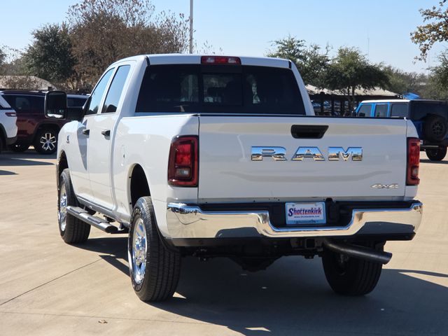 2026 Ram 2500 Tradesman 4D Crew Cab Bright White Clearcoat 4WD 8-Speed Automatic 6.7L I6 This vehicle comes well equipped with Bed Convenience Group (LED Bed Lighting and MOPAR Spray in Bedliner), Quick Order Package 24A Tradesman, Tradesman Level 2 Equipment Group (115-Volt Auxiliary Front Power Outlet, 12" Touchscreen Display, 2 Way Rear Headrest Seat, 4 Way Front Headrests, 40/20/40 Split Bench Seat, 400W Inverter, 4G LTE Wi-Fi Hot Spot, Air Conditioning ATC with Dual Zone Control, Alexa Built-in, Anti-Spin Differential Rear Axle, Apple CarPlay, Auto-Dimming Rear-View Mirror, Black Exterior Mirrors, Bright Front Bumper, Bright Rear Bumper, Carpet Floor Covering, Center Hub, Chrome Grille Surround, Cloth 40/20/40 Bench Seat, Connected Travel and Traffic Services, Connectivity - US/Canada, Disassociated Touchscreen Display, Emergency Vehicle Alert System (EVAS), Exterior 115V AC Outlet, Exterior Mirrors Courtesy Lamps, Exterior Mirrors with Heating Element, Exterior Mirrors with Supplemental Signals, For Details, Visit DriveUconnect.com, For More Info, Call 800-643-2112, Front and Rear Floor Mats, Front Armrest with Cupholders, Global Telematics Box Module, Google Android Auto, GPS Antenna Input, GPS Navigation, HD Radio, Integrated Voice Command with Bluetooth, Manual Adjust 4-Way Driver Seat, Manual Adjust 4-Way Front Passenger Seat, Manual Folding Exterior Mirrors, Manuarl Telescoping Mirrors, Matte Black Mesh Grille with Chrome, Mirror Running Lights, Mopar Black Tubular Side Steps, Off-Road Info Pages, ParkSense Front/Rear Park Assist System, Power Adjust Mirrors, Power Heated Folding Telescope Mirrors, Power-Adjustable Convex Aux Mirrors, Radio: Uconnect 5 Navigation with 12.0" Display, Rear Folding Seat, Rear Power Sliding Window, Remote USB Port - Charge Only, Selectable Tire Fill Alert, SiriusXM Radio Service, SiriusXM with 360L, Storage Tray, Tinted Acoustic Windshield Glass, Trailer Tow Pages, and Wheels: 18" x 8.0" Steel Chrome Clad), 4-Wheel Disc Brakes, 5th Wheel/Gooseneck Towing Prep Group, 6 Speakers, ABS brakes, Air Conditioning, AM/FM radio: SiriusXM, Apple CarPlay/Android Auto, Black Wheel Center Hub, Brake assist, Compass, Delay-off headlights, Driver door bin, Dual front impact airbags, Dual front side impact airbags, Electronic Stability Control, Front anti-roll bar, Front Center Armrest w/Storage, Front fog lights, Front License Plate Bracket, Front reading lights, Fully automatic headlights, Illuminated entry, Low tire pressure warning, Occupant sensing airbag, Outside temperature display, Overhead airbag, Overhead console, Panic alarm, ParkView Rear Back-Up Camera, Passenger door bin, Passenger vanity mirror, Power steering, Power windows, Radio data system, Radio: Uconnect 5 with 8.4" Display, Rear anti-roll bar, Rear step bumper, Rear window defroster, Remote keyless entry, Speed control, Tachometer, Tilt steering wheel, Traction control, Variably intermittent wipers, Voltmeter, and Wheels: 17" x 7.5" Black Steel StyleD.