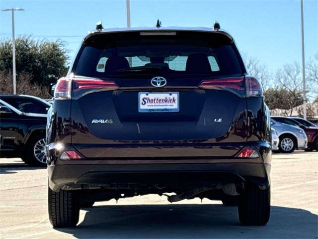 2017 Toyota RAV4 LE 4D Sport Utility Black Currant Metallic 2.5L 4-Cylinder DOHC Dual VVT-i 6-Speed Automatic FWD This vehicle comes well equipped with RAV4 LE, 4D Sport Utility, 2.5L 4-Cylinder DOHC Dual VVT-i, FWD, Black Currant Metallic, and Black Cloth RAV4 LE, 4D Sport Utility, 2.5L 4-Cylinder DOHC Dual VVT-i, FWD, Black Currant Metallic, Black Cloth, 3.815 Axle Ratio, 4-Wheel Disc Brakes, 6 Speakers, ABS brakes, Air Conditioning, AM/FM radio, Auto High-beam Headlights, Brake assist, Bumpers: body-color, CD player, Driver door bin, Driver vanity mirror, Dual front impact airbags, Dual front side impact airbags, Electronic Stability Control, Exterior Parking Camera Rear, Fabric Seat Trim, Four wheel independent suspension, Front anti-roll bar, Front Bucket Seats, Front Center Armrest, Front reading lights, Fully automatic headlights, Illuminated entry, Knee airbag, Low tire pressure warning, Occupant sensing airbag, Outside temperature display, Overhead airbag, Overhead console, Panic alarm, Passenger door bin, Passenger vanity mirror, Power door mirrors, Power steering, Power windows, Radio data system, Radio: Entune AM/FM/CD/MP3/WMA Playback w/6 Speakers, Rear anti-roll bar, Rear seat center armrest, Rear window defroster, Rear window wiper, Remote keyless entry, Speed control, Speed-sensing steering, Split folding rear seat, Spoiler, Steering wheel mounted audio controls, Tachometer, Telescoping steering wheel, Tilt steering wheel, Traction control, Trip computer, and Wheels: 17" x 6.5J. For more information contact one of our Internet Managers at 682-498-8390 to set up your VIP Test Drive.. At SHOTTENKIRK CDJR Granbury located in Granbury, TX all of our Pre-Owned vehicles go through a 100 point plus inspection. The oil and filter are changed, complete brake inspection, tire rotation, safety inspection and all fluid levels are topped off. If we find anything that needs attention we address the issue and fix it. So buy with confidence that you are getting a quality vehicle. We can do a complete walk around for you over the phone. Trade ins are always welcomed. We offer financing from over 25 finance and credit unions locally and nationally. SHOTTENKIRK CDJR 4970 E HWY 377 GRANBURY TEXAS 76049.