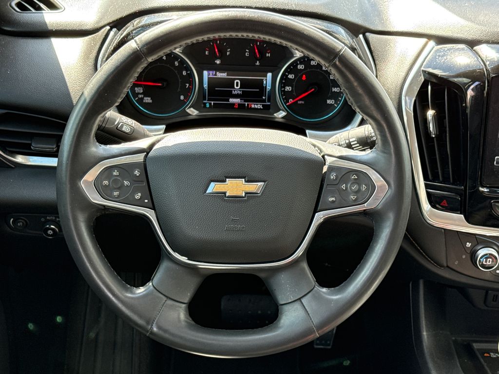 18/27 City/Highway MPG APPLE CAR PLAY, ANDROID AUTO, LEATHER INTERIOR, POWER MOONROOF/SUNROOF, POWER DRIVER'S SEAT, POWER PASSENGER SEAT, HEATED FRONT SEATS, REAR A/C, BLIND SPOT MONITOR, BACK UP CAMERA, 3RD ROW SEAT, LOCAL TRADE IN, WELL MAINTAINED, Traverse Premier 1LZ, 3.6L V6 SIDI VVT, 9-Speed Automatic, Pepperdust Metallic, Apple CarPlay/Android Auto, Auto-dimming Rear-View mirror, Bose Premium 10-Speaker Audio System Feature, Driver Confidence II Package, Following Distance Indicator, Forward Collision Alert, Front License Plate Bracket Mounting Package, Front Pedestrian Braking, IntelliBeam Auto High Beam Control Headlamps, Lane Keep Assist w/Lane Departure Warning, Low Speed Forward Automatic Braking, Memory seat, Navigation System, Power driver seat, Power steering, Power windows, Preferred Equipment Group 1LZ, Premium audio system: Chevrolet MyLink. This vehicle comes well equipped with Driver Confidence II Package (Following Distance Indicator, Forward Collision Alert, Front Pedestrian Braking, IntelliBeam Auto High Beam Control Headlamps, Lane Keep Assist w/Lane Departure Warning, and Low Speed Forward Automatic Braking), Front License Plate Bracket Mounting Package, Preferred Equipment Group 1LZ, Traverse Premier 1LZ, 3.6L V6 SIDI VVT, 9-Speed Automatic, Pepperdust Metallic, Apple CarPlay/Android Auto, Auto-dimming Rear-View mirror, Bose Premium 10-Speaker Audio System Feature, Memory seat, Navigation System, Power driver seat, Power steering, Power windows, and Premium audio system: Chevrolet MyLink Driver Confidence II Package (Following Distance Indicator, Forward Collision Alert, Front Pedestrian Braking, IntelliBeam Auto High Beam Control Headlamps, Lane Keep Assist w/Lane Departure Warning, and Low Speed Forward Automatic Braking), Front License Plate Bracket Mounting Package, Preferred Equipment Group 1LZ, Traverse Premier 1LZ, 3.6L V6 SIDI VVT, 9-Speed Automatic, Pepperdust Metallic, Apple CarPlay/Android Auto, Auto-dimming Rear-View mirror, Bose Premium 10-Speaker Audio System Feature, Memory seat, Navigation System, Power driver seat, Power steering, Power windows, Premium audio system: Chevrolet MyLink, 10 Speakers, 3.49 Axle Ratio, 3rd row seats: split-bench, 4-Wheel Disc Brakes, 7-Passenger Seating (2-2-3 Seating Configuration), ABS brakes, Air Conditioning, Alloy wheels, AM/FM radio: SiriusXM, Auto-dimming door mirrors, Automatic temperature control, Brake assist, Bumpers: body-color, Compass, Delay-off headlights, Driver door bin, Driver vanity mirror, Dual front impact airbags, Dual front side impact airbags, Dual SkyScape 2-Panel Power Sunroof, Electronic Stability Control, Emergency communication system: OnStar Guidance, Four wheel independent suspension, Front anti-roll bar, Front Bucket Seats, Front Center Armrest, Front dual zone A/C, Front fog lights, Front reading lights, Fully automatic headlights, Garage door transmitter, Heated door mirrors, Heated front seats, Heated rear seats, Heated steering wheel, Illuminated entry, Low tire pressure warning, Occupant sensing airbag, Outside temperature display, Overhead airbag, Overhead console, Panic alarm, Passenger door bin, Passenger vanity mirror, Perforated Leather-Appointed Seat Trim, Power door mirrors, Power Liftgate, Power passenger seat, Radio data system, Radio: Chevrolet MyLink AM/FM Stereo w/Navigation, Rear air conditioning, Rear anti-roll bar, Rear reading lights, Rear window defroster, Rear window wiper, Remote keyless entry, Roof rack: rails only, Security system, SiriusXM Satellite Radio, Speed control, Speed-sensing steering, Spoiler, Steering wheel memory, Steering wheel mounted audio controls, Tachometer, Telescoping steering wheel, Tilt steering wheel, Traction control, Trip computer, Turn signal indicator mirrors, Variably intermittent wipers, Ventilated front seats, Voltmeter, and Wheels: 20" Argent Metallic Machine Faced Aluminum.