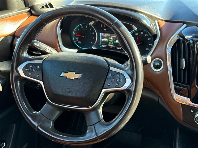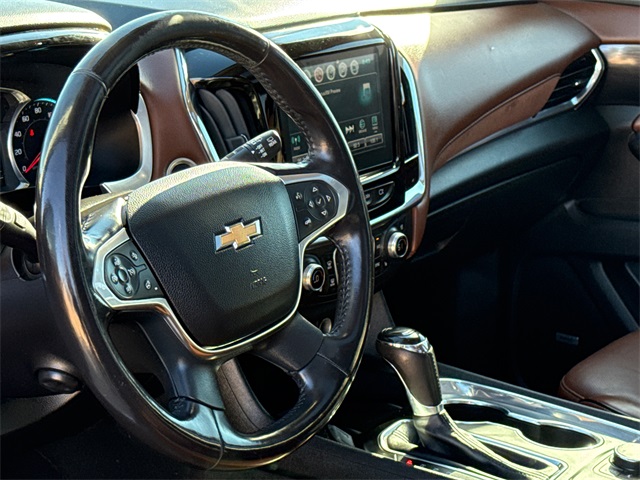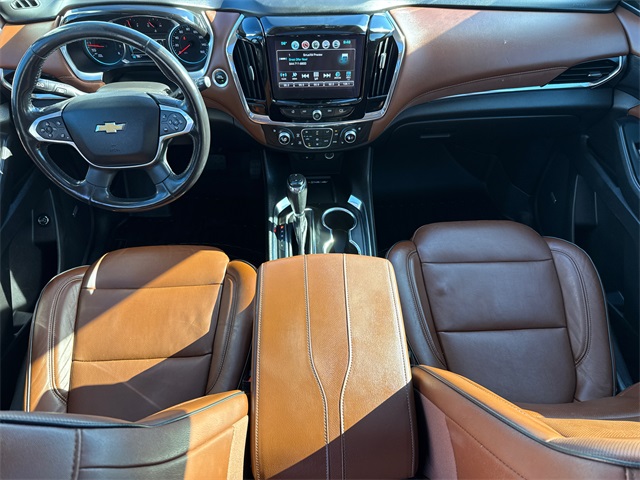Clean CARFAX. 2018 Chevrolet Traverse High Country 4D Sport Utility Mosaic Black Metallic 3.6L V6 SIDI VVT 9-Speed Automatic AWD This vehicle comes well equipped with Front License Plate Bracket Mounting Package, Interior Protection Package (LPO) (1st & 2nd Row All-Weather Floor Mats, 3rd Row All-Weather Floor Mats, and All-Weather Cargo Mat (LPO)), Preferred Equipment Group 2LZ, Traverse High Country, 4D Sport Utility, 3.6L V6 SIDI VVT, AWD, Mosaic Black Metallic, Jet Black/Loft Brown Leather, and Navigation System Front License Plate Bracket Mounting Package, Interior Protection Package (LPO) (1st & 2nd Row All-Weather Floor Mats, 3rd Row All-Weather Floor Mats, and All-Weather Cargo Mat (LPO)), Preferred Equipment Group 2LZ, Traverse High Country, 4D Sport Utility, 3.6L V6 SIDI VVT, AWD, Mosaic Black Metallic, Jet Black/Loft Brown Leather, Navigation System, 10 Speakers, 20" Polished Aluminum Wheels, 3.49 Axle Ratio, 3rd row seats: split-bench, 4-Wheel Disc Brakes, 7-Passenger Seating (2-2-3 Seating Configuration), ABS brakes, Air Conditioning, Alloy wheels, AM/FM radio: SiriusXM, Apple CarPlay/Android Auto, Auto High-beam Headlights, Auto-dimming door mirrors, Auto-dimming Rear-View mirror, Automatic temperature control, Bose Premium 10-Speaker Audio System Feature, Brake assist, Bumpers: body-color, Compass, Delay-off headlights, Driver door bin, Driver vanity mirror, Dual front impact airbags, Dual front side impact airbags, Electronic Stability Control, Emergency communication system: OnStar Guidance, Four wheel independent suspension, Front anti-roll bar, Front Bucket Seats, Front Center Armrest, Front dual zone A/C, Front fog lights, Front reading lights, Fully automatic headlights, Garage door transmitter, Heated door mirrors, Heated front seats, Heated rear seats, Heated steering wheel, Illuminated entry, Low tire pressure warning, Memory seat, Occupant sensing airbag, Outside temperature display, Overhead airbag, Overhead console, Panic alarm, Passenger door bin, Passenger vanity mirror, Perforated Leather-Appointed Seat Trim, Power door mirrors, Power driver seat, Power Liftgate, Power moonroof: Dual SkyScape, Power passenger seat, Power steering, Power windows, Premium audio system: Chevrolet MyLink, Radio data system, Radio: Chevrolet MyLink AM/FM Stereo w/Navigation, Rear air conditioning, Rear anti-roll bar, Rear reading lights, Rear window defroster, Rear window wiper, Remote keyless entry, Roof rack: rails only, Security system, SiriusXM Satellite Radio, Speed control, Speed-sensing steering, Spoiler, Steering wheel memory, Steering wheel mounted audio controls, Tachometer, Telescoping steering wheel, Tilt steering wheel, Traction control, Trip computer, Turn signal indicator mirrors, Variably intermittent wipers, Ventilated front seats, and Voltmeter. For more information contact one of our Internet Managers at 682-498-8390 to set up your VIP Test Drive.. At SHOTTENKIRK CDJR Granbury located in Granbury, TX all of our Pre-Owned vehicles go through a 100 point plus inspection. The oil and filter are changed, complete brake inspection, tire rotation, safety inspection and all fluid levels are topped off. If we find anything that needs attention we address the issue and fix it. So buy with confidence that you are getting a quality vehicle. We can do a complete walk around for you over the phone. Trade ins are always welcomed. We offer financing from over 25 finance and credit unions locally and nationally. SHOTTENKIRK CDJR 4970 E HWY 377 GRANBURY TEXAS 76049.