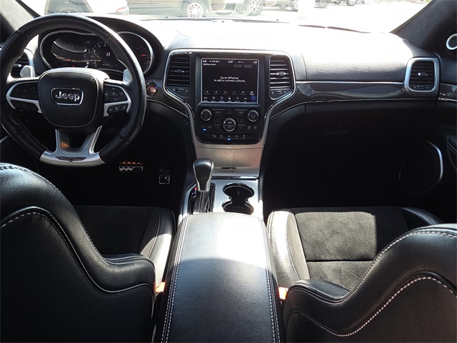 Certified. 2018 Jeep Grand Cherokee Trackhawk 4D Sport Utility Granite Crystal Metallic Clearcoat 6.2L Supercharged HEMI V8 SRT 8-Speed Automatic 4WD This vehicle comes well equipped with High performance Audio (19 Speakers High Performance Audio and 825 Watt Amplifier), Quick Order Package 2XV, Trailer Tow Group IV (7 & 4 Pin Wiring Harness, Class IV Receiver Hitch, and Heavy-Duty Engine Cooling), Grand Cherokee Trackhawk, 4D Sport Utility, 6.2L Supercharged HEMI V8 SRT, 8-Speed Automatic, 4WD, Granite Crystal Metallic Clearcoat, Black Leather, 10 Speakers, AM/FM radio: SiriusXM, Audio memory, Auto High-beam Headlights, Auto-dimming door mirrors, Bumpers: body-color, Delay-off headlights, Front License Plate Bracket, Fully automatic headlights, Headlight cleaning, Heated door mirrors, High intensity discharge headlights: Bi-Xenon, Manufacturer's Statement of Origin, Navigation System, Panic alarm, ParkView Rear Back-Up Camera, Power door mirrors, Radio data system, Radio: Uconnect 4C Nav w/8.4" Display, Security system, Single Disc Remote CD Player, Speed control, Spoiler, and Turn signal indicator mirrors High performance Audio (19 Speakers High Performance Audio and 825 Watt Amplifier), Quick Order Package 2XV, Trailer Tow Group IV (7 & 4 Pin Wiring Harness, Class IV Receiver Hitch, and Heavy-Duty Engine Cooling), Grand Cherokee Trackhawk, 4D Sport Utility, 6.2L Supercharged HEMI V8 SRT, 8-Speed Automatic, 4WD, Granite Crystal Metallic Clearcoat, Black Leather, 10 Speakers, AM/FM radio: SiriusXM, Audio memory, Auto High-beam Headlights, Auto-dimming door mirrors, Bumpers: body-color, Delay-off headlights, Front License Plate Bracket, Fully automatic headlights, Headlight cleaning, Heated door mirrors, High intensity discharge headlights: Bi-Xenon, Manufacturer's Statement of Origin, Navigation System, Panic alarm, ParkView Rear Back-Up Camera, Power door mirrors, Radio data system, Radio: Uconnect 4C Nav w/8.4" Display, Security system, Single Disc Remote CD Player, Speed control, Spoiler, Turn signal indicator mirrors, 3.70 Rear Axle Ratio, 4-Wheel Disc Brakes, ABS brakes, Adaptive suspension, Air Conditioning, Alloy wheels, Anti-whiplash front head restraints, Apple CarPlay/Android Auto, Auto-dimming Rear-View mirror, Automatic temperature control, Brake assist, Compass, Competition Suspension, Driver door bin, Driver vanity mirror, Dual front impact airbags, Dual front side impact airbags, Dual-Pane Panoramic Sunroof, Electronic Stability Control, Emergency communication system: SiriusXM Guardian, Four wheel independent suspension, Front anti-roll bar, Front Bucket Seats, Front Center Armrest w/Storage, Front dual zone A/C, Front reading lights, Garage door transmitter, Heated front seats, Heated rear seats, Heated steering wheel, Illuminated entry, Knee airbag, Leather Shift Knob, Low tire pressure warning, Memory seat, Occupant sensing airbag, Outside temperature display, Overhead airbag, Overhead console, Passenger door bin, Passenger vanity mirror, Power driver seat, Power Liftgate, Power passenger seat, Power steering, Power windows, Premium Headliner Module, Rain sensing wipers, Rear anti-roll bar, Rear reading lights, Rear seat center armrest, Rear window defroster, Rear window wiper, Remote keyless entry, Speed-Sensitive Wipers, Split folding rear seat, Steering wheel mounted audio controls, Suede/Nappa Performance Seats, Tachometer, Telescoping steering wheel, Tilt steering wheel, Traction control, Trip computer, Variably intermittent wipers, Ventilated front seats, Wheels: 20" x 10" Black Satin Aluminum, and Wheels: 20" x 10" Forged Polished Face. For more information contact one of our Internet Managers at 682-498-8390 to set up your VIP Test Drive.. At SHOTTENKIRK CDJR Granbury located in Granbury, TX all of our Pre-Owned vehicles go through a 100 point plus inspection. The oil and filter are changed, complete brake inspection, tire rotation, safety inspection and all fluid levels are topped off. If we find a
