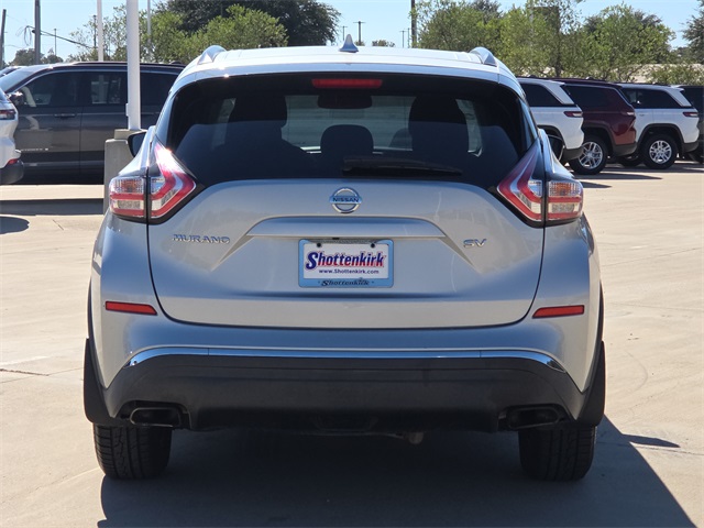 2018 Nissan Murano SV 4D Sport Utility Brilliant Silver Metallic 3.5L V6 DOHC 24V CVT with Xtronic FWD This vehicle comes well equipped with Premium Package (BOSE Premium Audio System w/11 Speakers, Heated Front Bucket Seats, Heated Outside Mirrors, Intelligent Around View Monitor, Intelligent Cruise Control, Intelligent Drive Alertness (I-DA), Power Panoramic Moonroof, and Wheels: 18" Gunmetal Aluminum-Alloy), Murano SV, 4D Sport Utility, 3.5L V6 DOHC 24V, CVT with Xtronic, FWD, Brilliant Silver Metallic, Graphite Cloth, 6 Speakers, AM/FM radio: SiriusXM, AM/FM/CD/MP3/WMA Audio System, and Navigation System Premium Package (BOSE Premium Audio System w/11 Speakers, Heated Front Bucket Seats, Heated Outside Mirrors, Intelligent Around View Monitor, Intelligent Cruise Control, Intelligent Drive Alertness (I-DA), Power Panoramic Moonroof, and Wheels: 18" Gunmetal Aluminum-Alloy), Murano SV, 4D Sport Utility, 3.5L V6 DOHC 24V, CVT with Xtronic, FWD, Brilliant Silver Metallic, Graphite Cloth, 6 Speakers, AM/FM radio: SiriusXM, AM/FM/CD/MP3/WMA Audio System, Navigation System, 4-Wheel Disc Brakes, 4.667 Axle Ratio, ABS brakes, Air Conditioning, Alloy wheels, Apple CarPlay/Android Auto, Auto-dimming Rear-View mirror, Automatic temperature control, Blind Spot Warning, Brake assist, Bumpers: body-color, Carpeted Floor Mats & Carpeted Cargo Mat, CD player, Child-Seat-Sensing Airbag, Cloth Seat Trim, Delay-off headlights, Driver door bin, Driver vanity mirror, Dual front impact airbags, Dual front side impact airbags, Electronic Stability Control, Four wheel independent suspension, Front anti-roll bar, Front Bucket Seats, Front Center Armrest, Front dual zone A/C, Front fog lights, Front reading lights, Fully automatic headlights, Garage door transmitter: HomeLink, Illuminated entry, Knee airbag, Leather Shift Knob, Low tire pressure warning, Occupant sensing airbag, Outside temperature display, Overhead airbag, Overhead console, Panic alarm, Passenger door bin, Passenger vanity mirror, Power door mirrors, Power driver seat, Power passenger seat, Power steering, Power windows, Radio data system, Rear anti-roll bar, Rear reading lights, Rear seat center armrest, Rear window defroster, Rear window wiper, Remote keyless entry, Roof rack: rails only, Security system, Speed control, Speed-sensing steering, Speed-Sensitive Wipers, Splash Guards, Split folding rear seat, Spoiler, Steering wheel mounted audio controls, Tachometer, Telescoping steering wheel, Tilt steering wheel, Traction control, Trip computer, Turn signal indicator mirrors, Variably intermittent wipers, and Wheels: 18" Machined Aluminum-Alloy. For more information contact one of our Internet Managers at 682-498-8390 to set up your VIP Test Drive.. At SHOTTENKIRK CDJR Granbury located in Granbury, TX all of our Pre-Owned vehicles go through a 100 point plus inspection. The oil and filter are changed, complete brake inspection, tire rotation, safety inspection and all fluid levels are topped off. If we find anything that needs attention we address the issue and fix it. So buy with confidence that you are getting a quality vehicle. We can do a complete walk around for you over the phone. Trade ins are always welcomed. We offer financing from over 25 finance and credit unions locally and nationally. SHOTTENKIRK CDJR 4970 E HWY 377 GRANBURY TEXAS 76049.