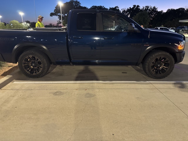 2019 Ram 1500 Classic Warlock 4D Quad Cab Patriot Blue Pearlcoat HEMI 5.7L V8 Multi Displacement VVT 8-Speed Automatic 4WD This vehicle comes well equipped with Electronics Group (1-Yr SiriusXM Guardian Trial, 8.4" Touchscreen Display, Air Conditioning ATC w/Dual Zone Control, Apple CarPlay, Cluster 7.0" TFT Color Display, Google Android Auto, GPS Antenna Input, HD Radio, Humidity Sensor, Integrated Voice Command w/Bluetooth, Media Hub (2 USB, AUX), Radio: Uconnect 4C w/8.4" Display, SiriusXM Satellite Radio, and USB Host Flip), Quick Order Package 27F Warlock (4x4 Decal, 4x4 Flat Black Badge, Bi-Function Halogen Projector Headlamps, Black Exterior Truck Badging, Black Grille w/RAM Lettering, Black Headlamp Bezels, Black Headlamp Filler Panel, Black Powder Coated Front Bumper, Black Powder Coated Rear Bumper, Black RAM Head Tailgate Badge, Black Wheel Flares, Dual Rear Exhaust w/Bright Tips, Front LED Fog Lamps, Front Wheel Well Liners, Hood Decal, ParkSense Rear Park Assist System, Rear Extra HD Shock Absorbers, Rear Floor Mats, Semi-Gloss Black Hub, Sport Tail Lamps, Tow Hooks, and Wheels: 20" x 8" Semi-Gloss Black Aluminum), Remote Start & Security Alarm Group (Remote Start System and Security Alarm), 1500 Classic Warlock, 4D Quad Cab, HEMI 5.7L V8 Multi Displacement VVT, 8-Speed Automatic, 4WD, Patriot Blue Pearlcoat, and Black Cloth Electronics Group (1-Yr SiriusXM Guardian Trial, 8.4" Touchscreen Display, Air Conditioning ATC w/Dual Zone Control, Apple CarPlay, Cluster 7.0" TFT Color Display, Google Android Auto, GPS Antenna Input, HD Radio, Humidity Sensor, Integrated Voice Command w/Bluetooth, Media Hub (2 USB, AUX), Radio: Uconnect 4C w/8.4" Display, SiriusXM Satellite Radio, and USB Host Flip), Quick Order Package 27F Warlock (4x4 Decal, 4x4 Flat Black Badge, Bi-Function Halogen Projector Headlamps, Black Exterior Truck Badging, Black Grille w/RAM Lettering, Black Headlamp Bezels, Black Headlamp Filler Panel, Black Powder Coated Front Bumper, Black Powder Coated Rear Bumper, Black RAM Head Tailgate Badge, Black Wheel Flares, Dual Rear Exhaust w/Bright Tips, Front LED Fog Lamps, Front Wheel Well Liners, Hood Decal, ParkSense Rear Park Assist System, Rear Extra HD Shock Absorbers, Rear Floor Mats, Semi-Gloss Black Hub, Sport Tail Lamps, Tow Hooks, and Wheels: 20" x 8" Semi-Gloss Black Aluminum), Remote Start & Security Alarm Group (Remote Start System and Security Alarm), 1500 Classic Warlock, 4D Quad Cab, HEMI 5.7L V8 Multi Displacement VVT, 8-Speed Automatic, 4WD, Patriot Blue Pearlcoat, Black Cloth, 17" x 7" Aluminum Wheels, 3.21 Rear Axle Ratio, 4-Wheel Disc Brakes, 6 Speakers, ABS brakes, Active Grille Shutters, Air Conditioning, Alloy wheels, AM/FM radio: SiriusXM, Brake assist, Bumpers: chrome, Charge Only Remote USB Port, Cloth 40/20/40 Bench Seat, Compass, Delay-off headlights, Driver door bin, Dual front impact airbags, Dual front side impact airbags, Electronic Shift, Electronic Stability Control, Front & Rear Rubber Floor Mats, Front anti-roll bar, Front Armrest w/3 Cupholders, Front Center Armrest w/Storage, Front reading lights, Front wheel independent suspension, Fully automatic headlights, Heated door mirrors, Illuminated entry, Low tire pressure warning, Occupant sensing airbag, Outside temperature display, Overhead airbag, Overhead console, Panic alarm, ParkView Rear Back-Up Camera, Passenger door bin, Passenger vanity mirror, Power door mirrors, Power steering, Power windows, Radio data system, Radio: Uconnect 3 w/5" Display, Rear anti-roll bar, Rear step bumper, Remote keyless entry, Speed control, Tachometer, Tilt steering wheel, Tip Start, Traction control, Trip computer, Variably intermittent wipers, and Voltmeter. For more information contact one of our Internet Managers at 682-498-8390 to set up your VIP Test Drive.. At SHOTTENKIRK CDJR Granbury located in Granbury, TX all of our Pre-Owned vehicles go through a 100 point plus inspection. The oil and filter are changed, complete brake inspection