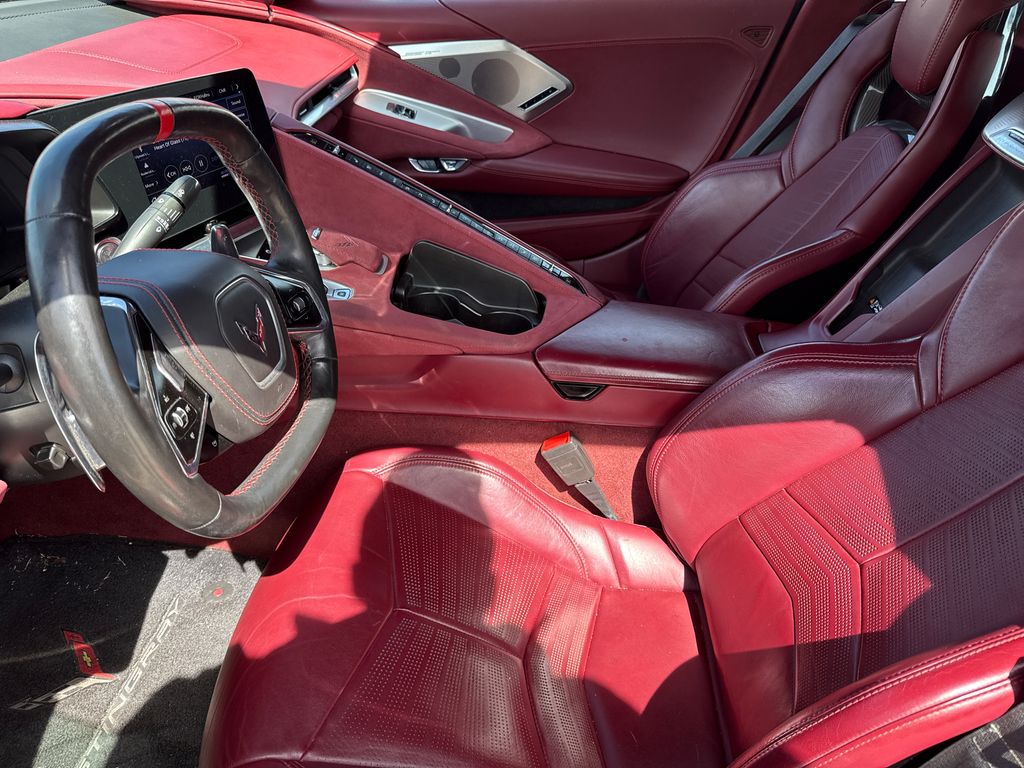 Clean CARFAX. 2021 Chevrolet Corvette Stingray 2D Coupe Red Mist Metallic Tintcoat 6.2L V8 8 Speed Dual Clutch RWD This vehicle comes well equipped with Custom Leather Wrapped Interior Package, Memory Driver & Passenger Convenience Package, Preferred Equipment Group 3LT (2 Cargo Nets, Driver Power Bolster Seat Adjuster, Electrical Theft Deterrent System, HD Front & Rear Vision Cameras, Head-Up Display, Heated & Vented Driver & Passenger Seats, Heated Steering Wheel, Passenger Power Bolster Seat Adjuster, Performance Data & Video Recorder, Power Driver Lumbar Control Seat Adjuster, Power Passenger Lumbar Control Seat Adjuster, Power-Adjustable Outside Heated Mirrors, Rear Camera Mirror, Rear Cross Traffic Alert, Side Blind Zone Alert, Sueded Microfiber-Wrapped Upper Interior Trim Pkg, Universal Home Remote, Vehicle Inclination Theft Deterrent Sensor, Vehicle Interior Movement Theft Deterrent Sensor, and Wireless Charging for Devices), Corvette Stingray 3LT, 2D Coupe, 6.2L V8, RWD, Red Mist Metallic Tintcoat, Morello Red Dipped Leather, and Navigation System Custom Leather Wrapped Interior Package, Memory Driver & Passenger Convenience Package, Preferred Equipment Group 3LT (2 Cargo Nets, Driver Power Bolster Seat Adjuster, Electrical Theft Deterrent System, HD Front & Rear Vision Cameras, Head-Up Display, Heated & Vented Driver & Passenger Seats, Heated Steering Wheel, Passenger Power Bolster Seat Adjuster, Performance Data & Video Recorder, Power Driver Lumbar Control Seat Adjuster, Power Passenger Lumbar Control Seat Adjuster, Power-Adjustable Outside Heated Mirrors, Rear Camera Mirror, Rear Cross Traffic Alert, Side Blind Zone Alert, Sueded Microfiber-Wrapped Upper Interior Trim Pkg, Universal Home Remote, Vehicle Inclination Theft Deterrent Sensor, Vehicle Interior Movement Theft Deterrent Sensor, and Wireless Charging for Devices), Corvette Stingray 3LT, 2D Coupe, 6.2L V8, RWD, Red Mist Metallic Tintcoat, Morello Red Dipped Leather, Navigation System, 14 Speakers, 4-Wheel Disc Brakes, 8-Way Power Driver Seat Adjuster, 8-Way Power Passenger Seat Adjuster, ABS brakes, Air Conditioning, Alloy wheels, AM/FM radio: SiriusXM, Auto-dimming door mirrors, Auto-dimming Rear-View mirror, Automatic temperature control, Body-Color Exterior Accents, Body-Color Removeable Roof Panel, Bose Performance Series Sound System w/14 Speakers, Brake assist, Bumpers: body-color, Compass, Delay-off headlights, Driver door bin, Driver vanity mirror, Dual front impact airbags, Dual front side impact airbags, Edge Red LT2 Engine Cover (LPO), Electronic Stability Control, Emergency communication system: OnStar and Chevrolet connected services capable, Four wheel independent suspension, Front anti-roll bar, Front Bucket Seats, Front Center Armrest, Front dual zone A/C, Front reading lights, Fully automatic headlights, Garage door transmitter, GT2 Bucket Seats, HD Radio, Heads-Up Display, Heated door mirrors, Heated front seats, Heated steering wheel, Illuminated entry, Leather Shift Knob, Leather steering wheel, Low tire pressure warning, Magnetic Selective Ride Control Suspension, Memory seat, Napa Lthr Seating Surfaces w/Perforated Inserts, Occupant sensing airbag, Outside temperature display, Overhead console, Panic alarm, Passenger door bin, Passenger vanity mirror, Performance Exhaust w/Stainless-Steel Tips, Power door mirrors, Power driver seat, Power passenger seat, Power steering, Power windows, Radio data system, Radio: Chevrolet Infotainment 3 Premium System, Rear anti-roll bar, Rear Parking Sensors, Rear window defroster, Remote keyless entry, Roof Panel Storage Pouch (LPO), Security system, SiriusXM Radio, Speed control, Speed-sensing steering, Sport steering wheel, Steering wheel memory, Steering wheel mounted audio controls, Tachometer, Telescoping steering wheel, Tilt steering wheel, Traction control, Trip computer, Turn signal indicator mirrors, Variably intermittent wipers, Ventilated front seats, Voltmeter, Wheel Locks, Wheels: 19" x 8