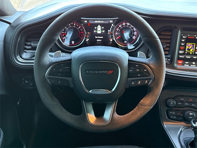 Clean CARFAX. 2021 Dodge Challenger R/T Scat Pack 2D Coupe Pitch Black Clearcoat SRT HEMI 6.4L V8 MDS 8-Speed Automatic RWD This vehicle comes well equipped with 1320 (1 Year NMCA/NHRA Membership, 1320 Fender Badge, 1320 I/P Badge, 1320 Illuminated Air Catcher, Adaptive Damping Suspension, Dodge Alcantara Performance Steering Wheel, Dodge Performance Pages, Drag Mode Performance Pages, Drag Mode Suspension, Driver Floor Mat, Front Passenger Seat Belt Delete, Nexen Brand Tires, Speed Limited Engine Controller, Transbrake, and Wheels: 20" x 9.5" Low Gloss Black Drag), 1320 Plus Group (Black-Edged Premium Floormats, Door Trim Panel w/Ambient Lighting, Heated Steering Wheel, Nappa/Alcantara Performance Seats, Power Tilt/Telescope Steering Column, Premium-Stitched Dash Panel, Radio/Driver Seat/Mirrors Memory, and Ventilated Front Seats), Carbon/Suede Interior Package (Real Carbon Fiber Interior Accents and Suede Headliner), Driver Convenience Group (Blind Spot & Cross Path Detection, High-Intensity Discharge Headlamps, and Power Multi-Function Foldaway Mirrors), Quick Order Package 24G R/T Scat Pack (3.09 Rear Axle Ratio), Technology Group (Auto High Beam Headlamp Control and Rain Sensitive Windshield Wipers), Challenger R/T Scat Pack, 2D Coupe, SRT HEMI 6.4L V8 MDS, RWD, Pitch Black Clearcoat, Black Artificial Leather, and Navigation System 1320 (1 Year NMCA/NHRA Membership, 1320 Fender Badge, 1320 I/P Badge, 1320 Illuminated Air Catcher, Adaptive Damping Suspension, Dodge Alcantara Performance Steering Wheel, Dodge Performance Pages, Drag Mode Performance Pages, Drag Mode Suspension, Driver Floor Mat, Front Passenger Seat Belt Delete, Nexen Brand Tires, Speed Limited Engine Controller, Transbrake, and Wheels: 20" x 9.5" Low Gloss Black Drag), 1320 Plus Group (Black-Edged Premium Floormats, Door Trim Panel w/Ambient Lighting, Heated Steering Wheel, Nappa/Alcantara Performance Seats, Power Tilt/Telescope Steering Column, Premium-Stitched Dash Panel, Radio/Driver Seat/Mirrors Memory, and Ventilated Front Seats), Carbon/Suede Interior Package (Real Carbon Fiber Interior Accents and Suede Headliner), Driver Convenience Group (Blind Spot & Cross Path Detection, High-Intensity Discharge Headlamps, and Power Multi-Function Foldaway Mirrors), Quick Order Package 24G R/T Scat Pack (3.09 Rear Axle Ratio), Technology Group (Auto High Beam Headlamp Control and Rain Sensitive Windshield Wipers), Challenger R/T Scat Pack, 2D Coupe, SRT HEMI 6.4L V8 MDS, RWD, Pitch Black Clearcoat, Black Artificial Leather, Navigation System, 1-Yr SiriusXM Guardian Trial, 230MM Rear Axle, 4-Wheel Disc Brakes, 6 Speakers, ABS brakes, Air Conditioning, Alloy wheels, AM/FM radio: SiriusXM, Anti-whiplash front head restraints, Apple CarPlay, Apple CarPlay/Android Auto, Auto-dimming Rear-View mirror, Automatic temperature control, Brake assist, Bumpers: body-color, Cargo Net, Compass, Delay-off headlights, Driver door bin, Driver vanity mirror, Dual front impact airbags, Dual front side impact airbags, Electronic Stability Control, Emergency communication system: SiriusXM Guardian, Four wheel independent suspension, Front anti-roll bar, Front Bucket Seats, Front Center Armrest, Front dual zone A/C, Front Floor Mat, Front fog lights, Front License Plate Bracket, Front reading lights, Fully automatic headlights, Garage door transmitter, Google Android Auto, GPS Antenna Input, Heated door mirrors, Heated front seats, Heated steering wheel, Houndstooth Cloth Performance Seats, Illuminated entry, Integrated Center Stack Radio, Integrated Voice Command w/Bluetooth, Leather Shift Knob, Low tire pressure warning, Media Hub (2 USB, AUX), Outside temperature display, Overhead airbag, Overhead console, Panic alarm, ParkView Rear Back-Up Camera, Passenger door bin, Passenger vanity mirror, Power door mirrors, Power driver seat, Power steering, Power Sunroof, Power windows, Radio data system, Radio: Uconnect 4C w/8.4" Display, Rear anti-roll bar, Rear reading lights, Rear Seat Be