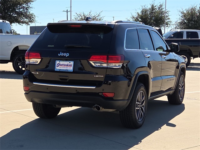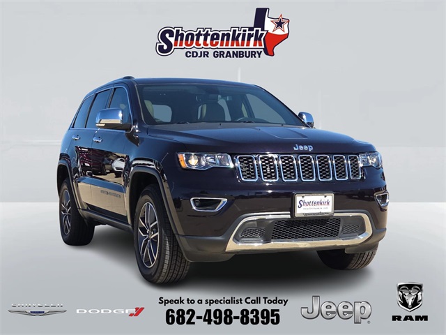 Certified. Clean CARFAX. 2021 Jeep Grand Cherokee Limited 4D Sport Utility Sangria Metallic Clearcoat 3.6L V6 24V VVT 8-Speed Automatic 4WD This vehicle comes well equipped with Quick Order Package 2BH, Grand Cherokee Limited, 4D Sport Utility, 3.6L V6 24V VVT, 8-Speed Automatic, 4WD, Sangria Metallic Clearcoat, Black Leather, 230MM Rear Axle, Auto-dimming door mirrors, Bumpers: body-color, Front License Plate Bracket, GPS Navigation, Heated door mirrors, Navigation System, Power door mirrors, Roof rack: rails only, and Spoiler Quick Order Package 2BH, Grand Cherokee Limited, 4D Sport Utility, 3.6L V6 24V VVT, 8-Speed Automatic, 4WD, Sangria Metallic Clearcoat, Black Leather, 230MM Rear Axle, Auto-dimming door mirrors, Bumpers: body-color, Front License Plate Bracket, GPS Navigation, Heated door mirrors, Navigation System, Power door mirrors, Roof rack: rails only, Spoiler, 1-Year SiriusXM Guardian Trial, 3.45 Rear Axle Ratio, 4-Wheel Disc Brakes, 4G LTE Wi-Fi Hot Spot, 6 Speakers, 8.4" Touchscreen Display, ABS brakes, Air Conditioning, Alloy wheels, AM/FM radio: SiriusXM, Anti-whiplash front head restraints, Apple CarPlay, Apple CarPlay/Android Auto, Audio memory, Auto-dimming Rear-View mirror, Automatic temperature control, Brake assist, Compass, Delay-off headlights, Driver door bin, Driver vanity mirror, Dual front impact airbags, Dual front side impact airbags, Electronic Stability Control, Emergency communication system: SiriusXM Guardian, Four wheel independent suspension, Front anti-roll bar, Front Bucket Seats, Front Center Armrest w/Storage, Front dual zone A/C, Front fog lights, Front reading lights, Fully automatic headlights, Garage door transmitter, Google Android Auto, GPS Antenna Input, HD Radio, Heated front seats, Heated steering wheel, Illuminated entry, Integrated Voice Command w/Bluetooth, Knee airbag, Leather Shift Knob, Leather Trimmed Bucket Seats, Low tire pressure warning, Memory seat, Normal Duty Suspension, Occupant sensing airbag, Outside temperature display, Overhead airbag, Overhead console, Panic alarm, ParkView Rear Back-Up Camera, Passenger door bin, Passenger vanity mirror, Power driver seat, Power Liftgate, Power moonroof, Power passenger seat, Power steering, Power windows, Radio data system, Radio: Uconnect 4C Nav w/8.4" Display, Rear anti-roll bar, Rear reading lights, Rear seat center armrest, Rear window defroster, Rear window wiper, Remote keyless entry, Security system, SiriusXM Satellite Radio, SiriusXM Traffic Plus, SiriusXM Travel Link, Speed control, Speed-sensing steering, Speed-Sensitive Wipers, Split folding rear seat, Steering wheel mounted audio controls, Tachometer, Telescoping steering wheel, Tilt steering wheel, Traction control, Trip computer, Turn signal indicator mirrors, Variably intermittent wipers, Voltmeter, and Wheels: 18" x 8.0" Tech Gray Diamond Cut. For more information contact one of our Internet Managers at 682-498-8390 to set up your VIP Test Drive.. At SHOTTENKIRK CDJR Granbury located in Granbury, TX all of our Pre-Owned vehicles go through a 100 point plus inspection. The oil and filter are changed, complete brake inspection, tire rotation, safety inspection and all fluid levels are topped off. If we find anything that needs attention we address the issue and fix it. So buy with confidence that you are getting a quality vehicle. We can do a complete walk around for you over the phone. Trade ins are always welcomed. We offer financing from over 25 finance and credit unions locally and nationally. SHOTTENKIRK CDJR 4970 E HWY 377 GRANBURY TEXAS 76049.