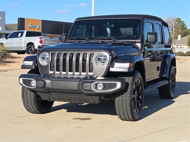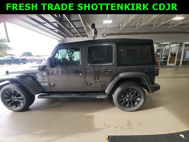 2021 Jeep Wrangler Unlimited Sahara 4xe 4D Sport Utility Granite Crystal Metallic Clearcoat 2.0L I4 DOHC 8-Speed Automatic 4WD This vehicle comes well equipped with 4D Sport Utility, 2.0L I4 DOHC, 4WD, Granite Crystal Metallic Clearcoat, Black Leather, ABS brakes, Alloy wheels, Compass, Electronic Stability Control, Front dual zone A/C, Heated door mirrors, Illuminated entry, Low tire pressure warning, Navigation System, ParkView Rear Back-Up Camera, Passenger door bin, Remote keyless entry, and Traction control 4D Sport Utility, 2.0L I4 DOHC, 4WD, Granite Crystal Metallic Clearcoat, Black Leather, ABS brakes, Alloy wheels, Compass, Electronic Stability Control, Front dual zone A/C, Heated door mirrors, Illuminated entry, Low tire pressure warning, Navigation System, ParkView Rear Back-Up Camera, Passenger door bin, Remote keyless entry, Traction control, 3.73 Rear Axle Ratio, 4-Wheel Disc Brakes, 9 Speakers, Air Conditioning, AM/FM radio, Apple CarPlay/Android Auto, Auto-dimming Rear-View mirror, Automatic temperature control, Brake assist, Delay-off headlights, Driver door bin, Driver vanity mirror, Dual front impact airbags, Dual front side impact airbags, Emergency communication system: SiriusXM Guardian, Front anti-roll bar, Front Bucket Seats, Front Center Armrest w/Storage, Front fog lights, Front reading lights, Fully automatic headlights, Garage door transmitter, Integrated roll-over protection, Leather Shift Knob, Leather steering wheel, Leather Trimmed Seats w/Sahara Logo, Leather Wrapped Park Brake Handle, Occupant sensing airbag, Outside temperature display, Panic alarm, Passenger vanity mirror, Power door mirrors, Power steering, Power windows, Radio data system, Radio: Uconnect 4C Nav w/8.4" Display, Rear anti-roll bar, Rear reading lights, Rear seat center armrest, Security system, Speed control, Split folding rear seat, Sport Suspension, Steering wheel mounted audio controls, Tachometer, Telescoping steering wheel, Tilt steering wheel, Trip computer, Variably intermittent wipers, Voltmeter, and Wheels: 20" x 8" Fully Painted Aluminum. For more information contact one of our Internet Managers at 682-498-8390 to set up your VIP Test Drive.. At SHOTTENKIRK CDJR Granbury located in Granbury, TX all of our Pre-Owned vehicles go through a 100 point plus inspection. The oil and filter are changed, complete brake inspection, tire rotation, safety inspection and all fluid levels are topped off. If we find anything that needs attention we address the issue and fix it. So buy with confidence that you are getting a quality vehicle. We can do a complete walk around for you over the phone. Trade ins are always welcomed. We offer financing from over 25 finance and credit unions locally and nationally. SHOTTENKIRK CDJR 4970 E HWY 377 GRANBURY TEXAS 76049.