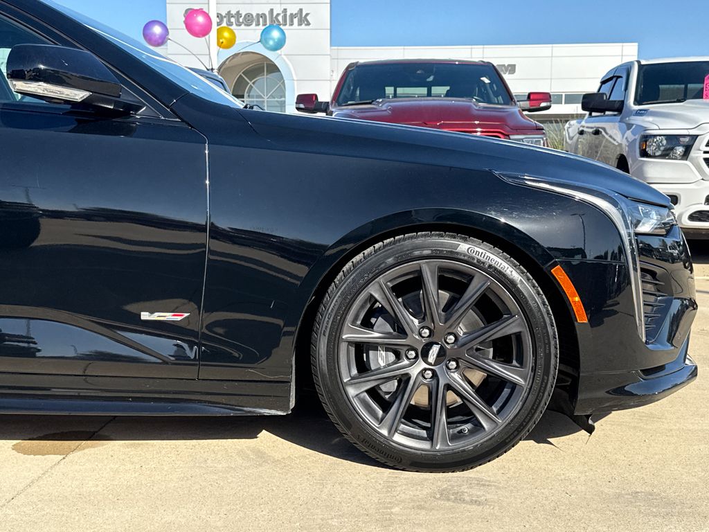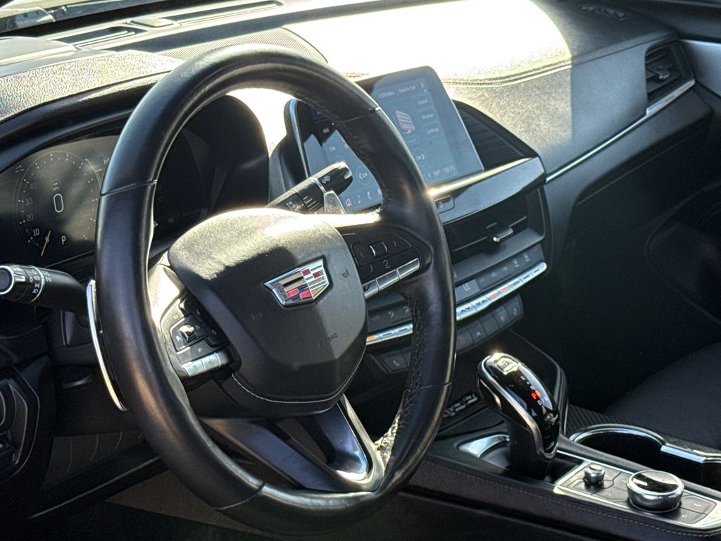 CARFAX One-Owner. 2022 Cadillac CT4 V-Series 4D Sedan Black Raven 2.7L Turbo 10-Speed Automatic RWD This vehicle comes well equipped with Climate Package (Driver Power Lumbar Massage Seat, Front Passenger Power Lumbar Massage Seat, Heated Driver & Front Passenger Seats, Heated Steering Wheel, and Ventilated Driver & Front Passenger Seats), Lighting Package (LED Front Cornering Lamps and LED Front Lamp Turn Signal), Navigation Package (Performance Data & Video Recorder), Preferred Equipment Group 1SF (Dual Digital Driver Information Center Display, HD Rear Vision Camera, Leather-Wrapped Thick Rim Steering Wheel, and LED Reflective Windshield Collision Alert), Radio: Cadillac User Experience w/Embedded Nav, Technology Package (12" Diagonal HD Color Reconfigurable Driver Display, Air Ionizer, and Head-Up Display), CT4 V-Series, 4D Sedan, 2.7L Turbo, RWD, Black Raven, and Black Leather Climate Package (Driver Power Lumbar Massage Seat, Front Passenger Power Lumbar Massage Seat, Heated Driver & Front Passenger Seats, Heated Steering Wheel, and Ventilated Driver & Front Passenger Seats), Lighting Package (LED Front Cornering Lamps and LED Front Lamp Turn Signal), Navigation Package (Performance Data & Video Recorder), Preferred Equipment Group 1SF (Dual Digital Driver Information Center Display, HD Rear Vision Camera, Leather-Wrapped Thick Rim Steering Wheel, and LED Reflective Windshield Collision Alert), Radio: Cadillac User Experience w/Embedded Nav, Technology Package (12" Diagonal HD Color Reconfigurable Driver Display, Air Ionizer, and Head-Up Display), CT4 V-Series, 4D Sedan, 2.7L Turbo, RWD, Black Raven, Black Leather, 14 Speakers, 4-Way Power Front Passenger Lumbar Seat Adjuster, 4-Wheel Disc Brakes, ABS brakes, Adaptive suspension, Air Conditioning, Alloy wheels, AM/FM radio: SiriusXM, Anti-whiplash front head restraints, Apple CarPlay/Android Auto, Auto High-beam Headlights, Auto-dimming door mirrors, Auto-dimming Rear-View mirror, Automatic Stop/Start w/Disable, Automatic temperature control, Bose Audio System Feature, Brake assist, Bumpers: body-color, Compass, Delay-off headlights, Driver 4-Way Power Lumbar Seat Adjuster, Driver door bin, Driver Seat Manual Cushion Length Adjustment, Driver Seat Power Seatback Bolster Adjustment, Driver vanity mirror, Dual front impact airbags, Dual front side impact airbags, Electronic Stability Control, Emergency communication system: OnStar and Cadillac connected services capable, Exterior Parking Camera Rear, Four wheel independent suspension, Front anti-roll bar, Front Bucket Seats, Front Center Armrest w/Storage, Front dual zone A/C, Front License Plate Bracket, Front Passenger Power Seatback Bolster Adjustment, Front Passenger Seat Manual Cushion Length Adjmt, Front reading lights, Fully automatic headlights, Garage door transmitter, HD Radio, Heated door mirrors, Illuminated entry, Knee airbag, Leather Shift Knob, Leather steering wheel, Leatherette Seats, Low tire pressure warning, Memory seat, Not Equipped w/Fr & Rr Pk Assist/Rev Auto Braking, Not Equipped w/Heated Steering Wheel (DISC), Occupant sensing airbag, Outside temperature display, Overhead airbag, Overhead console, Panic alarm, Passenger door bin, Passenger vanity mirror, Performance Front Bucket Seats, Power door mirrors, Power driver seat, Power passenger seat, Power steering, Power Sunroof w/Express Open & Venting, Power windows, Radio data system, Radio: Cadillac User Experience, Rain sensing wipers, Rear anti-roll bar, Rear reading lights, Rear seat center armrest, Rear window defroster, Remote keyless entry, SiriusXM w/360L, Speed control, Speed-sensing steering, Split folding rear seat, Spoiler, Sport steering wheel, Steering wheel mounted audio controls, Tachometer, Telescoping steering wheel, Tilt steering wheel, Traction control, Trip computer, Turn signal indicator mirrors, Variably intermittent wipers, Voltmeter, Wheels: 18" Aluminum Alloy w/Pearl Nickel Finish, and Wheels: 18" Aluminum Alloy w/Satin Gra