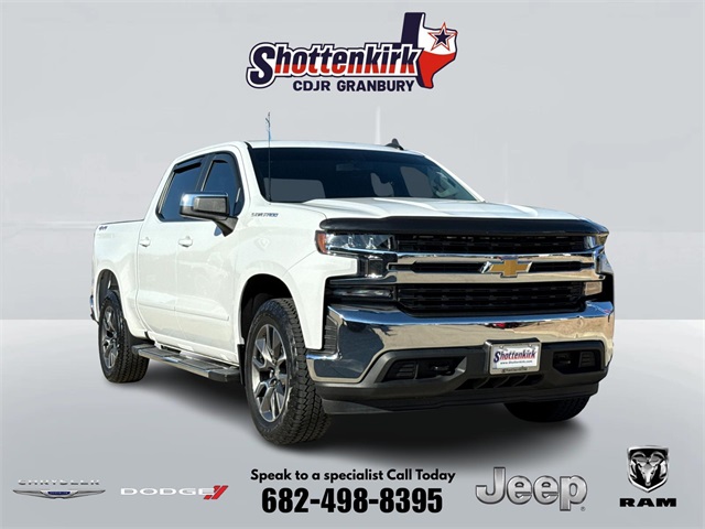 Clean CARFAX. 2022 Chevrolet Silverado 1500 LTD LT 4D Crew Cab Summit White 2.7L Turbo 8-Speed Automatic 4WD This vehicle comes well equipped with Convenience Package (10-Way Power Driver Seat w/Lumbar, 12-Volt Rear Auxiliary Power Outlet, Dual-Zone Automatic Climate Control, Electric Rear-Window Defogger, Keyless Open & Start, Leather Wrapped Steering Wheel, LED Cargo Area Lighting, Manual Tilt/Telescoping Steering Column, Rear Dual USB Charging-Only Ports, Remote Vehicle Starter System, and Theft Deterrent System (Unauthorized Entry)), Trailering Package (Hitch Guidance), Silverado 1500 LTD LT, 4D Crew Cab, 2.7L Turbo, 4WD, Summit White, and Black Cloth Convenience Package (10-Way Power Driver Seat w/Lumbar, 12-Volt Rear Auxiliary Power Outlet, Dual-Zone Automatic Climate Control, Electric Rear-Window Defogger, Keyless Open & Start, Leather Wrapped Steering Wheel, LED Cargo Area Lighting, Manual Tilt/Telescoping Steering Column, Rear Dual USB Charging-Only Ports, Remote Vehicle Starter System, and Theft Deterrent System (Unauthorized Entry)), Trailering Package (Hitch Guidance), Silverado 1500 LTD LT, 4D Crew Cab, 2.7L Turbo, 4WD, Summit White, Black Cloth, 2 USB Ports (First Row), 3.42 Rear Axle Ratio, 4-Wheel Disc Brakes, 4.2" Diagonal Color Display Driver Info Center, 40/20/40 Front Split-Bench Seat, 6 Speakers, 6-Speaker Audio System, ABS brakes, Air Conditioning, All-Star Edition, Alloy wheels, AM/FM radio: SiriusXM, Apple CarPlay/Android Auto, Auto-Locking Rear Differential, Automatic temperature control, Bluetooth® For Phone, Brake assist, Bumpers: chrome, Chevrolet Connected Access Capable, Chrome Grille, Chrome Mirror Caps, Cloth Seat Trim, Color-Keyed Carpeting Floor Covering, Compass, Deep-Tinted Glass, Delay-off headlights, Driver door bin, Driver vanity mirror, Dual front impact airbags, Dual front side impact airbags, Electronic Cruise Control, Electronic Stability Control, Front anti-roll bar, Front Center Armrest w/Storage, Front dual zone A/C, Front Frame-Mounted Black Recovery Hooks, Front License Plate Kit, Front reading lights, Front wheel independent suspension, Fully automatic headlights, Heated door mirrors, Heated Driver & Front Outboard Passenger Seats, Heated front seats, Heated Steering Wheel, Heated steering wheel, Heavy Duty Suspension, Illuminated entry, Low tire pressure warning, Not Equipped w/Heated/Ventilated Front Seats, Occupant sensing airbag, OnStar & Chevrolet Connected Services Capable, Outside temperature display, Overhead airbag, Overhead console, Panic alarm, Passenger door bin, Passenger vanity mirror, Power Door Locks, Power door mirrors, Power driver seat, Power Front Windows w/Driver Express Up/Down, Power Front Windows w/Passenger Express Down, Power Rear Windows w/Express Down, Power steering, Power windows, Premium audio system: Chevrolet Infotainment 3, Radio data system, Radio: Chevrolet Infotainment 3 System, Rear 60/40 Folding Bench Seat (Folds Up), Rear reading lights, Rear step bumper, Rear Vision Camera, Rear window defroster, Remote keyless entry, Security system, Speed control, Speed-sensing steering, Split folding rear seat, Steering Wheel Audio Controls, Steering wheel mounted audio controls, Tachometer, Telescoping steering wheel, Tilt steering wheel, Traction control, Trip computer, Variably intermittent wipers, Voltmeter, Wheels: 18" x 8.5" Bright Silver Painted Aluminum, Wheels: 20" x 9" Painted Aluminum, and Wi-Fi Hot Spot Capable. For more information contact one of our Internet Managers at 682-498-8390 to set up your VIP Test Drive.. At SHOTTENKIRK CDJR Granbury located in Granbury, TX all of our Pre-Owned vehicles go through a 100 point plus inspection. The oil and filter are changed, complete brake inspection, tire rotation, safety inspection and all fluid levels are topped off. If we find anything that needs attention we address the issue and fix it. So buy with confidence that you are getting a quality vehicle. We can do a complete walk around for you o