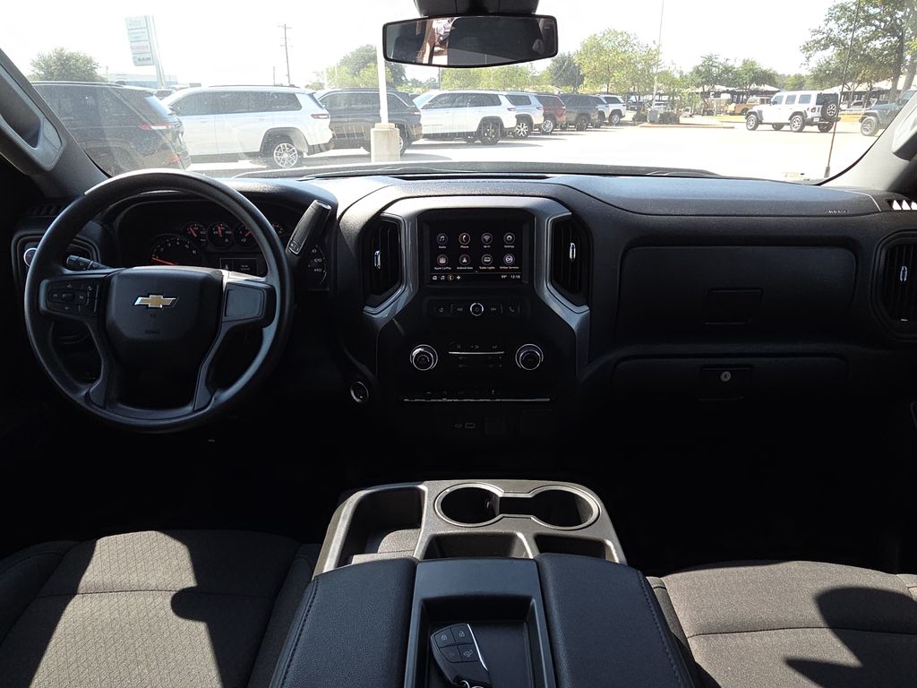 CARFAX One-Owner. 2022 Chevrolet Silverado 1500 Custom 4D Crew Cab Silver Ice Metallic 2.7L Turbo 8-Speed Automatic 4WD This vehicle comes well equipped with Custom Convenience Package (Electric Rear-Window Defogger, EZ Lift Power Lock & Release Tailgate, LED Cargo Area Lighting, and Remote Vehicle Starter System), Custom Value Package, Dark Essentials Package (LPO) (Black Name Plates (LPO)), High Capacity Suspension Package, Preferred Equipment Group 1CX (10-Way Power Driver Seat w/Lumbar, 120-Volt Bed Mounted Power Outlet, 120-Volt Instrument Panel Power Outlet, 3.5" Monochromatic Display Driver Info Center, Bluetooth® For Phone, Chevrolet Connected Access Capable, Color-Keyed Carpeting Floor Covering, Compass, Deep-Tinted Glass, Dual Rear USB Ports (Charge Only), Electrical Steering Column Lock, Electronic Cruise Control, Front Frame-Mounted Black Recovery Hooks, Front Rubberized Vinyl Floor Mats, HD Rear Vision Camera, Manual Tilt Wheel Steering Column, OnStar & Chevrolet Connected Services Capable, Power Front Windows w/Driver Express Up/Down, Power Front Windows w/Passenger Express Down, Power Rear Windows w/Express Down, Rear 60/40 Folding Bench Seat (Folds Up), Rear Rubberized-Vinyl Floor Mats, Remote Keyless Entry, SiriusXM Radio, Standard Tailgate, Theft Deterrent System (Unauthorized Entry), Wi-Fi Hot Spot Capable, and Wireless Phone Projection), Trailering Package (Hitch Guidance), Silverado 1500 Custom, 4D Crew Cab, 2.7L Turbo, 8-Speed Automatic, 4WD, Silver Ice Metallic, and Black Cloth Custom Convenience Package (Electric Rear-Window Defogger, EZ Lift Power Lock & Release Tailgate, LED Cargo Area Lighting, and Remote Vehicle Starter System), Custom Value Package, Dark Essentials Package (LPO) (Black Name Plates (LPO)), High Capacity Suspension Package, Preferred Equipment Group 1CX (10-Way Power Driver Seat w/Lumbar, 120-Volt Bed Mounted Power Outlet, 120-Volt Instrument Panel Power Outlet, 3.5" Monochromatic Display Driver Info Center, Bluetooth® For Phone, Chevrolet Connected Access Capable, Color-Keyed Carpeting Floor Covering, Compass, Deep-Tinted Glass, Dual Rear USB Ports (Charge Only), Electrical Steering Column Lock, Electronic Cruise Control, Front Frame-Mounted Black Recovery Hooks, Front Rubberized Vinyl Floor Mats, HD Rear Vision Camera, Manual Tilt Wheel Steering Column, OnStar & Chevrolet Connected Services Capable, Power Front Windows w/Driver Express Up/Down, Power Front Windows w/Passenger Express Down, Power Rear Windows w/Express Down, Rear 60/40 Folding Bench Seat (Folds Up), Rear Rubberized-Vinyl Floor Mats, Remote Keyless Entry, SiriusXM Radio, Standard Tailgate, Theft Deterrent System (Unauthorized Entry), Wi-Fi Hot Spot Capable, and Wireless Phone Projection), Trailering Package (Hitch Guidance), Silverado 1500 Custom, 4D Crew Cab, 2.7L Turbo, 8-Speed Automatic, 4WD, Silver Ice Metallic, Black Cloth, 3.42 Rear Axle Ratio, 4-Wheel Disc Brakes, 40/20/40 Front Split-Bench Seat, 6 Speakers, 6-Speaker Audio System, ABS brakes, Air Conditioning, Alloy wheels, AM/FM radio: SiriusXM, Apple CarPlay/Android Auto, Auto High-beam Headlights, Auto-Locking Rear Differential, Automatic Emergency Braking, Black Tailgate CHEVROLET Lettering (LPO), Brake assist, Bumpers: body-color, Chevytec Spray-On Black Bedliner, Cloth Seat Trim, Delay-off headlights, Driver door bin, Driver vanity mirror, Dual front impact airbags, Dual front side impact airbags, Electronic Stability Control, Following Distance Indicator, Forward Collision Alert, Front anti-roll bar, Front Black Bowtie Emblem (LPO), Front Center Armrest w/Storage, Front License Plate Kit, Front Pedestrian Braking, Front reading lights, Front wheel independent suspension, Fully automatic headlights, Heated door mirrors, Illuminated entry, IntelliBeam Automatic High Beam On/Off, Lane Keep Assist w/Lane Departure Warning, Low tire pressure warning, Not Equipped w/Rear USB Ports, Not Equipped w/Steering Column Lock, Occupant sensing airbag, Outside tempe