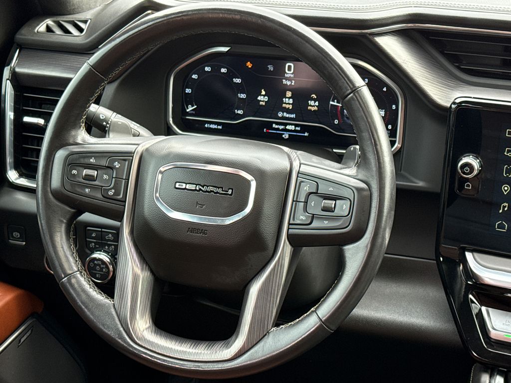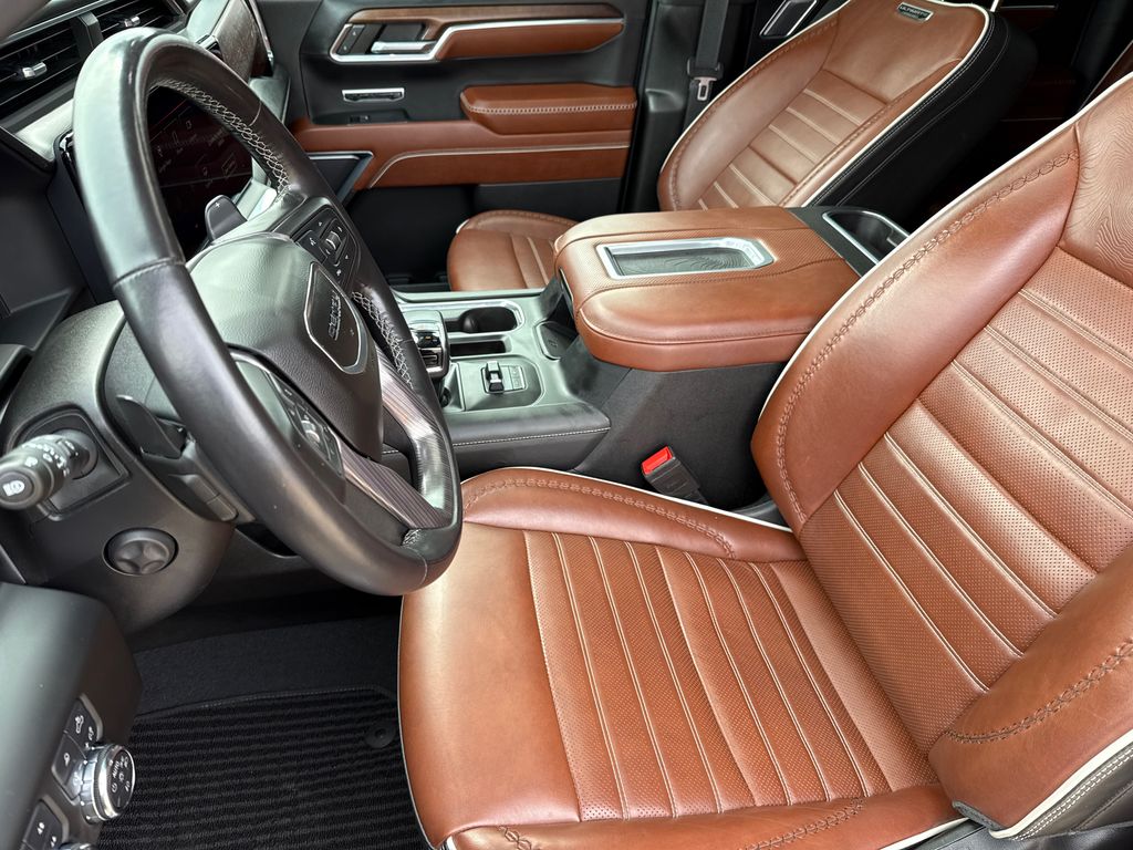 Clean CARFAX. 2022 GMC Sierra 1500 Denali Ultimate 4D Crew Cab Titanium Rush Metallic 3.0L I6 10-Speed Automatic 4WD This vehicle comes well equipped with Preferred Equipment Group 5SB (120-Volt Bed Mounted Power Outlet, 120-Volt Instrument Panel Power Outlet, 2 Charge/Data USB Ports Inside Center Console, 2 Type-C Charge-Only Rear USB Ports, 2 USB Ports, Auto-Locking Rear Differential, Bed View Camera, Bose Premium Series w/12-Speaker System, Carbon Fiber Composite Bed, Chrome Recovery Hooks, Color-Keyed Carpeting Floor Covering, Compass, Deep-Tinted Glass, Electric Rear-Window Defogger, Electrical Steering Column Lock, Floor-Mounted Center Console, Front Rainsensing Wipers, GMC Connected Access Capable, HD Surround Vision, Heated 2nd Row Outboard Seats, Heated Driver & Front Outboard Passenger Seating, Heavy-Duty Air Filter, Hill Descent Control, Hitch Guidance w/Hitch View, In-Vehicle Trailering App, Integrated Trailer Brake Controller, Keyless Open & Start, LED Cargo Area Lighting, Multicolor 15" Diagonal Head-Up Display, MultiPro Audio System by Kicker (LPO), OnStar & GMC Connected Services Capable, Perimeter Lighting, Power Door Locks, Power Front Passenger Windows w/Express Up/Down, Power Front Windows w/Driver Express Up/Down, Power Rake & Telescoping Steering Column, Power Rear Windows w/Express Down, Power Sliding Rear Window w/Rear Defogger, Power Sunroof, Push Button Start, Rear Cross Traffic Braking, Rear Pedestrian Detection, Remote Vehicle Starter System, SiriusXM w/360L, Steering Wheel Audio Controls, Theft Deterrent System (Unauthorized Entry), Trailer Camera Provisions, Trailer Side Blind Zone Alert, Trailer Tire Pressure Monitor System, Ultrasonic Front & Rear Park Assist, Universal Home Remote, Vader Chrome Header w/Signature Denali Grille, Ventilated Driver & Front Passenger Seats, Wi-Fi Hotspot Capable, Wireless Charging, and Wireless Phone Projection), Trailering Package (Hitch Guidance), Sierra 1500 Denali Ultimate, 4D Crew Cab, 3.0L I6, 4WD, Titanium Rush Metallic, Alpine Umber Leather, and Navigation System Preferred Equipment Group 5SB (120-Volt Bed Mounted Power Outlet, 120-Volt Instrument Panel Power Outlet, 2 Charge/Data USB Ports Inside Center Console, 2 Type-C Charge-Only Rear USB Ports, 2 USB Ports, Auto-Locking Rear Differential, Bed View Camera, Bose Premium Series w/12-Speaker System, Carbon Fiber Composite Bed, Chrome Recovery Hooks, Color-Keyed Carpeting Floor Covering, Compass, Deep-Tinted Glass, Electric Rear-Window Defogger, Electrical Steering Column Lock, Floor-Mounted Center Console, Front Rainsensing Wipers, GMC Connected Access Capable, HD Surround Vision, Heated 2nd Row Outboard Seats, Heated Driver & Front Outboard Passenger Seating, Heavy-Duty Air Filter, Hill Descent Control, Hitch Guidance w/Hitch View, In-Vehicle Trailering App, Integrated Trailer Brake Controller, Keyless Open & Start, LED Cargo Area Lighting, Multicolor 15" Diagonal Head-Up Display, MultiPro Audio System by Kicker (LPO), OnStar & GMC Connected Services Capable, Perimeter Lighting, Power Door Locks, Power Front Passenger Windows w/Express Up/Down, Power Front Windows w/Driver Express Up/Down, Power Rake & Telescoping Steering Column, Power Rear Windows w/Express Down, Power Sliding Rear Window w/Rear Defogger, Power Sunroof, Push Button Start, Rear Cross Traffic Braking, Rear Pedestrian Detection, Remote Vehicle Starter System, SiriusXM w/360L, Steering Wheel Audio Controls, Theft Deterrent System (Unauthorized Entry), Trailer Camera Provisions, Trailer Side Blind Zone Alert, Trailer Tire Pressure Monitor System, Ultrasonic Front & Rear Park Assist, Universal Home Remote, Vader Chrome Header w/Signature Denali Grille, Ventilated Driver & Front Passenger Seats, Wi-Fi Hotspot Capable, Wireless Charging, and Wireless Phone Projection), Trailering Package (Hitch Guidance), Sierra 1500 Denali Ultimate, 4D Crew Cab, 3.0L I6, 4WD, Titanium Rush Metallic, Alpine Umber Leather, Navigation System, 12 Speakers, 16-Way