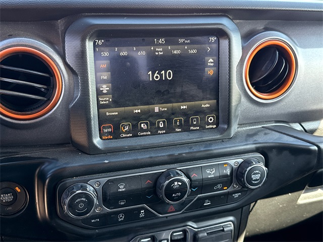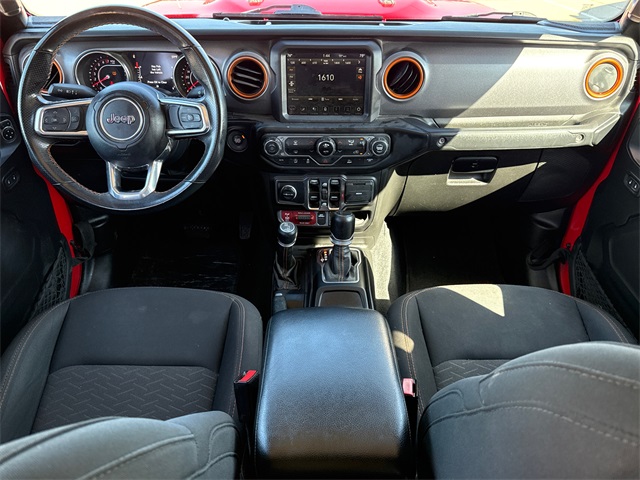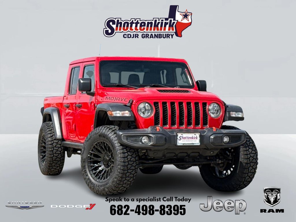 2022 Jeep Gladiator Mojave 4D Crew Cab Firecracker Red Clearcoat 3.6L V6 24V VVT 8-Speed Automatic 4WD This vehicle comes well equipped with Quick Order Package 24D, Gladiator Mojave, 4D Crew Cab, 3.6L V6 24V VVT, 4WD, Firecracker Red Clearcoat, and Black Cloth Quick Order Package 24D, Gladiator Mojave, 4D Crew Cab, 3.6L V6 24V VVT, 4WD, Firecracker Red Clearcoat, Black Cloth, 4-Wheel Disc Brakes, 4.10 Rear Axle Ratio, 9 Speakers, 97 MPH Vehicle Max Speed Calibration, ABS brakes, Air Conditioning, Alloy wheels, AM/FM radio: SiriusXM, Apple CarPlay/Android Auto, Auto-dimming Rear-View mirror, Automatic temperature control, Body Color 3-Piece Hard Top, Brake assist, Compass, Delay-off headlights, Driver door bin, Driver vanity mirror, Dual front impact airbags, Dual front side impact airbags, Electronic Stability Control, Emergency communication system: SiriusXM Guardian, Freedom Panel Storage Bag, Front anti-roll bar, Front Bucket Seats, Front Center Armrest w/Storage, Front dual zone A/C, Front fog lights, Front License Plate Bracket, Front reading lights, Fully automatic headlights, Garage door transmitter, Heated door mirrors, Heavy Duty Suspension w/Gas Shocks, Illuminated entry, Integrated roll-over protection, Leather steering wheel, Low tire pressure warning, Navigation System, No Soft Top, Occupant sensing airbag, Outside temperature display, Panic alarm, ParkView Rear Back-Up Camera, Passenger door bin, Passenger vanity mirror, Power door mirrors, Power steering, Power windows, Premium Cloth Seats w/Sport Bolsters, Radio data system, Radio: Uconnect 4C Nav w/8.4" Display, Rear anti-roll bar, Rear reading lights, Rear Sliding Window, Rear Window Defroster, Remote keyless entry, Security system, Speed control, Split folding rear seat, Steering wheel mounted audio controls, Tachometer, Telescoping steering wheel, Tilt steering wheel, Traction control, Trip computer, Variably intermittent wipers, Voltmeter, and Wheels: 17" x 7.5" Low Gloss Black Aluminum. For more information contact one of our Internet Managers at 682-498-8390 to set up your VIP Test Drive.. At SHOTTENKIRK CDJR Granbury located in Granbury, TX all of our Pre-Owned vehicles go through a 100 point plus inspection. The oil and filter are changed, complete brake inspection, tire rotation, safety inspection and all fluid levels are topped off. If we find anything that needs attention we address the issue and fix it. So buy with confidence that you are getting a quality vehicle. We can do a complete walk around for you over the phone. Trade ins are always welcomed. We offer financing from over 25 finance and credit unions locally and nationally. SHOTTENKIRK CDJR 4970 E HWY 377 GRANBURY TEXAS 76049.
