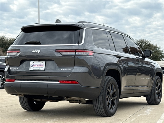 Clean CARFAX. CARFAX One-Owner. 2022 Jeep Grand Cherokee L Limited 4D Sport Utility Baltic Gray Metallic Clearcoat 3.6L V6 24V VVT 8-Speed Automatic 4WD This vehicle comes well equipped with Quick Order Package 22E, Grand Cherokee L Limited, 4D Sport Utility, 3.6L V6 24V VVT, 4WD, Baltic Gray Metallic Clearcoat, Global Black Leather, and GPS Navigation Quick Order Package 22E, Grand Cherokee L Limited, 4D Sport Utility, 3.6L V6 24V VVT, 4WD, Baltic Gray Metallic Clearcoat, Global Black Leather, GPS Navigation, 10.1" Touchscreen Display, 3.45 Rear Axle Ratio, 3rd row seats: split-bench, 4-Wheel Disc Brakes, 4G LTE Wi-Fi Hot Spot, 506 Watt Amplifier, 6 Speakers, 9 Amplified Speakers w/Subwoofer, ABS brakes, Active Noise Control System, Air Conditioning, All Radio Equipped Vehicles, Alloy wheels, AM/FM radio: SiriusXM with 360L, Anti-whiplash front head restraints, Apple CarPlay, Audio memory, Auto High-beam Headlights, Automatic temperature control, Brake assist, Bumpers: body-color, Capri Leather Seats, Compass, Connected Travel & Traffic Services, Connectivity - US/Canada, Delay-off headlights, Disassociated Touchscreen Display, Driver door bin, Driver vanity mirror, Dual front impact airbags, Dual front side impact airbags, Dual-Pane Panoramic Sunroof, Electronic Stability Control, Emergency communication system, For Details, Visit DriveUconnect.com, For More Info, Call 800-643-2112, Four wheel independent suspension, Front anti-roll bar, Front Bucket Seats, Front Center Armrest w/Storage, Front dual zone A/C, Front fog lights, Front reading lights, Fully automatic headlights, Garage door transmitter, Global Telematics Box Module (TBM), Google Android Auto, GPS Antenna Input, HD Radio, Heated door mirrors, Heated front seats, Heated rear seats, Heated steering wheel, Illuminated entry, Integrated Center Stack Radio, Integrated Voice Command w/Bluetooth, Interior Rear Facing Camera, Knee airbag, Leather steering wheel, Low tire pressure warning, Manual Fold Seatbacks, Memory seat, Normal Duty Suspension, Occupant sensing airbag, Outside temperature display, Overhead airbag, Overhead console, Panic alarm, ParkView Rear Back-Up Camera, Passenger door bin, Passenger vanity mirror, Power door mirrors, Power driver seat, Power Liftgate, Power passenger seat, Power steering, Power windows, Radio data system, Radio: Uconnect 5 Nav w/10.1" Display, Radio: Uconnect 5 w/8.4" Display, Rear air conditioning, Rear anti-roll bar, Rear reading lights, Rear window defroster, Rear window wiper, Reclining 3rd row seat, Remote keyless entry, Security system, SiriusXM Radio Service, SiriusXM Satellite Radio, SiriusXM w/360L, Speed control, Speed-Sensitive Wipers, Split folding rear seat, Spoiler, Steering wheel mounted audio controls, Tachometer, Telescoping steering wheel, Tilt steering wheel, Traction control, Trip computer, Turn signal indicator mirrors, USB Host Flip, Variably intermittent wipers, Voltmeter, and Wheels: 18" x 8.0" Fully Painted Aluminum 2. For more information contact one of our Internet Managers at 682-498-8390 to set up your VIP Test Drive.. At SHOTTENKIRK CDJR Granbury located in Granbury, TX all of our Pre-Owned vehicles go through a 100 point plus inspection. The oil and filter are changed, complete brake inspection, tire rotation, safety inspection and all fluid levels are topped off. If we find anything that needs attention we address the issue and fix it. So buy with confidence that you are getting a quality vehicle. We can do a complete walk around for you over the phone. Trade ins are always welcomed. We offer financing from over 25 finance and credit unions locally and nationally. SHOTTENKIRK CDJR 4970 E HWY 377 GRANBURY TEXAS 76049.
