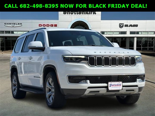 CARFAX One-Owner. 2022 Jeep Wagoneer Series II 4D Sport Utility Bright White Clearcoat 5.7L V8 8-Speed Automatic RWD This vehicle comes well equipped with Quick Order Package 22J, Wagoneer Series II, 4D Sport Utility, 5.7L V8, RWD, Bright White Clearcoat, Black Leather, and Navigation System Quick Order Package 22J, Wagoneer Series II, 4D Sport Utility, 5.7L V8, RWD, Bright White Clearcoat, Black Leather, Navigation System, 10 Speakers, 3.21 Rear Axle Ratio, 3rd row seats: bench, 4-Wheel Disc Brakes, ABS brakes, Adjustable pedals, Air Conditioning, Alloy wheels, AM/FM radio: SiriusXM with 360L, Anti-whiplash front head restraints, Audio memory, Auto-dimming door mirrors, Auto-dimming Rear-View mirror, Auto-leveling suspension, Automatic temperature control, Brake assist, Bumpers: body-color, Compass, Delay-off headlights, Driver door bin, Driver vanity mirror, Driver's Seat Mounted Armrest, Dual front impact airbags, Dual front side impact airbags, Electronic Stability Control, Exterior Parking Camera Rear, Four wheel independent suspension, Front anti-roll bar, Front Bucket Seats, Front Center Armrest w/Storage, Front dual zone A/C, Front fog lights, Front Passenger Interactive Display, Front reading lights, Fully automatic headlights, Garage door transmitter, Genuine wood console insert, Genuine wood dashboard insert, Genuine wood door panel insert, Heated door mirrors, Heated front seats, Heated steering wheel, Illuminated entry, Knee airbag, Leather Trimmed Bucket Seats, Low tire pressure warning, Memory seat, Normal Duty Suspension, Occupant sensing airbag, Outside temperature display, Overhead airbag, Overhead console, Panic alarm, Passenger door bin, Passenger seat mounted armrest, Passenger vanity mirror, Pedal memory, Power adjustable front head restraints, Power door mirrors, Power driver seat, Power Liftgate, Power passenger seat, Power steering, Power windows, Radio data system, Radio: Uconnect 5 Nav w/10.1" Display, Rain sensing wipers, Rear air conditioning, Rear anti-roll bar, Rear dual zone A/C, Rear reading lights, Rear seat center armrest, Rear window defroster, Rear window wiper, Reclining 3rd row seat, Remote keyless entry, Security system, Speed control, Speed-sensing steering, Speed-Sensitive Wipers, Split folding rear seat, Steering wheel memory, Steering wheel mounted audio controls, Tachometer, Telescoping steering wheel, Tilt steering wheel, Traction control, Trip computer, Turn signal indicator mirrors, Variably intermittent wipers, Ventilated front seats, Voltmeter, and Wheels: 20" x 9.0" Aluminum Base Finish. For more information contact one of our Internet Managers at 682-498-8390 to set up your VIP Test Drive.. At SHOTTENKIRK CDJR Granbury located in Granbury, TX all of our Pre-Owned vehicles go through a 100 point plus inspection. The oil and filter are changed, complete brake inspection, tire rotation, safety inspection and all fluid levels are topped off. If we find anything that needs attention we address the issue and fix it. So buy with confidence that you are getting a quality vehicle. We can do a complete walk around for you over the phone. Trade ins are always welcomed. We offer financing from over 25 finance and credit unions locally and nationally. SHOTTENKIRK CDJR 4970 E HWY 377 GRANBURY TEXAS 76049.