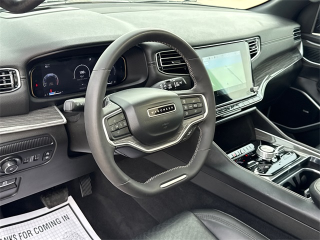 APPLE CAR PLAY, ANDROID AUTO, BLUETOOTH, LEATHER INTERIOR, ALLOY WHEELS, BACK UP CAMERA, BLIND SPOT MONITOR, LANE DEPARTURE, POWER DRIVER' SEAT, POWER PASSENGER SEAT, HEATED SEATS, COOLED SEATS, LCD DISPLAY CREEN, 3RD ROW SEAT, Wagoneer Series III, 4D Sport Utility, 4WD, 19 Speaker McIntosh Audio System, 3 Panel Sunroof, 7-Passenger Seating, Adjustable Roof Rail Crossbars, Cargo Cover, Flexible Seating Group, Floor Console w/Cupholder, Luxury Front & Rear Floor Mats, Navigation System, Power Deployable Running Boards, Power Liftgate, Power Tip/Slide Recline 2nd Row Buckets, Premium Group I (DISC), Quick Order Package 22N, Reversible Carpet/Vinyl Cargo Mat, Wheels: 22" x 9.0" Premium 3 Aluminum (DISC).