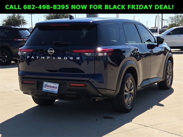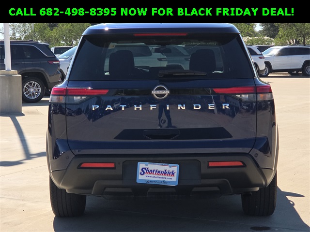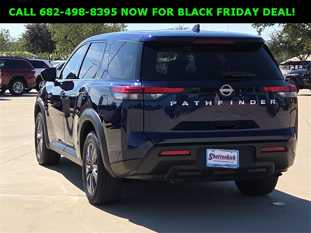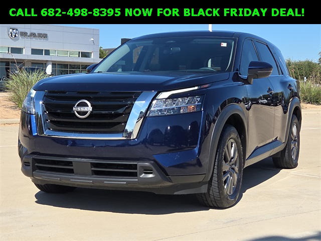 Clean CARFAX. CARFAX One-Owner. 2022 Nissan Pathfinder S 4D Sport Utility Deep Ocean Blue Pearl V6 9-Speed Automatic FWD This vehicle comes well equipped with Pathfinder S, 4D Sport Utility, V6, 9-Speed Automatic, FWD, Deep Ocean Blue Pearl, and Charcoal Cloth Pathfinder S, 4D Sport Utility, V6, 9-Speed Automatic, FWD, Deep Ocean Blue Pearl, Charcoal Cloth, 18" Painted Alloy Wheels, 3rd row seats: bench, 4-Wheel Disc Brakes, 6 Speakers, ABS brakes, Air Conditioning, Alloy wheels, AM/FM radio: SiriusXM, Auto High-beam Headlights, Automatic temperature control, Axle Ratio: TBD, Bench Seat Carpeted Floor Mats (Set of 4), Blind Spot Warning, Brake assist, Bumpers: body-color, Cloth Seating Surfaces, Delay-off headlights, Driver door bin, Driver vanity mirror, Dual front impact airbags, Dual front side impact airbags, Electronic Stability Control, Four wheel independent suspension, Front anti-roll bar, Front Bucket Seats, Front Center Armrest, Front dual zone A/C, Front reading lights, Fully automatic headlights, Illuminated entry, Knee airbag, Low tire pressure warning, NissanConnect featuring Apple CarPlay and Android Auto, Occupant sensing airbag, Outside temperature display, Overhead airbag, Overhead console, Panic alarm, Passenger door bin, Passenger vanity mirror, Power door mirrors, Power steering, Power windows, Radio data system, Radio: AM/FM Audio System w/NissanConnect, Rear air conditioning, Rear anti-roll bar, Rear Parking Sensors, Rear reading lights, Rear seat center armrest, Rear side impact airbag, Rear window defroster, Rear window wiper, Reclining 3rd row seat, Remote keyless entry, Security system, Speed control, Speed-sensing steering, Split folding rear seat, Spoiler, Steering wheel mounted audio controls, Tachometer, Telescoping steering wheel, Tilt steering wheel, Traction control, Trip computer, Turn signal indicator mirrors, and Variably intermittent wipers. For more information contact one of our Internet Managers at 682-498-8390 to set up your VIP Test Drive.. At SHOTTENKIRK CDJR Granbury located in Granbury, TX all of our Pre-Owned vehicles go through a 100 point plus inspection. The oil and filter are changed, complete brake inspection, tire rotation, safety inspection and all fluid levels are topped off. If we find anything that needs attention we address the issue and fix it. So buy with confidence that you are getting a quality vehicle. We can do a complete walk around for you over the phone. Trade ins are always welcomed. We offer financing from over 25 finance and credit unions locally and nationally. SHOTTENKIRK CDJR 4970 E HWY 377 GRANBURY TEXAS 76049.
