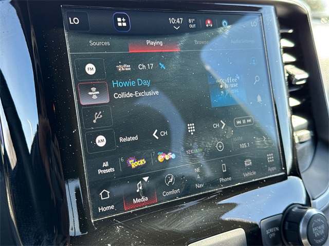 Clean CARFAX. CARFAX One-Owner. 2022 Ram 1500 Big Horn/Lone Star 4D Crew Cab Billet Silver Metallic Clearcoat 3.6L V6 24V VVT 8-Speed Automatic 4WD This vehicle comes well equipped with Big Horn Level An Equipment Group (DISC) (2nd Row In Floor Storage Bins, 4G LTE Wi-Fi Hot Spot, 8.4" Touchscreen Display, Apple CarPlay, Auto-Dimming Exterior Driver Mirror, Auto-Dimming Rear-View Mirror, Black Premium Power Mirrors (GUL), Bluetooth Handsfree Phone & Audio, Class IV Receiver Hitch, Cluster 3.5" TFT Color Display, Connectivity - US/Canada, Exterior Mirrors Courtesy Lamps, Exterior Mirrors w/Supplemental Signals, Foam Bottle Insert (Door Trim Panel), For More Info, Call 800-643-2112, Glove Box Lamp, Google Android Auto, Integrated Center Stack Radio, Power 2-Way Driver Lumbar Adjust, Power 8-Way Driver Seat, Power Adjustable Pedals, Radio: Uconnect 5 W w/8.4" Display, Rear Dome w/On/Off Switch Lamp, Rear Power Sliding Window, Rear Underseat Compartment Storage, Rear Window Defroster, SiriusXM Radio Service, SiriusXM Satellite Radio, Sun Visors w/Illuminated Vanity Mirrors, Universal Garage Door Opener, and USB Host Flip), Quick Order Package 23Z Big Horn (Big Horn Badge), 1500 Big Horn/Lone Star, 4D Crew Cab, 3.6L V6 24V VVT, 4WD, Billet Silver Metallic Clearcoat, and Black Cloth Big Horn Level An Equipment Group (DISC) (2nd Row In Floor Storage Bins, 4G LTE Wi-Fi Hot Spot, 8.4" Touchscreen Display, Apple CarPlay, Auto-Dimming Exterior Driver Mirror, Auto-Dimming Rear-View Mirror, Black Premium Power Mirrors (GUL), Bluetooth Handsfree Phone & Audio, Class IV Receiver Hitch, Cluster 3.5" TFT Color Display, Connectivity - US/Canada, Exterior Mirrors Courtesy Lamps, Exterior Mirrors w/Supplemental Signals, Foam Bottle Insert (Door Trim Panel), For More Info, Call 800-643-2112, Glove Box Lamp, Google Android Auto, Integrated Center Stack Radio, Power 2-Way Driver Lumbar Adjust, Power 8-Way Driver Seat, Power Adjustable Pedals, Radio: Uconnect 5 W w/8.4" Display, Rear Dome w/On/Off Switch Lamp, Rear Power Sliding Window, Rear Underseat Compartment Storage, Rear Window Defroster, SiriusXM Radio Service, SiriusXM Satellite Radio, Sun Visors w/Illuminated Vanity Mirrors, Universal Garage Door Opener, and USB Host Flip), Quick Order Package 23Z Big Horn (Big Horn Badge), 1500 Big Horn/Lone Star, 4D Crew Cab, 3.6L V6 24V VVT, 4WD, Billet Silver Metallic Clearcoat, Black Cloth, 3 Rear Seat Head Restraints, 3.21 Rear Axle Ratio, 4 Way Front Headrests, 4-Wheel Disc Brakes, 48V Belt Starter Generator, 6 Speakers, ABS brakes, Air Conditioning, Air Conditioning ATC w/Dual Zone Control, All R1 High Radios, All Radio Equipped Vehicles, Alloy wheels, AM/FM radio, Anti-Spin Differential Rear Axle, Black Exterior Mirrors, Brake assist, Bumpers: chrome, Cloth Bench Seat, Compass, Connected Travel & Traffic Services, Convex Wide-Angle Mirror Insert, Delay-off headlights, Disassociated Touchscreen Display, Driver door bin, Dual front impact airbags, Dual front side impact airbags, Electronic Stability Control, Emergency communication system: SiriusXM Guardian, For Details, Visit DriveUconnect.com, Front anti-roll bar, Front Center Armrest w/Storage, Front fog lights, Front License Plate Bracket, Front reading lights, Front Seat Back Map Pockets, Front wheel independent suspension, Fully automatic headlights, Global Telematics Box Module (TBM), GPS Antenna Input, GPS Navigation, HD Radio, Heated door mirrors, Heavy-Duty Engine Cooling, Illuminated entry, Integrated Voice Command w/Bluetooth, Leather steering wheel, Low tire pressure warning, Manufacturer's Statement of Origin, Occupant sensing airbag, Outside temperature display, Overhead airbag, Overhead console, Panic alarm, ParkView Rear Back-Up Camera, Passenger door bin, Passenger vanity mirror, Power door mirrors, Power steering, Power windows, Radio data system, Radio: Uconnect 3 w/5" Display, Radio: Uconnect 5 Nav w/8.4" Display, Rear 60/40 Folding Seat, Rear anti-roll bar, Rear seat center armre