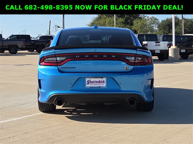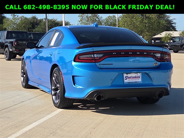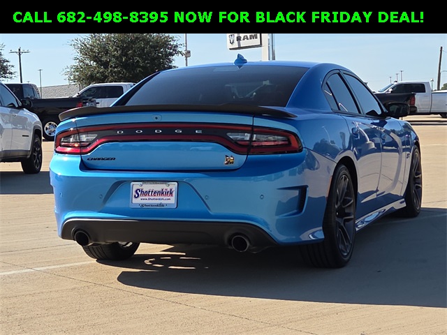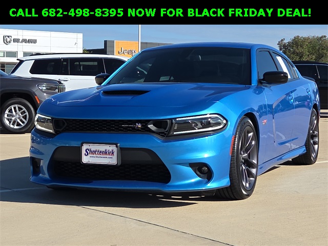 Certified. Clean CARFAX. CARFAX One-Owner. 2023 Dodge Charger R/T Scat Pack 4D Sedan B5 Blue Pearlcoat SRT HEMI 6.4L V8 MDS 8-Speed Automatic RWD This vehicle comes well equipped with Carbon/Suede Interior Package (Real Carbon Fiber Interior Accents and Suede Headliner), harman/kardon Audio Group (19 harman/kardon GreenEdge Speakers, harman/kardon GreenEdge Amp, and Surround Sound), Navigation & Travel Group (1-Yr SiriusXM Guardian Trial, 2-Piece Shark Fin Antenna, 4G LTE Wi-Fi Hot Spot, 5-Year SiriusXM Traffic Service, 5-Year SiriusXM Travel Link Service, 8.4" Touchscreen Display, Apple CarPlay, Compass Gauge, For Details, Visit DriveUconnect.com, Google Android Auto, GPS Antenna Input, GPS Navigation, HD Radio, Integrated Center Stack Radio, Integrated Voice Command w/Bluetooth, Media Hub (2 USB, AUX), Radio: Uconnect 4C Nav w/8.4" Display, SiriusXM Traffic Plus, SiriusXM Travel Link, and USB Host Flip), Plus Group (Auto Adjust In Reverse Exterior Mirrors, Auto-Dimming Exterior Driver Mirror, Black-Edged Premium Floormats, Blind Spot & Cross Path Detection, Blind Spot Memory/Power/Heat Mirror, Driver & Passenger Lower LED Lamps, Exterior Mirrors Courtesy Lamps, Exterior Mirrors w/Heating Element, Front Overhead LED Lighting, Heated Front Seats, Power 2-Way Driver Lumbar Adjust, Power 2-Way Passenger Lumbar Adjust, Power Front Driver/Passenger Seats, Power Tilt/Telescope Steering Column, Premium-Stitched Dash Panel, Radio/Driver Seat/Mirrors Memory, Rear Armrest w/Cupholder Seat, Scat Pack Logo Nappa/Alcantara Seat, and Ventilated Front Seats), Quick Order Package 21W Scat Pack, Charger R/T Scat Pack, SRT HEMI 6.4L V8 MDS, B5 Blue Pearlcoat, 392 Fender Badge, Alloy wheels, and Wheels: 20" x 9" Lo Gloss Granite Crystal Carbon/Suede Interior Package (Real Carbon Fiber Interior Accents and Suede Headliner), harman/kardon Audio Group (19 harman/kardon GreenEdge Speakers, harman/kardon GreenEdge Amp, and Surround Sound), Navigation & Travel Group (1-Yr SiriusXM Guardian Trial, 2-Piece Shark Fin Antenna, 4G LTE Wi-Fi Hot Spot, 5-Year SiriusXM Traffic Service, 5-Year SiriusXM Travel Link Service, 8.4" Touchscreen Display, Apple CarPlay, Compass Gauge, For Details, Visit DriveUconnect.com, Google Android Auto, GPS Antenna Input, GPS Navigation, HD Radio, Integrated Center Stack Radio, Integrated Voice Command w/Bluetooth, Media Hub (2 USB, AUX), Radio: Uconnect 4C Nav w/8.4" Display, SiriusXM Traffic Plus, SiriusXM Travel Link, and USB Host Flip), Plus Group (Auto Adjust In Reverse Exterior Mirrors, Auto-Dimming Exterior Driver Mirror, Black-Edged Premium Floormats, Blind Spot & Cross Path Detection, Blind Spot Memory/Power/Heat Mirror, Driver & Passenger Lower LED Lamps, Exterior Mirrors Courtesy Lamps, Exterior Mirrors w/Heating Element, Front Overhead LED Lighting, Heated Front Seats, Power 2-Way Driver Lumbar Adjust, Power 2-Way Passenger Lumbar Adjust, Power Front Driver/Passenger Seats, Power Tilt/Telescope Steering Column, Premium-Stitched Dash Panel, Radio/Driver Seat/Mirrors Memory, Rear Armrest w/Cupholder Seat, Scat Pack Logo Nappa/Alcantara Seat, and Ventilated Front Seats), Quick Order Package 21W Scat Pack, Charger R/T Scat Pack, SRT HEMI 6.4L V8 MDS, B5 Blue Pearlcoat, 392 Fender Badge, Alloy wheels, Wheels: 20" x 9" Lo Gloss Granite Crystal, 4-Wheel Disc Brakes, 6 Speakers, ABS brakes, Air Conditioning, AM/FM radio: SiriusXM, Anti-whiplash front head restraints, Apple CarPlay/Android Auto, Auto-dimming Rear-View mirror, Automatic temperature control, Brake assist, Bumpers: body-color, Cloth Performance Seats w/Heat, Compass, Delay-off headlights, Driver door bin, Driver vanity mirror, Dual front impact airbags, Dual front side impact airbags, Electronic Stability Control, Emergency communication system: SiriusXM Guardian, Four wheel independent suspension, Front anti-roll bar, Front Bucket Seats, Front Center Armrest, Front dual zone A/C, Front fog lights, Front License Plate Bracket, Front reading lights, Fully autom