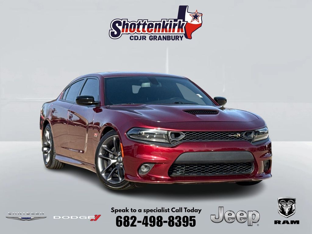 Clean CARFAX. CARFAX One-Owner. 2023 Dodge Charger R/T Scat Pack 4D Sedan Octane Red Pearlcoat SRT HEMI 6.4L V8 MDS 8-Speed Automatic RWD This vehicle comes well equipped with Quick Order Package 21W Scat Pack, Charger R/T Scat Pack, 4D Sedan, SRT HEMI 6.4L V8 MDS, RWD, Octane Red Pearlcoat, and Black Cloth Quick Order Package 21W Scat Pack, Charger R/T Scat Pack, 4D Sedan, SRT HEMI 6.4L V8 MDS, RWD, Octane Red Pearlcoat, Black Cloth, 1-Yr SiriusXM Guardian Trial, 2-Piece Shark Fin Antenna, 4-Wheel Disc Brakes, 4G LTE Wi-Fi Hot Spot, 6 Speakers, 8.4" Touchscreen Display, ABS brakes, Air Conditioning, Alloy wheels, AM/FM radio: SiriusXM, Anti-whiplash front head restraints, Apple CarPlay, Apple CarPlay/Android Auto, Auto-dimming Rear-View mirror, Automatic temperature control, Brake assist, Bumpers: body-color, Cloth Performance Seats w/Heat, Compass, Delay-off headlights, Driver door bin, Driver vanity mirror, Dual front impact airbags, Dual front side impact airbags, Electronic Stability Control, Emergency communication system: SiriusXM Guardian, For Details, Visit DriveUconnect.com, Four wheel independent suspension, Front anti-roll bar, Front Bucket Seats, Front Center Armrest, Front dual zone A/C, Front fog lights, Front License Plate Bracket, Front reading lights, Fully automatic headlights, Garage door transmitter: HomeLink, Google Android Auto, GPS Antenna Input, HD Radio, Heated door mirrors, Heated Front Seats, Heated front seats, Heated steering wheel, Illuminated entry, Integrated Center Stack Radio, Integrated Voice Command w/Bluetooth, Knee airbag, Leather Shift Knob, Low tire pressure warning, Media Hub (2 USB, AUX), Occupant sensing airbag, Outside temperature display, Overhead airbag, Overhead console, Panic alarm, ParkView Rear Back-Up Camera, Passenger door bin, Passenger vanity mirror, Power 2-Way Driver Lumbar Adjust, Power door mirrors, Power driver seat, Power steering, Power Sunroof, Power windows, Radio: Uconnect 4C w/8.4" Display, Rear anti-roll bar, Rear Armrest w/Cupholder Seat, Rear reading lights, Rear seat center armrest, Rear window defroster, Remote keyless entry, Security system, Speed control, Speed-Sensitive Wipers, Split folding rear seat, Spoiler, Sport steering wheel, Steering wheel mounted audio controls, Tachometer, Telescoping steering wheel, Tilt steering wheel, Traction control, Trip computer, USB Host Flip, Variably intermittent wipers, and Wheels: 20" x 9" Lo Gloss Granite CrystaL. For more information contact one of our Internet Managers at 682-498-8390 to set up your VIP Test Drive.. At SHOTTENKIRK CDJR Granbury located in Granbury, TX all of our Pre-Owned vehicles go through a 100 point plus inspection. The oil and filter are changed, complete brake inspection, tire rotation, safety inspection and all fluid levels are topped off. If we find anything that needs attention we address the issue and fix it. So buy with confidence that you are getting a quality vehicle. We can do a complete walk around for you over the phone. Trade ins are always welcomed. We offer financing from over 25 finance and credit unions locally and nationally. SHOTTENKIRK CDJR 4970 E HWY 377 GRANBURY TEXAS 76049.
