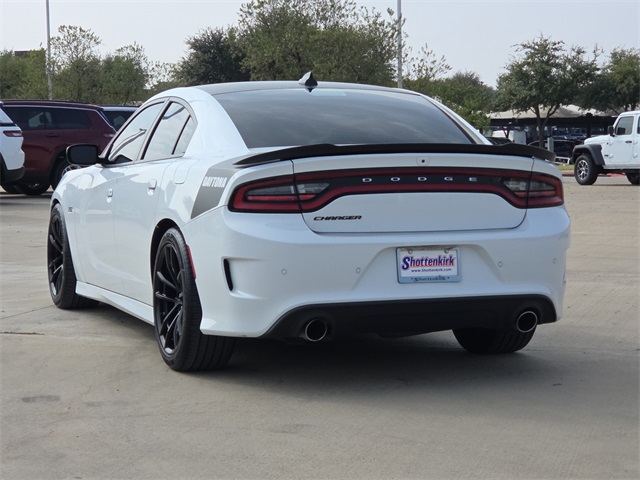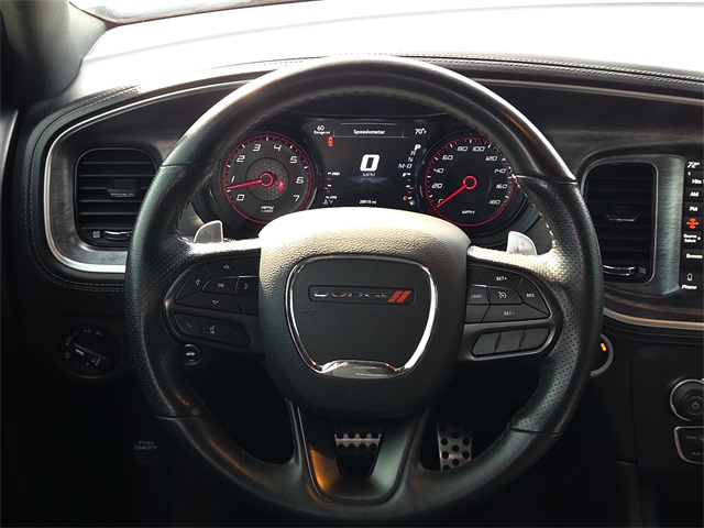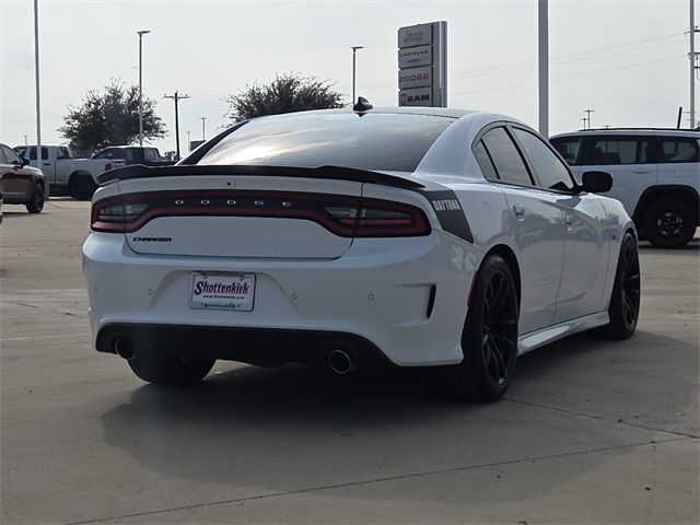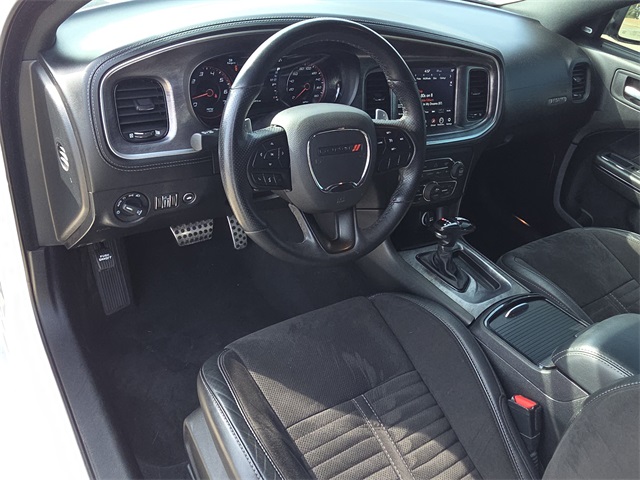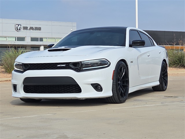 Clean CARFAX. 2023 Dodge Charger R/T Scat Pack 4D Sedan White Knuckle Clearcoat SRT HEMI 6.4L V8 MDS 8-Speed Automatic RWD This vehicle comes well equipped with Daytona Edition Group (392 Fender Decal, Auto Adjust In Reverse Exterior Mirrors, Auto-Dimming Exterior Driver Mirror, Black-Edged Premium Floormats, Blind Spot & Cross Path Detection, Blind Spot Memory/Power/Heat Mirror, Carbonite Interior Accents, Daytona Decals Hood/Roof/Trunk, Daytona Front Grille Badge, Daytona I/P Badge, Daytona Logo Nappa/Alcantara Seat, Driver & Passenger Lower LED Lamps, Exterior Mirrors Courtesy Lamps, Exterior Mirrors w/Heating Element, Front Overhead LED Lighting, Gloss Black I/P Cluster Trim Rings, Heated Front Seats, MOPAR Cold Air Intake System, Power 2-Way Driver Lumbar Adjust, Power 2-Way Passenger Lumbar Adjust, Power Front Driver/Passenger Seats, Power Tilt/Telescope Steering Column, Premium-Stitched Dash Panel, Radio/Driver Seat/Mirrors Memory, Rear Armrest w/Cupholder Seat, Rhombi 2-Pc Wheel Center Cap, Ventilated Front Seats, and Wheels: 20" x 9.5" Low-Gloss Black Knurled), Quick Order Package 21W Scat Pack, Technology Group (Adaptive Cruise Control w/Stop, Advanced Brake Assist, Auto High Beam Headlamp Control, Full Speed FWD Collision Warn Plus, Lane Departure Warning Plus, and Rain Sensitive Windshield Wipers), Charger R/T Scat Pack, 4D Sedan, SRT HEMI 6.4L V8 MDS, RWD, White Knuckle Clearcoat, Black Artificial Leather, and GPS Navigation Daytona Edition Group (392 Fender Decal, Auto Adjust In Reverse Exterior Mirrors, Auto-Dimming Exterior Driver Mirror, Black-Edged Premium Floormats, Blind Spot & Cross Path Detection, Blind Spot Memory/Power/Heat Mirror, Carbonite Interior Accents, Daytona Decals Hood/Roof/Trunk, Daytona Front Grille Badge, Daytona I/P Badge, Daytona Logo Nappa/Alcantara Seat, Driver & Passenger Lower LED Lamps, Exterior Mirrors Courtesy Lamps, Exterior Mirrors w/Heating Element, Front Overhead LED Lighting, Gloss Black I/P Cluster Trim Rings, Heated Front Seats, MOPAR Cold Air Intake System, Power 2-Way Driver Lumbar Adjust, Power 2-Way Passenger Lumbar Adjust, Power Front Driver/Passenger Seats, Power Tilt/Telescope Steering Column, Premium-Stitched Dash Panel, Radio/Driver Seat/Mirrors Memory, Rear Armrest w/Cupholder Seat, Rhombi 2-Pc Wheel Center Cap, Ventilated Front Seats, and Wheels: 20" x 9.5" Low-Gloss Black Knurled), Quick Order Package 21W Scat Pack, Technology Group (Adaptive Cruise Control w/Stop, Advanced Brake Assist, Auto High Beam Headlamp Control, Full Speed FWD Collision Warn Plus, Lane Departure Warning Plus, and Rain Sensitive Windshield Wipers), Charger R/T Scat Pack, 4D Sedan, SRT HEMI 6.4L V8 MDS, RWD, White Knuckle Clearcoat, Black Artificial Leather, GPS Navigation, 1-Yr SiriusXM Guardian Trial, 2-Piece Shark Fin Antenna, 4-Wheel Disc Brakes, 4G LTE Wi-Fi Hot Spot, 6 Speakers, 8.4" Touchscreen Display, ABS brakes, Air Conditioning, Alloy wheels, AM/FM radio: SiriusXM, Anti-whiplash front head restraints, Apple CarPlay, Apple CarPlay/Android Auto, Auto-dimming Rear-View mirror, Automatic temperature control, Brake assist, Bumpers: body-color, Cloth Performance Seats w/Heat, Compass, Delay-off headlights, Driver door bin, Driver vanity mirror, Dual front impact airbags, Dual front side impact airbags, Electronic Stability Control, Emergency communication system: SiriusXM Guardian, For Details, Visit DriveUconnect.com, Four wheel independent suspension, Front anti-roll bar, Front Bucket Seats, Front Center Armrest, Front dual zone A/C, Front fog lights, Front License Plate Bracket, Front reading lights, Fully automatic headlights, Garage door transmitter: HomeLink, Google Android Auto, GPS Antenna Input, HD Radio, Heated door mirrors, Heated front seats, Heated steering wheel, Illuminated entry, Integrated Center Stack Radio, Integrated Voice Command w/Bluetooth, Knee airbag, Leather Shift Knob, Low tire pressure warning, Media Hub (2 USB, AUX), Occupant sensing airbag, Outside tempera