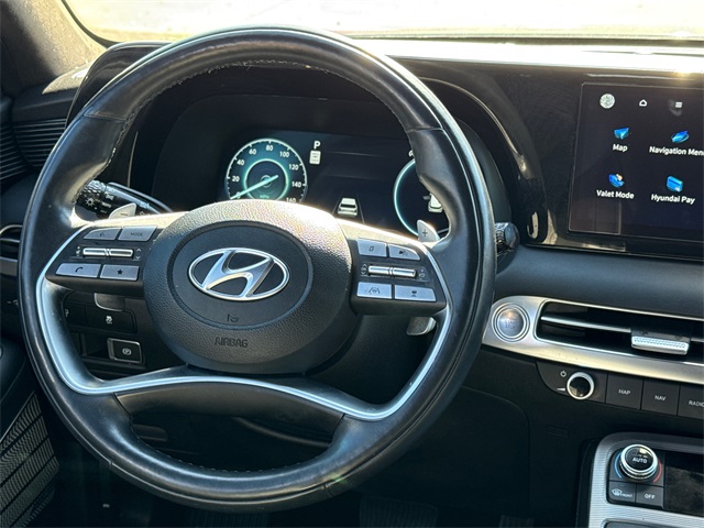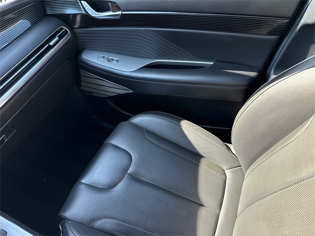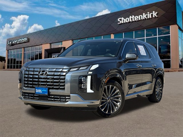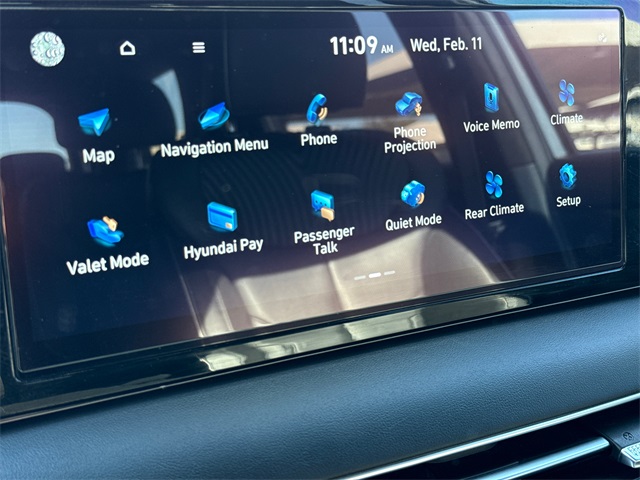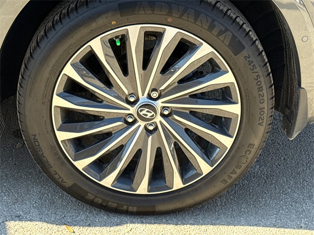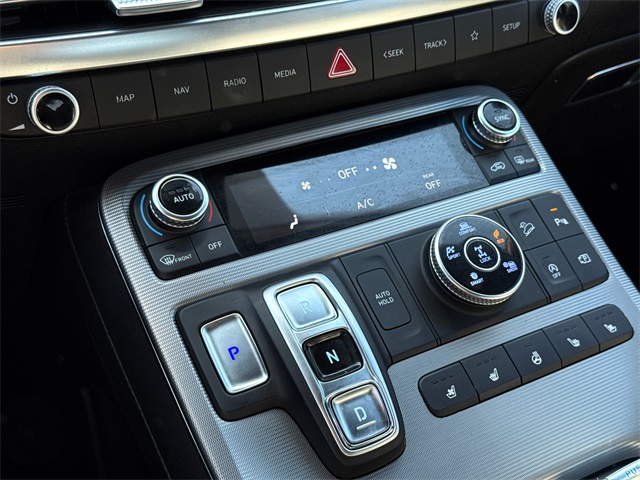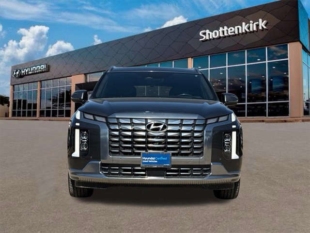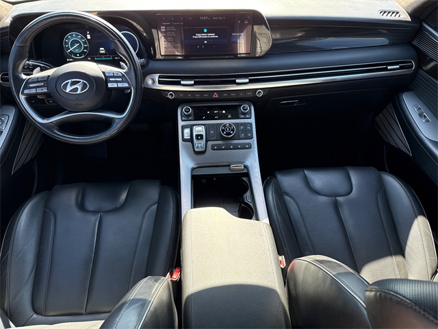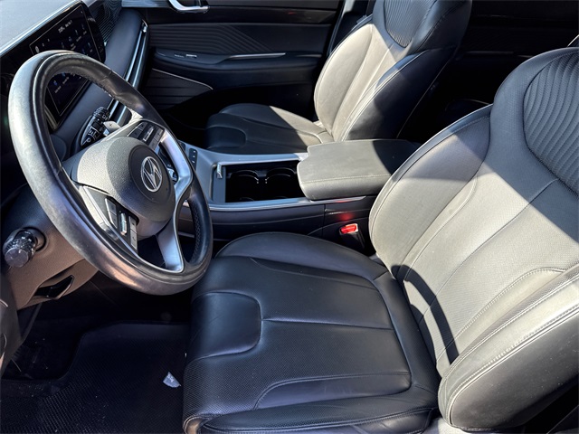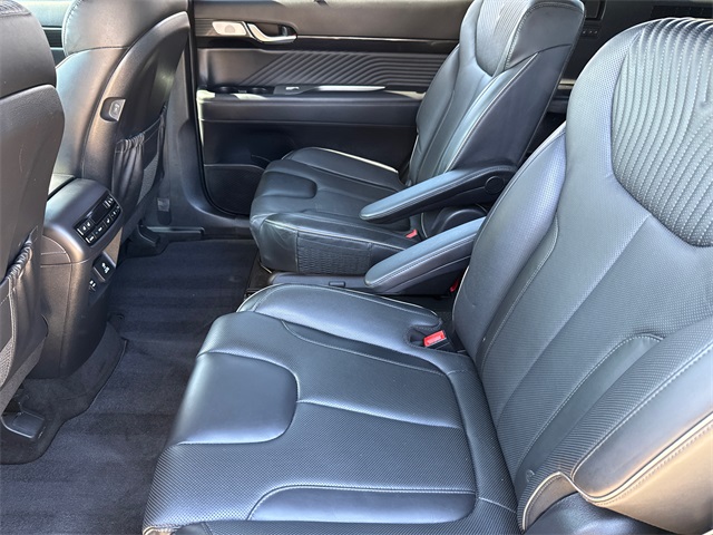 CARFAX One-Owner. APPLE CAR PLAY, ANDROID AUTO, LEATHER INTERIOR, BLUETOOTH, ALLOY WHEELS, POWER MOONROOF/SUNROOF, LOCAL TRADE IN, WELL MAINTAINED, BALANCE OF FACTORY WARRANTY, HYUNDAI CERTIFIED. This vehicle comes well equipped with Cargo Package (Cargo Blocks, Cargo Net, and Cargo Tray), Option Group 01, 12 Speakers, 3.648 Axle Ratio, 3rd row seats: split-bench, 4-Wheel Disc Brakes, ABS brakes, Air Conditioning, Alloy wheels, AM/FM radio: SiriusXM, Apple CarPlay & Android Auto, Auto High-beam Headlights, Auto-dimming door mirrors, Auto-dimming Rear-View mirror, Auto-leveling suspension, Automatic temperature control, Brake assist, Bumpers: body-color, Carpeted Floor Mats, Compass, Delay-off headlights, Driver door bin, Driver vanity mirror, Dual front impact airbags, Dual front side impact airbags, Electronic Stability Control, Emergency communication system: Blue Link Connected Car Service (3-year complimentary subscription), Exterior Parking Camera Rear, First Aid Kit, Four wheel independent suspension, Front anti-roll bar, Front Bucket Seats, Front Center Armrest, Front dual zone A/C, Front reading lights, Fully automatic headlights, Garage door transmitter: HomeLink, harman/kardon® Speakers, Heads-Up Display, Heated & Ventilated Front Bucket Seats, Heated door mirrors, Heated front seats, Heated rear seats, Heated steering wheel, Illuminated entry, Knee airbag, Low tire pressure warning, Memory seat, Navigation System, Occupant sensing airbag, Outside temperature display, Overhead airbag, Overhead console, Panic alarm, Passenger door bin, Passenger vanity mirror, Power door mirrors, Power driver seat, Power Liftgate, Power moonroof, Power passenger seat, Power steering, Power windows, Premium Nappa Leather Seat Trim, Radio data system, Radio: AM/FM/MP3 Premium Audio System, Rain sensing wipers, Rear air conditioning, Rear anti-roll bar, Rear audio controls, Rear Bumper Applique, Rear reading lights, Rear side impact airbag, Rear window defroster, Rear window wiper, Reclining 3rd row seat, Remote keyless entry, Security system, Speed control, Speed-sensing steering, Splash Trim, Split folding rear seat, Spoiler, Steering wheel mounted audio controls, Tachometer, Telescoping steering wheel, Tilt steering wheel, Traction control, Trip computer, Turn signal indicator mirrors, Variably intermittent wipers, Ventilated front seats, Ventilated rear seats, Wheel Locks, and Wheels: 20" x 7.5J Calligraphy Exclusive Alloy.