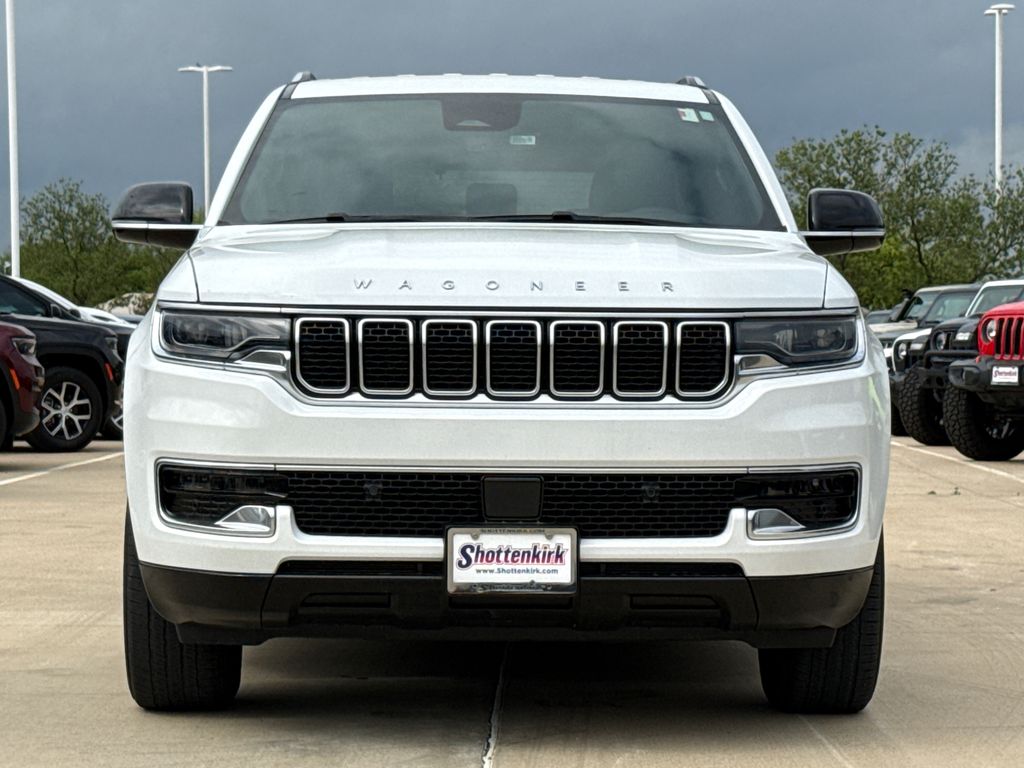 CARFAX One-Owner. 2023 Jeep Wagoneer 4D Sport Utility Bright White Clearcoat 3.0L I6 8-Speed Automatic 4WD This vehicle comes well equipped with Quick Order Package 25E, 4D Sport Utility, 3.0L I6, 8-Speed Automatic, 4WD, Bright White Clearcoat, Black Leather, and Navigation System Quick Order Package 25E, 4D Sport Utility, 3.0L I6, 8-Speed Automatic, 4WD, Bright White Clearcoat, Black Leather, Navigation System, 10 Speakers, 3rd row seats: bench, 4-Wheel Disc Brakes, ABS brakes, Adjustable pedals, Air Conditioning, Alloy wheels, AM/FM radio: SiriusXM with 360L, Anti-whiplash front head restraints, Audio memory, Auto-dimming door mirrors, Auto-dimming Rear-View mirror, Auto-leveling suspension, Automatic temperature control, Brake assist, Bumpers: body-color, Compass, Delay-off headlights, Driver door bin, Driver vanity mirror, Driver's Seat Mounted Armrest, Dual front impact airbags, Dual front side impact airbags, Electronic Stability Control, Emergency communication system: Automatic SOS Call, Exterior Parking Camera Rear, Four wheel independent suspension, Front anti-roll bar, Front Bucket Seats, Front Center Armrest w/Storage, Front dual zone A/C, Front fog lights, Front reading lights, Fully automatic headlights, Garage door transmitter, Heated door mirrors, Heated front seats, Heated steering wheel, Illuminated entry, Knee airbag, Leather Trimmed Bucket Seats, Low tire pressure warning, Memory seat, Normal Duty Suspension, Occupant sensing airbag, Outside temperature display, Overhead airbag, Overhead console, Panic alarm, Passenger door bin, Passenger seat mounted armrest, Passenger vanity mirror, Pedal memory, Power adjustable front head restraints, Power door mirrors, Power driver seat, Power Liftgate, Power passenger seat, Power steering, Power windows, Radio data system, Radio: Uconnect 5 Nav w/10.1" Display, Rear air conditioning, Rear anti-roll bar, Rear dual zone A/C, Rear reading lights, Rear seat center armrest, Rear window defroster, Rear window wiper, Reclining 3rd row seat, Remote keyless entry, Security system, Speed control, Speed-sensing steering, Speed-Sensitive Wipers, Split folding rear seat, Steering wheel memory, Steering wheel mounted audio controls, Tachometer, Telescoping steering wheel, Tilt steering wheel, Traction control, Trip computer, Turn signal indicator mirrors, Variably intermittent wipers, Ventilated front seats, Voltmeter, and Wheels: 18" x 8.0" Aluminum Base Finish. For more information contact one of our Internet Managers at 682-498-8390 to set up your VIP Test Drive.. At SHOTTENKIRK CDJR Granbury located in Granbury, TX all of our Pre-Owned vehicles go through a 100 point plus inspection. The oil and filter are changed, complete brake inspection, tire rotation, safety inspection and all fluid levels are topped off. If we find anything that needs attention we address the issue and fix it. So buy with confidence that you are getting a quality vehicle. We can do a complete walk around for you over the phone. Trade ins are always welcomed. We offer financing from over 25 finance and credit unions locally and nationally. SHOTTENKIRK CDJR 4970 E HWY 377 GRANBURY TEXAS 76049.