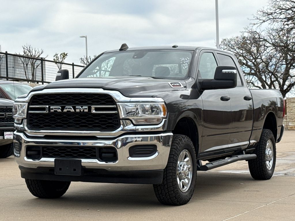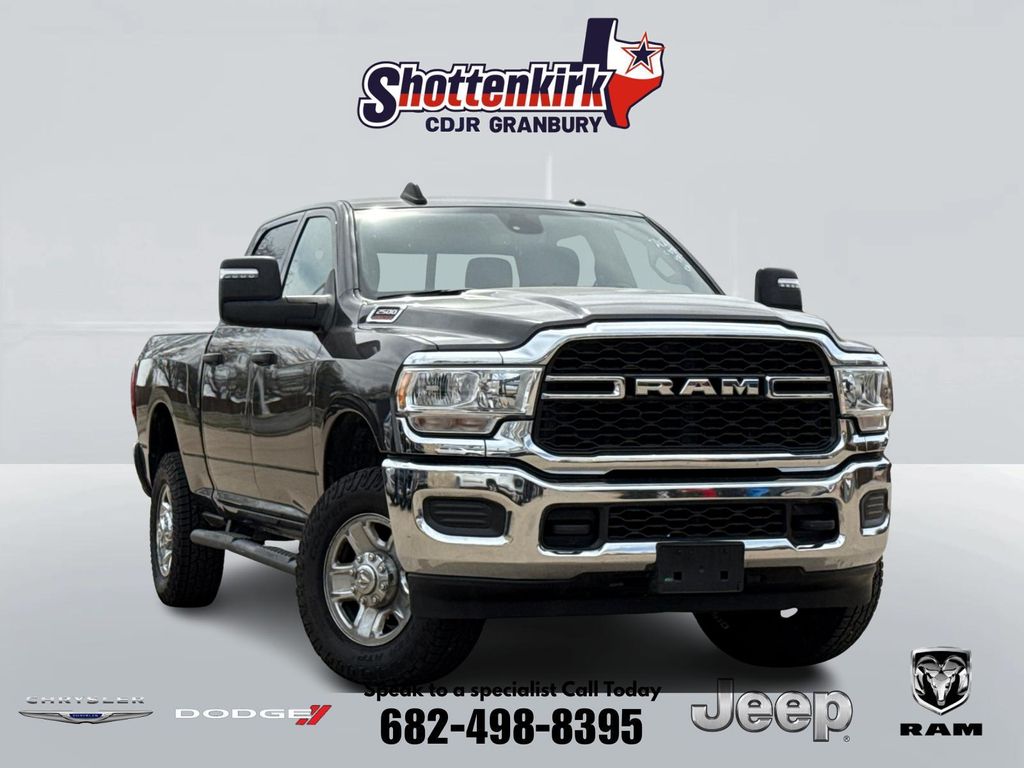 Clean CARFAX. CARFAX One-Owner. 2023 Ram 2500 Tradesman 4D Crew Cab Granite Crystal Metallic Clearcoat 6.4L V8 8-Speed Automatic 4WD This vehicle comes well equipped with Chrome Appearance Group (Bright Front Bumper, Bright Rear Bumper, Center Hub, Chrome Grille Surround, Chrome Headlamp Bezels, Matte Black Mesh Grille w/Chrome, and Wheels: 18" x 8.0" Steel Chrome Clad), Convenience Group (Air Conditioning ATC w/Dual Zone Control and Auto-Dimming Rear-View Mirror), Off Road Package (Front Performance Tuned Shock Absorbers, Hill Descent Control, Rear Performance Tuned Shock Absorbers, and Tow Hooks), Quick Order Package 2GA Tradesman, Tradesman Level 2 Equipment Group (2 Way Rear Headrest Seat, 4 Way Front Headrests, 40/20/40 Split Bench Seat, Black Exterior Mirrors, Cloth 40/20/40 Bench Seat, Exterior Mirrors Courtesy Lamps, Exterior Mirrors w/Heating Element, Exterior Mirrors w/Supplemental Signals, For More Info, Call 800-643-2112, Front Armrest w/Cupholders, Manual Adjust 4-Way Driver Seat, Manual Adjust 4-Way Front Passenger Seat, Manual Folding Exterior Mirrors, Manual Telescoping Mirrors, Mirror Running Lights, Power Adjust Mirrors, Power Adjustable Convex Aux Mirrors, Power Heated Folding Telescope Mirrors, Rear Folding Seat, Rear Power Sliding Window, Rear Window Defroster, SiriusXM Radio Service, SiriusXM Satellite Radio, and Storage Tray), 2500 Tradesman, 4D Crew Cab, 6.4L V8, 4WD, Granite Crystal Metallic Clearcoat, Black Cloth, and GPS Navigation Chrome Appearance Group (Bright Front Bumper, Bright Rear Bumper, Center Hub, Chrome Grille Surround, Chrome Headlamp Bezels, Matte Black Mesh Grille w/Chrome, and Wheels: 18" x 8.0" Steel Chrome Clad), Convenience Group (Air Conditioning ATC w/Dual Zone Control and Auto-Dimming Rear-View Mirror), Off Road Package (Front Performance Tuned Shock Absorbers, Hill Descent Control, Rear Performance Tuned Shock Absorbers, and Tow Hooks), Quick Order Package 2GA Tradesman, Tradesman Level 2 Equipment Group (2 Way Rear Headrest Seat, 4 Way Front Headrests, 40/20/40 Split Bench Seat, Black Exterior Mirrors, Cloth 40/20/40 Bench Seat, Exterior Mirrors Courtesy Lamps, Exterior Mirrors w/Heating Element, Exterior Mirrors w/Supplemental Signals, For More Info, Call 800-643-2112, Front Armrest w/Cupholders, Manual Adjust 4-Way Driver Seat, Manual Adjust 4-Way Front Passenger Seat, Manual Folding Exterior Mirrors, Manual Telescoping Mirrors, Mirror Running Lights, Power Adjust Mirrors, Power Adjustable Convex Aux Mirrors, Power Heated Folding Telescope Mirrors, Rear Folding Seat, Rear Power Sliding Window, Rear Window Defroster, SiriusXM Radio Service, SiriusXM Satellite Radio, and Storage Tray), 2500 Tradesman, 4D Crew Cab, 6.4L V8, 4WD, Granite Crystal Metallic Clearcoat, Black Cloth, GPS Navigation, 115V Auxiliary Front Power Outlet, 17" x 7.5" Steel Styled Wheels, 3.73 Axle Ratio, 4-Wheel Disc Brakes, 400W Inverter, 4G LTE Wi-Fi Hot Spot, 6 Speakers, 8.4" Touchscreen Display, ABS brakes, Active Noise Control System, Air Conditioning, Alexa Built-In, All R1 High Radios, All Radio Equipped Vehicles, AM/FM radio, Anti-Spin Differential Rear Axle, Apple CarPlay, Auto Power-Folding Mirrors, Blind Spot & Cross Path Detection, Brake assist, Carpet Floor Covering, Cluster 7.0" TFT Color Display, Compass, Connected Travel & Traffic Services, Connectivity - US/Canada, CTR Stop Lamp w/Cargo View Camera, Delay-off headlights, Disassociated Touchscreen Display, Driver door bin, Dual front impact airbags, Dual front side impact airbags, Electric Shift-On-The-Fly Transfer Case, Electronic Stability Control, Electronically Controlled Throttle, Emergency communication system: SiriusXM Guardian, Exterior 115V AC Outlet, For Details, Visit DriveUconnect.com, Forward & Reverse Utility Lights, Front & Rear Floor Mats, Front anti-roll bar, Front Center Armrest w/Storage, Front License Plate Bracket, Front reading lights, Fully automatic headlights, Global Telematics Box Module (TBM), Google Android Auto,