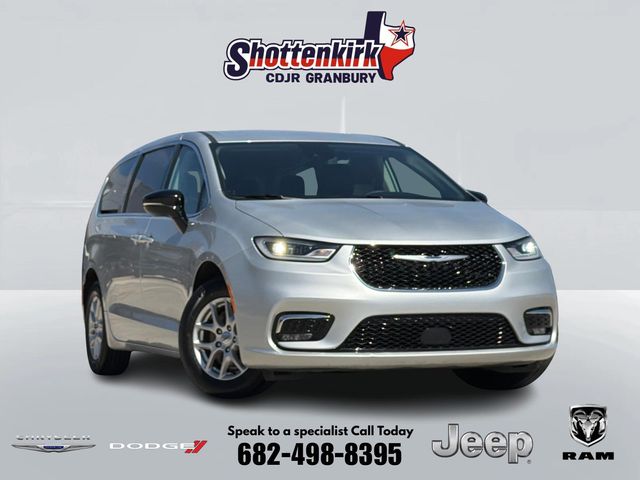 Clean CARFAX. CARFAX One-Owner. 2024 Chrysler Pacifica Touring L 4D Passenger Van Silver Mist Clearcoat 3.6L V6 24V VVT 9-Speed 948TE Automatic FWD This vehicle comes well equipped with Quick Order Package 27L, Pacifica Touring L, 4D Passenger Van, 3.6L V6 24V VVT, FWD, Silver Mist Clearcoat, and Black/Alloy/Black Artificial Leather Quick Order Package 27L, Pacifica Touring L, 4D Passenger Van, 3.6L V6 24V VVT, FWD, Silver Mist Clearcoat, Black/Alloy/Black Artificial Leather, 10.1" Touchscreen Display, 17" x 7.0" Aluminum Wheels, 3.25 Axle Ratio, 3rd row seats: split-bench, 4-Wheel Disc Brakes, 6 Speakers, ABS brakes, Air Conditioning, Alloy wheels, AM/FM radio: SiriusXM, Apple CarPlay, Apple CarPlay/Android Auto, Automatic temperature control, Black Seats, Brake assist, Bumpers: body-color, Caprice Leatherette Bucket Seats, Compass, Delay-off headlights, Disassociated Touchscreen Display, Driver door bin, Driver vanity mirror, Driver's Seat Mounted Armrest, Dual front impact airbags, Dual front side impact airbags, Electronic Stability Control, Four wheel independent suspension, Front anti-roll bar, Front Bucket Seats, Front dual zone A/C, Front fog lights, Front reading lights, Fully automatic headlights, Google Android Auto, GPS Antenna Input, Heated door mirrors, Heated front seats, Heated steering wheel, Illuminated entry, Integrated Active Noise Cancellation, Integrated Center Stack Radio, Knee airbag, Low tire pressure warning, Manufacturer's Statement of Origin, Memory seat, Occupant sensing airbag, Outside temperature display, Overhead airbag, Overhead console, Panic alarm, ParkView Rear Back-Up Camera, Passenger door bin, Passenger seat mounted armrest, Passenger vanity mirror, Power door mirrors, Power driver seat, Power Liftgate, Power steering, Power windows, Radio data system, Radio: Uconnect 5 w/10.1" Display, Rain sensing wipers, Rear air conditioning, Rear reading lights, Rear window defroster, Rear window wiper, Reclining 3rd row seat, Remote keyless entry, Security system, Speed control, Split folding rear seat, Spoiler, Steering wheel mounted audio controls, Tachometer, Telescoping steering wheel, Tilt steering wheel, Touring Suspension, Traction control, Trip computer, Turn signal indicator mirrors, USB Host Flip, Variably intermittent wipers, and Voltmeter. For more information contact one of our Internet Managers at 682-498-8390 to set up your VIP Test Drive.. At SHOTTENKIRK CDJR Granbury located in Granbury, TX all of our Pre-Owned vehicles go through a 100 point plus inspection. The oil and filter are changed, complete brake inspection, tire rotation, safety inspection and all fluid levels are topped off. If we find anything that needs attention we address the issue and fix it. So buy with confidence that you are getting a quality vehicle. We can do a complete walk around for you over the phone. Trade ins are always welcomed. We offer financing from over 25 finance and credit unions locally and nationally. SHOTTENKIRK CDJR 4970 E HWY 377 GRANBURY TEXAS 76049.