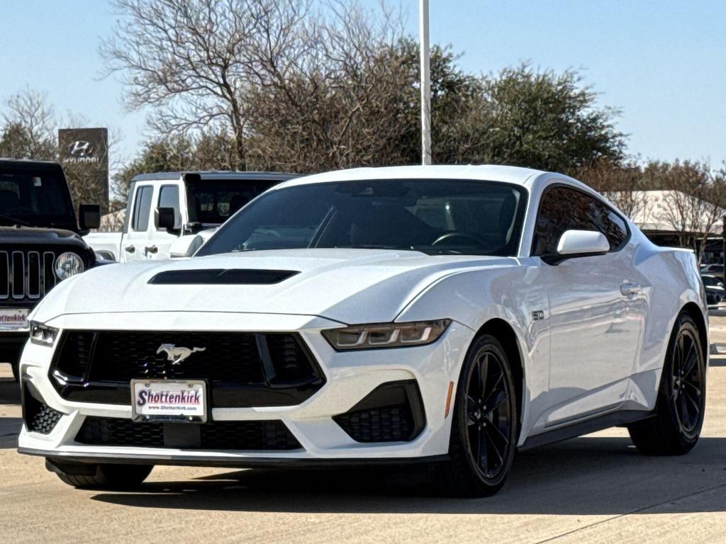 CARFAX One-Owner. 2024 Ford Mustang GT 2D Coupe Oxford White 5.0L V8 Ti-VCT 10-Speed Automatic RWD This vehicle comes well equipped with Equipment Group 300A Standard Package, Mustang GT, 2D Coupe, 5.0L V8 Ti-VCT, RWD, Oxford White, Black Onyx Cloth, Air Conditioning, Automatic temperature control, Power steering, Power windows, Rear window defroster, Remote keyless entry, and Steering wheel mounted audio controls Equipment Group 300A Standard Package, Mustang GT, 2D Coupe, 5.0L V8 Ti-VCT, RWD, Oxford White, Black Onyx Cloth, Air Conditioning, Automatic temperature control, Power steering, Power windows, Rear window defroster, Remote keyless entry, Steering wheel mounted audio controls, 4-Wheel Disc Brakes, ABS brakes, Alloy wheels, AM/FM Stereo, Auto High-beam Headlights, Brake assist, Bumpers: body-color, Compass, Delay-off headlights, Driver door bin, Driver vanity mirror, Dual front impact airbags, Dual front side impact airbags, Electronic Stability Control, Emergency communication system: 911 Assist, Exterior Parking Camera Rear, Four wheel independent suspension, Front anti-roll bar, Front Bucket Seats, Front Center Armrest, Front reading lights, Fully automatic headlights, Illuminated entry, Knee airbag, Leather Shift Knob, Leather steering wheel, Low tire pressure warning, Occupant sensing airbag, Outside temperature display, Overhead airbag, Overhead console, Panic alarm, Passenger door bin, Passenger vanity mirror, Power door mirrors, Radio data system, Rain sensing wipers, Rear anti-roll bar, Rear Parking Sensors, Speed control, Speed-sensing steering, Speed-Sensitive Wipers, Split folding rear seat, Spoiler, Sport steering wheel, SYNC 4.0 QNX, Tachometer, Telescoping steering wheel, Tilt steering wheel, Traction control, Trip computer, Variably intermittent wipers, Voltmeter, and Wheels: 18" x 8.5" Ebony Black Painted Aluminum. For more information contact one of our Internet Managers at 682-498-8390 to set up your VIP Test Drive.. At SHOTTENKIRK CDJR Granbury located in Granbury, TX all of our Pre-Owned vehicles go through a 100 point plus inspection. The oil and filter are changed, complete brake inspection, tire rotation, safety inspection and all fluid levels are topped off. If we find anything that needs attention we address the issue and fix it. So buy with confidence that you are getting a quality vehicle. We can do a complete walk around for you over the phone. Trade ins are always welcomed. We offer financing from over 25 finance and credit unions locally and nationally. SHOTTENKIRK CDJR 4970 E HWY 377 GRANBURY TEXAS 76049.