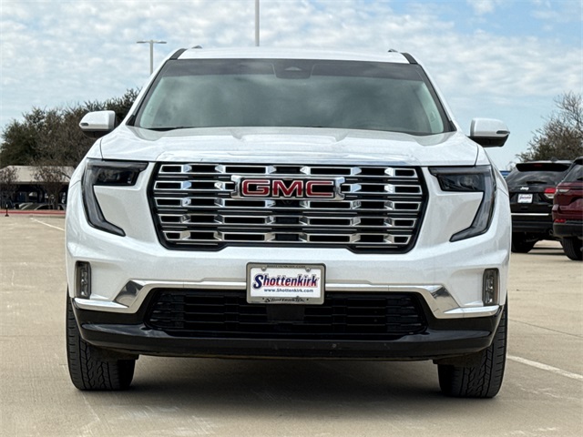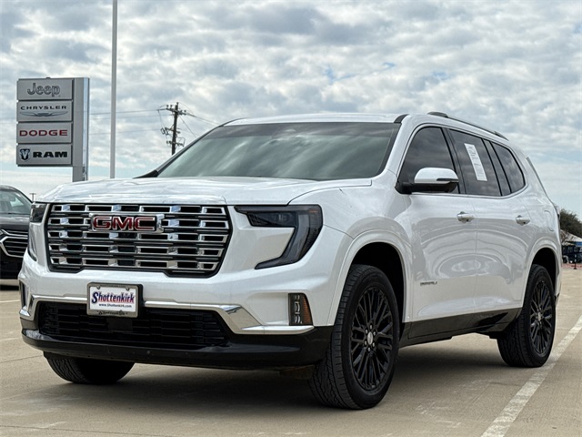 Clean CARFAX. CARFAX One-Owner. 2024 GMC Acadia Denali 4D Sport Utility White Frost Tricoat 2.5L DOHC 8-Speed Automatic FWD This vehicle comes well equipped with Floor Liner Package (LPO) (1st & 2nd Row All-Weather Floor Liner (LPO) and 3rd Row All-Weather Floor Liner (LPO)), Memory Package, Preferred Equipment Group 5SA, Acadia Denali, 4D Sport Utility, 2.5L DOHC, FWD, White Frost Tricoat, Sheer/Very Dark Atmosphere Leather, and Navigation System Floor Liner Package (LPO) (1st & 2nd Row All-Weather Floor Liner (LPO) and 3rd Row All-Weather Floor Liner (LPO)), Memory Package, Preferred Equipment Group 5SA, Acadia Denali, 4D Sport Utility, 2.5L DOHC, FWD, White Frost Tricoat, Sheer/Very Dark Atmosphere Leather, Navigation System, 12 Speakers, 3.49 Final Drive Axle Ratio, 3rd Row 60/40 Power Split-Folding Bench, 3rd row seats: split-bench, 4-Wheel Disc Brakes, 6-Way Power Front Passenger Seat Adjuster, 7-Passenger Seating (2-2-3 Seating Configuration), 8-Way Power Driver Seat Adjuster, ABS brakes, Air Conditioning, Alloy wheels, AM/FM radio: SiriusXM with 360L, Apple CarPlay/Android Auto, Auto High-beam Headlights, Auto-dimming door mirrors, Auto-dimming Rear-View mirror, Automatic temperature control, Bodyside moldings, Bose Performance 12-Speaker System w/Sub-woofer, Brake assist, Bumpers: body-color, Compass, Delay-off headlights, Driver 4-Way Power Lumbar Seat Adjuster, Driver door bin, Driver vanity mirror, Dual front impact airbags, Dual front side impact airbags, Electronic Stability Control, Emergency communication system: OnStar and GMC connected services capable, Exterior Parking Camera Rear, Four wheel independent suspension, Front anti-roll bar, Front Bucket Seats, Front Center Armrest, Front dual zone A/C, Front fog lights, Front License Plate Bracket, Front Passenger 4-Way Power Lumbar Seat Adjuster, Front reading lights, Fully automatic headlights, Garage door transmitter, Genuine wood console insert, Genuine wood dashboard insert, Genuine wood door panel insert, Heads-Up Display, Heated & Ventilated Driver & Front Passenger Seats, Heated door mirrors, Heated Driver & Front Passenger Seats, Heated front seats, Heated rear seats, Heated steering wheel, Illuminated entry, Leather steering wheel, Low tire pressure warning, Memory seat, Not Equipped w/Heated Wiper Park, Occupant sensing airbag, Outside temperature display, Overhead airbag, Overhead console, Panic alarm, Passenger door bin, Passenger vanity mirror, Perforated Leather-Appointed Seat Trim, Power door mirrors, Power driver seat, Power Liftgate, Power passenger seat, Power steering, Power windows, Radio data system, Radio: 15" Premium GMC Infotainment System, Rain sensing wipers, Rear air conditioning, Rear anti-roll bar, Rear reading lights, Rear side impact airbag, Rear window defroster, Rear window wiper, Remote keyless entry, Security system, SiriusXM w/360L, Speed control, Speed-sensing steering, Split folding rear seat, Spoiler, Sport steering wheel, Steering wheel memory, Steering wheel mounted audio controls, Tachometer, Telescoping steering wheel, Tilt steering wheel, Traction control, Trip computer, Turn signal indicator mirrors, Variably intermittent wipers, Ventilated front seats, Voltmeter, and Wheels: 20" x 8" Pearl Nickel Machined Aluminum. For more information contact one of our Internet Managers at 682-498-8390 to set up your VIP Test Drive.. At SHOTTENKIRK CDJR Granbury located in Granbury, TX all of our Pre-Owned vehicles go through a 100 point plus inspection. The oil and filter are changed, complete brake inspection, tire rotation, safety inspection and all fluid levels are topped off. If we find anything that needs attention we address the issue and fix it. So buy with confidence that you are getting a quality vehicle. We can do a complete walk around for you over the phone. Trade ins are always welcomed. We offer financing from over 25 finance and credit unions locally and nationally. SHOTTENKIRK CDJR 4970 E HWY 377 GRANBURY TEXAS 76