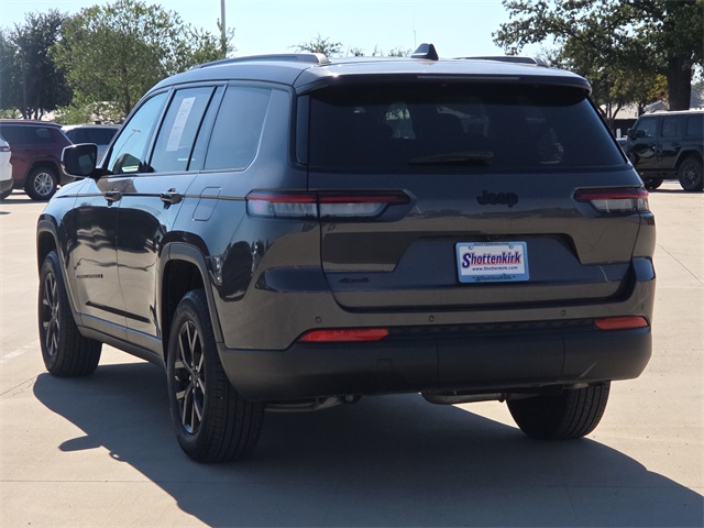 Certified. Clean CARFAX. CARFAX One-Owner. 2024 Jeep Grand Cherokee L Altitude 4D Sport Utility Baltic Gray Metallic Clearcoat 3.6L V6 24V VVT 8-Speed Automatic 4WD This vehicle comes well equipped with Altitude Appearance Package, Quick Order Package 23B Altitude (115V Auxiliary Power Outlet, 3rd Row Charge-Only USB Ports, Black Headliner, Capri Leatherette/Suede Seats, Delete Laredo Badge, Gloss Black Exterior Accents, Heated Front Seats, Heated Steering Wheel, Power Liftgate, Rain Sensitive Windshield Wipers, Remote Start System, Selectable Tire Fill Alert, Wheels: 18" x 8.0" Fully Painted Aluminum 1, and Wireless Charging Pad), Grand Cherokee L Altitude, 4D Sport Utility, 4WD, Baltic Gray Metallic Clearcoat, and Global Black Artificial Leather Altitude Appearance Package, Quick Order Package 23B Altitude (115V Auxiliary Power Outlet, 3rd Row Charge-Only USB Ports, Black Headliner, Capri Leatherette/Suede Seats, Delete Laredo Badge, Gloss Black Exterior Accents, Heated Front Seats, Heated Steering Wheel, Power Liftgate, Rain Sensitive Windshield Wipers, Remote Start System, Selectable Tire Fill Alert, Wheels: 18" x 8.0" Fully Painted Aluminum 1, and Wireless Charging Pad), Grand Cherokee L Altitude, 4D Sport Utility, 4WD, Baltic Gray Metallic Clearcoat, Global Black Artificial Leather, 2nd Row 60/40 Bench w/Manual Tip/Slide, 2nd Row Seat Center Armrest/Cupholders, 3 Rear Seat Head Restraints, 3.45 Rear Axle Ratio, 3rd row seats: split-bench, 4-Wheel Disc Brakes, 6 Speakers, 7-Passenger Seating, ABS brakes, Air Conditioning, Alloy wheels, Anti-whiplash front head restraints, Automatic temperature control, Brake assist, Bumpers: body-color, Center Rear 3-Point Seat Belt, Cloth Seats, Compass, Delay-off headlights, Driver door bin, Driver vanity mirror, Dual front impact airbags, Dual front side impact airbags, Electronic Stability Control, Emergency communication system, Four wheel independent suspension, Front anti-roll bar, Front Bucket Seats, Front Center Armrest w/Storage, Front dual zone A/C, Front License Plate Bracket, Front reading lights, Fully automatic headlights, Heated door mirrors, Illuminated entry, Knee airbag, Low tire pressure warning, Manual Fold Seatbacks, Normal Duty Suspension, Occupant sensing airbag, Outside temperature display, Overhead airbag, Overhead console, Panic alarm, ParkView Rear Back-Up Camera, Passenger door bin, Passenger vanity mirror, Power door mirrors, Power driver seat, Power steering, Power windows, Radio data system, Radio: Uconnect 5 w/8.4" Display, Rear air conditioning, Rear anti-roll bar, Rear reading lights, Rear window defroster, Rear window wiper, Reclining 3rd row seat, Remote keyless entry, Security system, Speed control, Speed-Sensitive Wipers, Split folding rear seat, Spoiler, Steering wheel mounted audio controls, Tachometer, Telescoping steering wheel, Tilt steering wheel, Traction control, Trip computer, Variably intermittent wipers, Voltmeter, and Wheels: 18" x 8.0" Fully Painted Aluminum. For more information contact one of our Internet Managers at 682-498-8390 to set up your VIP Test Drive.. At SHOTTENKIRK CDJR Granbury located in Granbury, TX all of our Pre-Owned vehicles go through a 100 point plus inspection. The oil and filter are changed, complete brake inspection, tire rotation, safety inspection and all fluid levels are topped off. If we find anything that needs attention we address the issue and fix it. So buy with confidence that you are getting a quality vehicle. We can do a complete walk around for you over the phone. Trade ins are always welcomed. We offer financing from over 25 finance and credit unions locally and nationally. SHOTTENKIRK CDJR 4970 E HWY 377 GRANBURY TEXAS 76049.