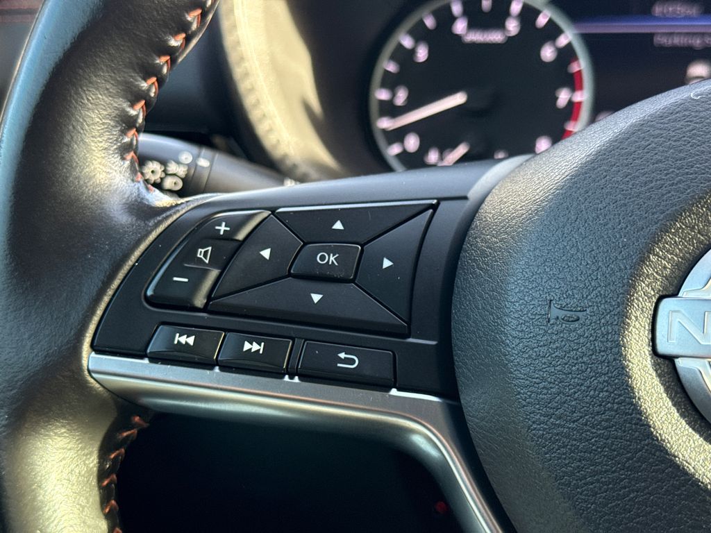 CARFAX One-Owner. Clean CARFAX. Priced below KBB Fair Purchase Price! 30/38 City/Highway MPG APPLE CAR PLAY, ANDROID AUTO, ALLOY WHEELS, HEATED FRONT SEATS, BLIND SPOT MONITOR, BACK UP CAMERA, WELL MAINTAINED, LOW MILES, BALANCE OF FACTORY WARRANTY. This vehicle comes well equipped with 18" Alloy Wheels, 2-Tone Premium Paint, 4-Wheel Disc Brakes, 6 Speakers, ABS brakes, Air Conditioning, Alloy wheels, AM/FM radio: SiriusXM, Auto High-beam Headlights, Automatic temperature control, Blind Spot Warning, Brake assist, Bumpers: body-color, Carpeted Floor Mats w/Trunk Mat, Clear Rear Bumper Protector, Delay-off headlights, Door Sill Plates, Driver door bin, Driver vanity mirror, Dual front impact airbags, Dual front side impact airbags, Electronic Stability Control, Four wheel independent suspension, Front anti-roll bar, Front Bucket Seats, Front Center Armrest, Front dual zone A/C, Front reading lights, Fully automatic headlights, Heated door mirrors, Heated Front Bucket Seats, Heated front seats, Illuminated entry, Knee airbag, Leather Shift Knob, Leather steering wheel, Low tire pressure warning, Map Pocket Lighting, Nissan USB Charging Cable Set, NissanConnect featuring Apple CarPlay and Android Auto, NissanConnect Services, Occupant sensing airbag, Outside temperature display, Overhead airbag, Overhead console, Panic alarm, Passenger door bin, Passenger vanity mirror, Power door mirrors, Power steering, Power windows, Radio data system, Radio: AM/FM w/RDS/MP3/Aux-In, Rear anti-roll bar, Rear Parking Sensors, Rear seat center armrest, Rear side impact airbag, Rear window defroster, Remote keyless entry, Security system, Speed control, Speed-sensing steering, Split folding rear seat, Spoiler, Sport Cloth Seat Trim, Steering wheel mounted audio controls, Tachometer, Technical Spec Change 2, Telescoping steering wheel, Tilt steering wheel, Traction control, Trip computer, Turn signal indicator mirrors, and Variably intermittent wipers.