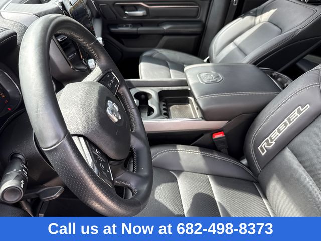 CARFAX One-Owner. Clean CARFAX. 2024 Ram 1500 Diamond Black Crystal Pearlcoat 4D Crew Cab 4WD Rebel 8-Speed Automatic 1500 Rebel, 4D Crew Cab, HEMI 5.7L V8 Multi Displacement VVT eTorque, 4WD, Diamond Black Crystal Pearlcoat, Black Leather, 115V Auxiliary Rear Power Outlet, 2-Door Passive Entry, Front Door Locks, 2nd Row In Floor Storage Bins, 3.92 Rear Axle Ratio, 33 Gallon Fuel Tank, 4G LTE Wi-Fi Hot Spot, Accent Color Door Handles, Apple CarPlay, Auto-Dimming Exterior Driver Mirror, Black Front Bumper w/Black Plate, Black Premium Power Mirrors, Bucket Seats, Class IV Receiver Hitch, Connected Travel & Traffic Services, Connectivity - US/Canada, Convex Wide-Angle Exterior Mirror Insert, Exterior Mirrors Courtesy Lamps, Exterior Mirrors w/Heating Element, Exterior Mirrors w/Supplemental Signals, Foam Bottle Insert (Door Trim Panel), For Details, Visit DriveUconnect.com, For More Info, Call 800-643-2112, Global Telematics Box Module (TBM), Google Android Auto, GPS Navigation, Grille Surround 2 Black Texture 3 Black, harman/kardon 19 Speaker Premium Sound, HD Radio, Heated Front Seats, Heated Steering Wheel, Integrated Voice Command w/Bluetooth, Media Hub w/2 Charge Only USBs, Navigation System, Night Edition, Off-Road Information Pages, ParkSense Front/Rear Park Assist w/Stop, Power 2-Way Driver Lumbar Adjust, Power 8-Way Driver Seat, Power Adjustable Pedals, Power-Folding Mirrors, Quick Order Package 27W Rebel, Radio: Uconnect 5 Nav w/12.0" Display, Rain Sensitive Windshield Wipers, RAM Grille Badge - Black, Rear Dome w/On/Off Switch Lamp, Rear Power Sliding Window, Rear Underseat Compartment Storage, Rear Window Defroster, Rebel Level 2 Equipment Group, Remote Start System, Security Alarm, SiriusXM Radio Service, SiriusXM w/360L, Sun Visors w/Illuminated Vanity Mirrors, Universal Garage Door Opener, USB Host Flip, Wheels: 18" x 8.0" Gloss Black. HEMI 5.7L V8 Multi Displacement VVT eTorque