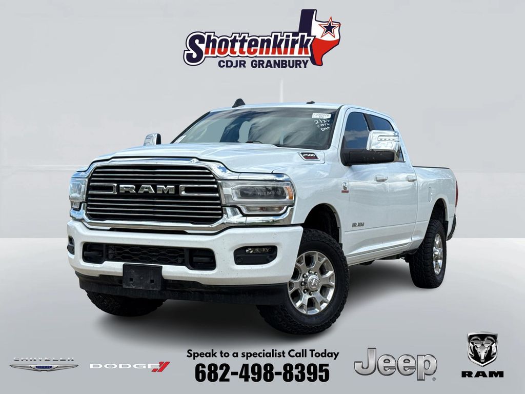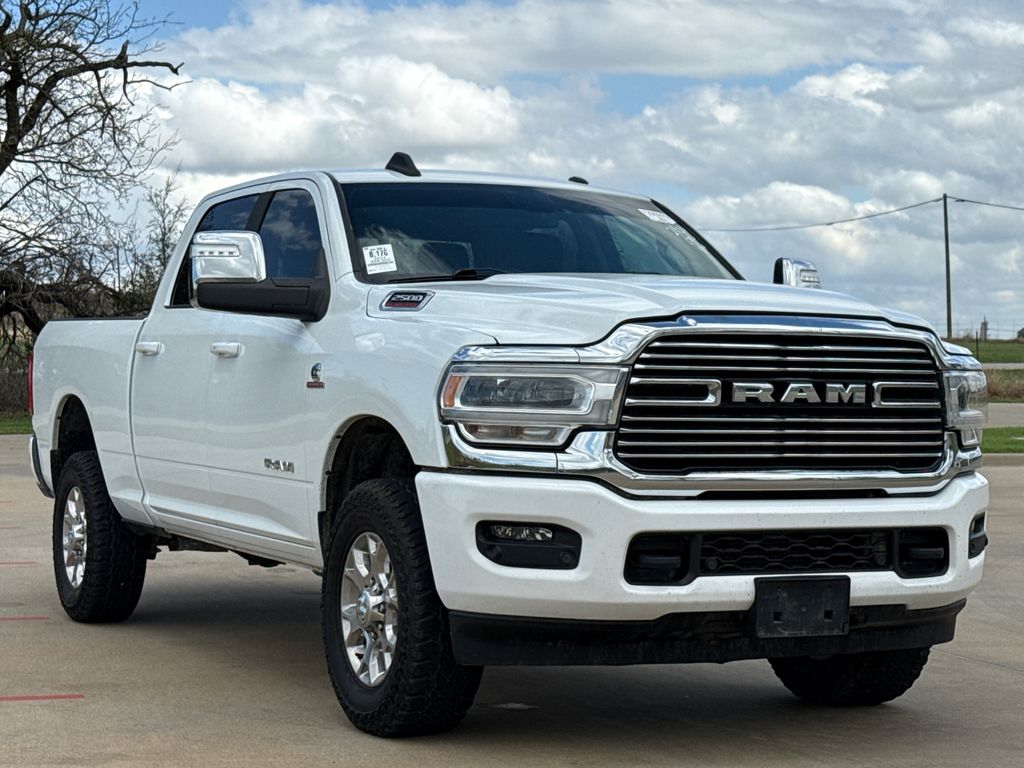 Clean CARFAX. CARFAX One-Owner. 2024 Ram 2500 Laramie 4D Crew Cab Bright White Clearcoat Cummins 6.7L I6 Turbodiesel 6-Speed Automatic 4WD This vehicle comes well equipped with Laramie Level 1 Equipment Group (12" Touchscreen Display, 2nd Row In Floor Storage Bins, 4G LTE Wi-Fi Hot Spot, Alexa Built-In, Apple CarPlay, Auto Adjust In Reverse Exterior Mirrors, Auto Dim Exterior Mirror, Auto High Beam Headlamp Control, Auto Power-Folding Mirrors, Auto-Dimming Exterior Passenger Mirror, Blind Spot & Cross Path Detection, Center Hub, Chrome Exterior Mirrors, Connected Travel & Traffic Services, Connectivity - US/Canada, Disassociated Touchscreen Display, Exterior Mirrors Courtesy Lamps, Exterior Mirrors w/Heating Element, Exterior Mirrors w/Memory, Exterior Mirrors w/Supplemental Signals, Foam Bottle Insert (Door Trim Panel), For Details, Visit DriveUconnect.com, For More Info, Call 800-643-2112, Forward & Reverse Utility Lights, Front LED Fog Lamps, Global Telematics Box Module (TBM), Google Android Auto, GPS Antenna Input, GPS Navigation, HD Radio, Integrated Voice Command w/Bluetooth, LED Reflector Headlamps, LED Tail Lamps, Mirror Running Lights, Off-Road Information Pages, ParkSense Front/Rear Park Assist System, Power Adjust Mirrors, Power Adjustable Convex Aux Mirrors, Power Adjustable Pedals w/Memory, Power Heated Fold Telescopic Mirrors w/Memory, Power Telescoping Mirrors, Radio: Uconnect 5 Nav w/12.0" Display, Rain Sensitive Windshield Wipers, Rear Power Sliding Window, Rear Window Defroster, Remote Tailgate Release, Selectable Tire Fill Alert, SiriusXM Radio Service, SiriusXM w/360L, Trailer Tow Pages, and Wheels: 18" x 8.0" Polished Aluminum), Quick Order Package 2HH Laramie, 2500 Laramie, 4D Crew Cab, Cummins 6.7L I6 Turbodiesel, 4WD, Bright White Clearcoat, and Black Leather Laramie Level 1 Equipment Group (12" Touchscreen Display, 2nd Row In Floor Storage Bins, 4G LTE Wi-Fi Hot Spot, Alexa Built-In, Apple CarPlay, Auto Adjust In Reverse Exterior Mirrors, Auto Dim Exterior Mirror, Auto High Beam Headlamp Control, Auto Power-Folding Mirrors, Auto-Dimming Exterior Passenger Mirror, Blind Spot & Cross Path Detection, Center Hub, Chrome Exterior Mirrors, Connected Travel & Traffic Services, Connectivity - US/Canada, Disassociated Touchscreen Display, Exterior Mirrors Courtesy Lamps, Exterior Mirrors w/Heating Element, Exterior Mirrors w/Memory, Exterior Mirrors w/Supplemental Signals, Foam Bottle Insert (Door Trim Panel), For Details, Visit DriveUconnect.com, For More Info, Call 800-643-2112, Forward & Reverse Utility Lights, Front LED Fog Lamps, Global Telematics Box Module (TBM), Google Android Auto, GPS Antenna Input, GPS Navigation, HD Radio, Integrated Voice Command w/Bluetooth, LED Reflector Headlamps, LED Tail Lamps, Mirror Running Lights, Off-Road Information Pages, ParkSense Front/Rear Park Assist System, Power Adjust Mirrors, Power Adjustable Convex Aux Mirrors, Power Adjustable Pedals w/Memory, Power Heated Fold Telescopic Mirrors w/Memory, Power Telescoping Mirrors, Radio: Uconnect 5 Nav w/12.0" Display, Rain Sensitive Windshield Wipers, Rear Power Sliding Window, Rear Window Defroster, Remote Tailgate Release, Selectable Tire Fill Alert, SiriusXM Radio Service, SiriusXM w/360L, Trailer Tow Pages, and Wheels: 18" x 8.0" Polished Aluminum), Quick Order Package 2HH Laramie, 2500 Laramie, 4D Crew Cab, Cummins 6.7L I6 Turbodiesel, 4WD, Bright White Clearcoat, Black Leather, 10 Speakers, 115V Auxiliary Rear Power Outlet, 2 Way Rear Headrest Seat, 220 Amp Alternator, 3.73 Axle Ratio, 4 Way Front Headrests, 4-Wheel Disc Brakes, ABS brakes, Active Noise Control System, Air Conditioning, Alloy wheels, AM/FM radio: SiriusXM with 360L, Apple CarPlay/Android Auto, Automatic temperature control, Brake assist, Bumpers: body-color, Compass, Delay-off headlights, Driver door bin, Driver vanity mirror, Dual front impact airbags, Dual front side impact airbags, Electronic Stability Control, Electronically Controlled Throttle, F