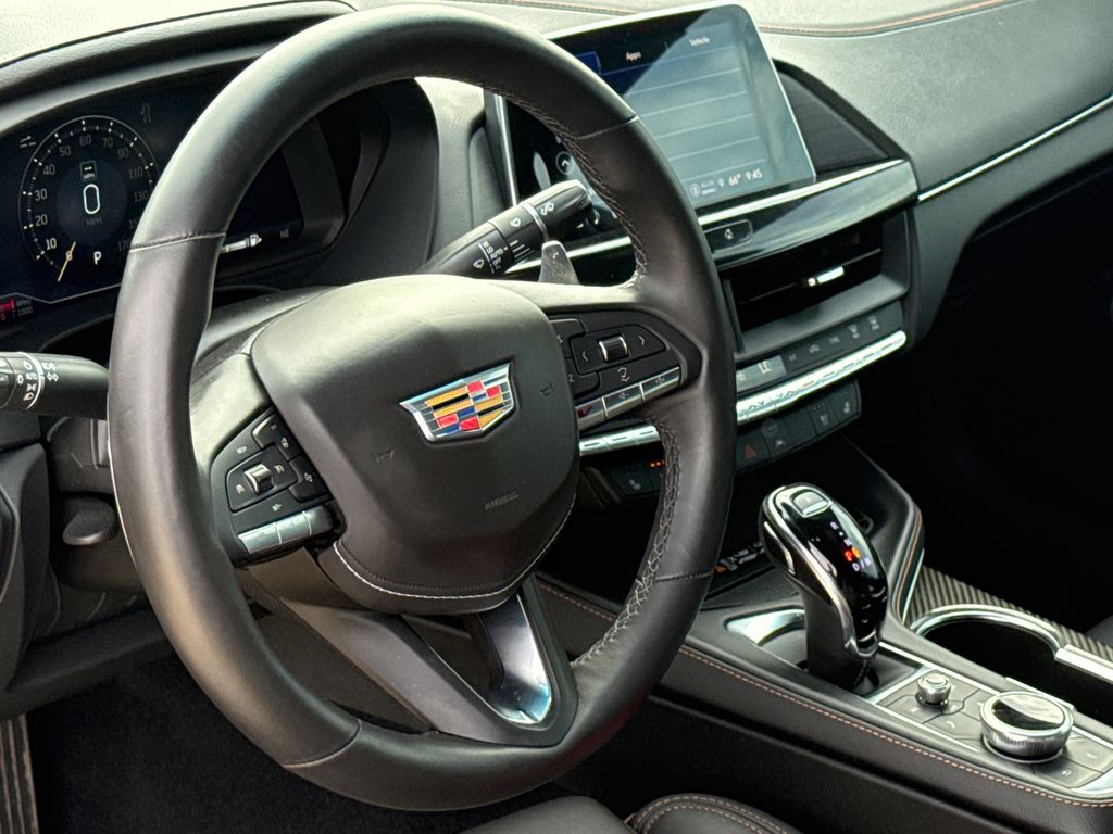 Clean CARFAX. CARFAX One-Owner. 2025 Cadillac CT4 V-Series 4D Sedan Black Raven 2.7L Turbo 10-Speed Automatic RWD This vehicle comes well equipped with Climate Package (Driver Power Lumbar Massage Seat, Front Passenger Power Lumbar Massage Seat, Heated Driver & Front Passenger Seats, Heated Steering Wheel, and Ventilated Driver & Front Passenger Seats), Lighting Package (LED Front Cornering Lamps and LED Front Lamp Turn Signal), Navigation Package (Performance Data & Video Recorder), Preferred Equipment Group 1SF (Dual Digital Driver Information Center Display, HD Rear Vision Camera, Leather-Wrapped Thick Rim Steering Wheel, and LED Reflective Windshield Collision Alert), Radio: Cadillac User Experience w/Embedded Nav (HD Radio, SiriusXM w/360L Trial Subscription, and Wireless Apple CarPlay/Wireless Android Auto), Technology Package (12" Diagonal HD Color Reconfigurable Driver Display, Head-Up Display, and Pollutant/Odor/Fine Dust Air Filter), CT4 V-Series, 4D Sedan, 2.7L Turbo, 10-Speed Automatic, RWD, Black Raven, Black Leather, Alloy wheels, Navigation System, and Wheels: 18" Aluminum Alloy w/Satin Graphite Finish Climate Package (Driver Power Lumbar Massage Seat, Front Passenger Power Lumbar Massage Seat, Heated Driver & Front Passenger Seats, Heated Steering Wheel, and Ventilated Driver & Front Passenger Seats), Lighting Package (LED Front Cornering Lamps and LED Front Lamp Turn Signal), Navigation Package (Performance Data & Video Recorder), Preferred Equipment Group 1SF (Dual Digital Driver Information Center Display, HD Rear Vision Camera, Leather-Wrapped Thick Rim Steering Wheel, and LED Reflective Windshield Collision Alert), Radio: Cadillac User Experience w/Embedded Nav (HD Radio, SiriusXM w/360L Trial Subscription, and Wireless Apple CarPlay/Wireless Android Auto), Technology Package (12" Diagonal HD Color Reconfigurable Driver Display, Head-Up Display, and Pollutant/Odor/Fine Dust Air Filter), CT4 V-Series, 4D Sedan, 2.7L Turbo, 10-Speed Automatic, RWD, Black Raven, Black Leather, Alloy wheels, Navigation System, Wheels: 18" Aluminum Alloy w/Satin Graphite Finish, 14 Speakers, 4-Wheel Disc Brakes, 8-Way Power Driver Seat Adjuster, ABS brakes, Adaptive suspension, Air Conditioning, AM/FM radio: SiriusXM, Anti-whiplash front head restraints, Apple CarPlay/Android Auto, Auto High-beam Headlights, Auto-dimming door mirrors, Auto-dimming Rear-View mirror, Automatic Stop/Start w/Disable, Automatic temperature control, Bose Premium Surround Sound 14-Speaker System, Brake assist, Bumpers: body-color, Compass, Delay-off headlights, Driver 4-Way Power Lumbar Seat Adjuster, Driver door bin, Driver Seat Manual Cushion Length Adjustment, Driver Seat Power Seatback Bolster Adjustment, Driver vanity mirror, Dual front impact airbags, Dual front side impact airbags, Electronic Stability Control, Emergency communication system: OnStar and Cadillac connected services capable, Exterior Parking Camera Rear, Four wheel independent suspension, Front anti-roll bar, Front Bucket Seats, Front Center Armrest, Front dual zone A/C, Front License Plate Bracket, Front Passenger 4-Way Power Lumbar Seat Adjuster, Front Passenger 8-Way Power Seat Adjuster, Front Passenger Power Seatback Bolster Adjustment, Front Passenger Seat Manual Cushion Length Adjustment, Front reading lights, Fully automatic headlights, Garage door transmitter, Heated door mirrors, Illuminated entry, Inteluxe Seating Surfaces, Knee airbag, Leather Shift Knob, Leather steering wheel, Low tire pressure warning, Memory seat, Occupant sensing airbag, Outside temperature display, Overhead airbag, Overhead console, Panic alarm, Passenger door bin, Passenger vanity mirror, Performance Front Bucket Seats, Power door mirrors, Power driver seat, Power passenger seat, Power steering, Power Sunroof w/Express Open & Venting, Power windows, Radio data system, Radio: Cadillac User Experience, Rain sensing wipers, Rear anti-roll bar, Rear reading lights, Rear seat center armrest, Rear win