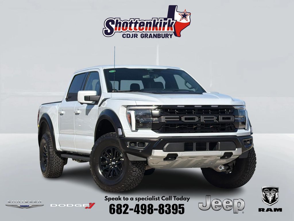 Clean CARFAX. CARFAX One-Owner. 2025 Ford F-150 Raptor 4D SuperCrew White Metallic 3.5L V6 EcoBoost 10-Speed Automatic 4WD This vehicle comes well equipped with Equipment Group 801A Standard, F-150 Raptor, 4D SuperCrew, 3.5L V6 EcoBoost, 4WD, White Metallic, Black Leather, Delay-off headlights, Heads-Up Display, Heated front seats, Heated rear seats, Memory seat, Navigation system: Connected Navigation, Power driver seat, Remote keyless entry, and Twin Panel Moonroof Equipment Group 801A Standard, F-150 Raptor, 4D SuperCrew, 3.5L V6 EcoBoost, 4WD, White Metallic, Black Leather, Delay-off headlights, Heads-Up Display, Heated front seats, Heated rear seats, Memory seat, Navigation system: Connected Navigation, Power driver seat, Remote keyless entry, Twin Panel Moonroof, 14 Speakers, 17" Cast Aluminum Wheels, 4-Wheel Disc Brakes, ABS brakes, Adjustable pedals, Air Conditioning, Alloy wheels, AM/FM radio: SiriusXM with 360L, Auto High-beam Headlights, Auto tilt-away steering wheel, Auto-dimming door mirrors, Auto-dimming Rear-View mirror, Automatic temperature control, Brake assist, Bumpers: body-color, Compass, Driver door bin, Driver vanity mirror, Dual front impact airbags, Dual front side impact airbags, Electronic Locking w/4.10 Axle Ratio, Electronic Stability Control, Emergency communication system: SYNC 4 911 Assist, Front anti-roll bar, Front Bucket Seats, Front Center Armrest, Front dual zone A/C, Front fog lights, Front License Plate Bracket, Front reading lights, Front wheel independent suspension, Fully automatic headlights, Garage door transmitter, Heated door mirrors, Heated steering wheel, Illuminated entry, Internet access capable: FordPass Connect 5G, Lane Departure Warning System, Leather steering wheel, Leather Trimmed Seats, Low tire pressure warning, Occupant sensing airbag, Outside temperature display, Overhead airbag, Overhead console, Panic alarm, Passenger door bin, Passenger vanity mirror, Pedal memory, Power door mirrors, Power passenger seat, Power steering, Power windows, Radio data system, Radio: B&O Unleashed Sound System by Bang & Olufsen, Rain sensing wipers, Rear reading lights, Rear step bumper, Rear window defroster, Security system, Speed control, Speed-sensing steering, Split folding rear seat, Steering wheel memory, Steering wheel mounted audio controls, SYNC 4 w/Enhanced Voice Recognition, Tachometer, Telescoping steering wheel, Tilt steering wheel, Traction control, Trip computer, Turn signal indicator mirrors, Variably intermittent wipers, and Ventilated front seats. For more information contact one of our Internet Managers at 682-498-8390 to set up your VIP Test Drive.. At SHOTTENKIRK CDJR Granbury located in Granbury, TX all of our Pre-Owned vehicles go through a 100 point plus inspection. The oil and filter are changed, complete brake inspection, tire rotation, safety inspection and all fluid levels are topped off. If we find anything that needs attention we address the issue and fix it. So buy with confidence that you are getting a quality vehicle. We can do a complete walk around for you over the phone. Trade ins are always welcomed. We offer financing from over 25 finance and credit unions locally and nationally. SHOTTENKIRK CDJR 4970 E HWY 377 GRANBURY TEXAS 76049.