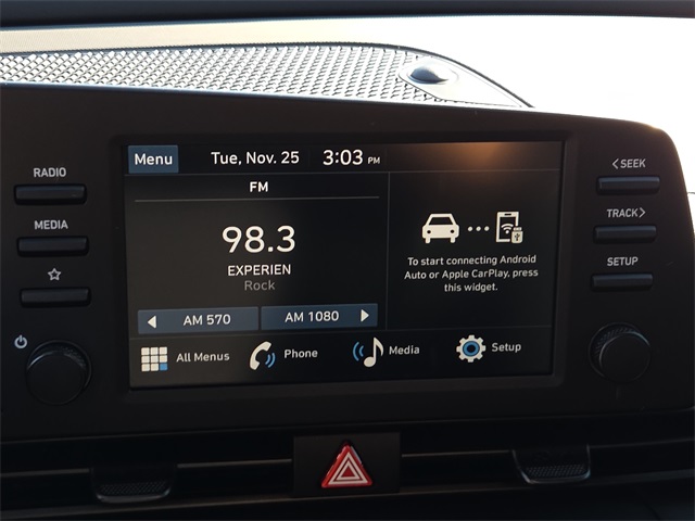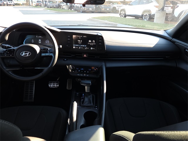 Certified. CARFAX One-Owner. Clean CARFAX. 30/39 City/Highway MPG Elantra SEL Sport, CVT, Fluid Metal, Black Cloth, Alloy Door Sills, Apple CarPlay & Android Auto, Auto High-beam Headlights, Brake assist, Carpeted Floor Mats, Delay-off headlights, Electronic Stability Control, Fully automatic headlights, Option Group 01. This vehicle comes well equipped with Option Group 01, Elantra SEL Sport, CVT, Fluid Metal, Black Cloth, Alloy Door Sills, Apple CarPlay & Android Auto, Auto High-beam Headlights, Brake assist, Carpeted Floor Mats, Delay-off headlights, Electronic Stability Control, and Fully automatic headlights Option Group 01, Elantra SEL Sport, CVT, Fluid Metal, Black Cloth, Alloy Door Sills, Apple CarPlay & Android Auto, Auto High-beam Headlights, Brake assist, Carpeted Floor Mats, Delay-off headlights, Electronic Stability Control, Fully automatic headlights, 17" x 7.0J Alloy Wheels, 4-Wheel Disc Brakes, 6 Speakers, ABS brakes, Air Conditioning, Alloy wheels, AM/FM radio, Automatic temperature control, Bumpers: body-color, Driver door bin, Driver vanity mirror, Dual front impact airbags, Dual front side impact airbags, Exterior Parking Camera Rear, First Aid Kit, Front anti-roll bar, Front Bucket Seats, Front Center Armrest, Front dual zone A/C, Front reading lights, Front wheel independent suspension, Illuminated entry, Leather Shift Knob, Leather steering wheel, Low tire pressure warning, Occupant sensing airbag, Outside temperature display, Overhead airbag, Overhead console, Panic alarm, Passenger door bin, Passenger vanity mirror, Power door mirrors, Power steering, Power windows, Premium Cloth Seat Trim, Radio: AM/FM/HD Display Audio, Rear side impact airbag, Rear window defroster, Remote keyless entry, Reversible Cargo Tray, Security system, Speed control, Speed-sensing steering, Spoiler, Steering wheel mounted audio controls, Tachometer, Telescoping steering wheel, Tilt steering wheel, Traction control, Trip computer, and Variably intermittent wipers.