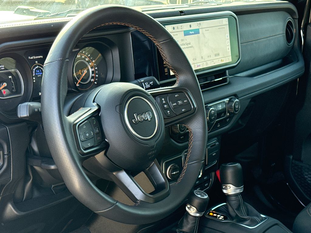 Clean CARFAX. CARFAX One-Owner. 2025 Jeep Gladiator Mojave 4D Crew Cab Black Clearcoat 3.6L V6 24V VVT 8-Speed Automatic 4WD This vehicle comes well equipped with Quick Order Package 24D Mojave, Gladiator Mojave, 4D Crew Cab, 3.6L V6 24V VVT, 8-Speed Automatic, 4WD, Black Clearcoat, Black Cloth, Alloy wheels, and Navigation System Quick Order Package 24D Mojave, Gladiator Mojave, 4D Crew Cab, 3.6L V6 24V VVT, 8-Speed Automatic, 4WD, Black Clearcoat, Black Cloth, Alloy wheels, Navigation System, 12.3" Touchscreen Display, 4-Wheel Disc Brakes, 4.10 Rear Axle Ratio, 4G LTE Wi-Fi Hot Spot, 8 Speakers, 97 MPH Vehicle Max Speed Calibration, ABS brakes, Air Conditioning, Alexa Built-In, AM/FM radio: SiriusXM, Apple CarPlay, Apple CarPlay/Android Auto, Automatic temperature control, Black 3-Piece Hard Top, Brake assist, Compass, Connectivity - US/Canada, Delay-off headlights, Driver door bin, Driver vanity mirror, Dual front impact airbags, Dual front side impact airbags, Electronic Stability Control, Emergency communication system: Jeep Connect, Freedom Panel Storage Bag, Front anti-roll bar, Front Bucket Seats, Front Center Armrest w/Storage, Front dual zone A/C, Front fog lights, Front reading lights, Fully automatic headlights, Google Android Auto, Heated door mirrors, Heavy Duty Suspension w/Gas Shocks, Illuminated entry, Integrated roll-over protection, Low tire pressure warning, MOPAR Black Hood Graphic, Occupant sensing airbag, Outside temperature display, Overhead airbag, Panic alarm, Passenger door bin, Passenger vanity mirror, Power door mirrors, Power steering, Power windows, Premium Cloth Seats w/Sport Bolsters, Radio data system, Radio: Uconnect 5 w/12.3" Display, Rear anti-roll bar, Rear reading lights, Rear Sliding Window, Rear Window Defroster, Remote keyless entry, Security system, Speed control, Split folding rear seat, Steering wheel mounted audio controls, Tachometer, Telescoping steering wheel, Tilt steering wheel, Traction control, Trip computer, USB Host Flip, Variably intermittent wipers, and Voltmeter. For more information contact one of our Internet Managers at 682-498-8390 to set up your VIP Test Drive.. At SHOTTENKIRK CDJR Granbury located in Granbury, TX all of our Pre-Owned vehicles go through a 100 point plus inspection. The oil and filter are changed, complete brake inspection, tire rotation, safety inspection and all fluid levels are topped off. If we find anything that needs attention we address the issue and fix it. So buy with confidence that you are getting a quality vehicle. We can do a complete walk around for you over the phone. Trade ins are always welcomed. We offer financing from over 25 finance and credit unions locally and nationally. SHOTTENKIRK CDJR 4970 E HWY 377 GRANBURY TEXAS 76049.