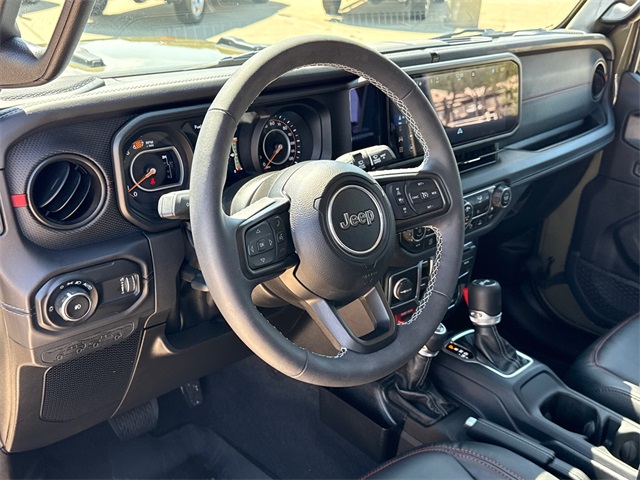 Certified. Clean CARFAX. CARFAX One-Owner. 2025 Jeep Wrangler Rubicon X 4D Sport Utility 41 2.0L I4 DOHC 8-Speed Automatic 4WD This vehicle comes well equipped with Convenience Group (Heated Front Seats, Heated Steering Wheel, and Universal Garage Door Opener), Quick Order Package 22Y Rubicon X (Acoustic Front Seat Area Carpet, Acoustic Laminated Front Door Glass, Alpine Premium Audio System, Body Color 3-Piece Hard Top, Body Color Rubicon Highline Flare, Freedom Panel Storage Bag, Leather Wrapped Park Brake Handle, Leather Wrapped Shift Knob, MOPAR Hardtop Headliner, MOPAR Hinge-Gate Reinforcement, Nappa Leather Seats, Power 4-Way Driver Lumbar Adjust, Power 4-Way Passenger Lumbar Adjust, Power Adjust 8-Way Driver Seat, Power Adjust 8-Way Front Passenger Seat, Premium Door Trim Panel, Rear Window Defroster, Rear Window Wiper/Washer, Steel Front Bumper, and Steel Rear Bumper), Safety Group (Auto High Beam Headlamp Control, Blind Spot & Cross Path Detection, and ParkSense Rear Park Assist System), Technology Group (12.3" Touchscreen Display, 4G LTE Wi-Fi Hot Spot, Apple CarPlay, Auto-Dimming Rear-View Mirror, Connected Travel & Traffic Services, Connectivity - US/Canada, Google Android Auto, GPS Navigation, HD Radio, Integrated Off-Road Camera, Integrated Voice Command w/Bluetooth, Radio: Uconnect 5 Nav w/12.3" Display, SiriusXM Radio Service, and SiriusXM w/360L), Trailer Tow & Aux Switch Group (Auxiliary Switches and Class II Receiver Hitch), Trailer Tow Prep Package, Xtreme 35" Tire Package (35" Tire Suspension, 4.56 Rear Axle Ratio, 97 MPH Vehicle Max Speed Calibration, Anti-Lock 4-Wheel Disc Perf Brakes, and Wheels: 17" x 8" Machined w/Black Pockets), Wrangler Rubicon X, 4D Sport Utility, 4WD, 41, and Black Leather Convenience Group (Heated Front Seats, Heated Steering Wheel, and Universal Garage Door Opener), Quick Order Package 22Y Rubicon X (Acoustic Front Seat Area Carpet, Acoustic Laminated Front Door Glass, Alpine Premium Audio System, Body Color 3-Piece Hard Top, Body Color Rubicon Highline Flare, Freedom Panel Storage Bag, Leather Wrapped Park Brake Handle, Leather Wrapped Shift Knob, MOPAR Hardtop Headliner, MOPAR Hinge-Gate Reinforcement, Nappa Leather Seats, Power 4-Way Driver Lumbar Adjust, Power 4-Way Passenger Lumbar Adjust, Power Adjust 8-Way Driver Seat, Power Adjust 8-Way Front Passenger Seat, Premium Door Trim Panel, Rear Window Defroster, Rear Window Wiper/Washer, Steel Front Bumper, and Steel Rear Bumper), Safety Group (Auto High Beam Headlamp Control, Blind Spot & Cross Path Detection, and ParkSense Rear Park Assist System), Technology Group (12.3" Touchscreen Display, 4G LTE Wi-Fi Hot Spot, Apple CarPlay, Auto-Dimming Rear-View Mirror, Connected Travel & Traffic Services, Connectivity - US/Canada, Google Android Auto, GPS Navigation, HD Radio, Integrated Off-Road Camera, Integrated Voice Command w/Bluetooth, Radio: Uconnect 5 Nav w/12.3" Display, SiriusXM Radio Service, and SiriusXM w/360L), Trailer Tow & Aux Switch Group (Auxiliary Switches and Class II Receiver Hitch), Trailer Tow Prep Package, Xtreme 35" Tire Package (35" Tire Suspension, 4.56 Rear Axle Ratio, 97 MPH Vehicle Max Speed Calibration, Anti-Lock 4-Wheel Disc Perf Brakes, and Wheels: 17" x 8" Machined w/Black Pockets), Wrangler Rubicon X, 4D Sport Utility, 4WD, 41, Black Leather, 4-Wheel Disc Brakes, 8 Speakers, ABS brakes, Air Conditioning, Alloy wheels, AM/FM radio: SiriusXM, Apple CarPlay/Android Auto, Automatic temperature control, Aux Battery, Brake assist, Cloth Low-Back Bucket Seats, Compass, Delay-off headlights, Driver door bin, Driver vanity mirror, Dual front impact airbags, Dual front side impact airbags, Electronic Stability Control, Emergency communication system: Jeep Connect, Front anti-roll bar, Front Bucket Seats, Front Center Armrest w/Storage, Front dual zone A/C, Front fog lights, Front License Plate Bracket (DISC), Front reading lights, Fully automatic headlights, Heated door mirrors, Illuminated entry, Integrated r