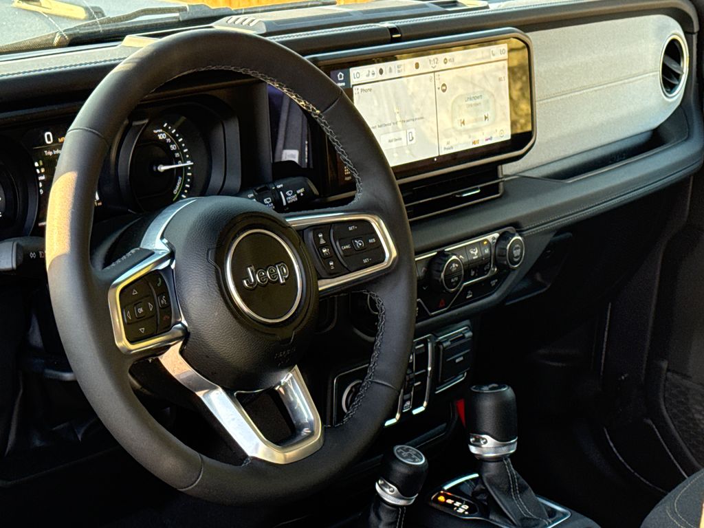 Clean CARFAX. CARFAX One-Owner. 2025 Jeep Wrangler Sahara 4xe 4D Sport Utility Granite Crystal Metallic Clearcoat 2.0L I4 DOHC 8-Speed Automatic 4WD This vehicle comes well equipped with Quick Order Package 29P Sahara 4xe, Wrangler Sahara 4xe, 4D Sport Utility, 2.0L I4 DOHC, 4WD, Granite Crystal Metallic Clearcoat, and Black Cloth Quick Order Package 29P Sahara 4xe, Wrangler Sahara 4xe, 4D Sport Utility, 2.0L I4 DOHC, 4WD, Granite Crystal Metallic Clearcoat, Black Cloth, 3.73 Rear Axle Ratio, 4-Wheel Disc Brakes, 4G LTE Wi-Fi Hot Spot, 8 Speakers, ABS brakes, Air Conditioning, Alloy wheels, AM/FM radio: SiriusXM, Apple CarPlay, Apple CarPlay/Android Auto, Automatic temperature control, Body Color 3-Piece Hard Top, Brake assist, Cloth Low-Back Bucket Seats, Compass, Connectivity - US/Canada, Delay-off headlights, Driver door bin, Driver vanity mirror, Dual front impact airbags, Dual front side impact airbags, Electronic Stability Control, Emergency communication system: Jeep Connect, Freedom Panel Storage Bag, Front anti-roll bar, Front Bucket Seats, Front Center Armrest w/Storage, Front dual zone A/C, Front fog lights, Front License Plate Bracket (DISC), Front reading lights, Fully automatic headlights, Google Android Auto, Heated door mirrors, Heated front seats, Heated steering wheel, Illuminated entry, Integrated Center Stack Radio, Integrated roll-over protection, Integrated Voice Command w/Bluetooth, Low tire pressure warning, Occupant sensing airbag, Outside temperature display, Overhead airbag, Panic alarm, ParkView Rear Back-Up Camera, Passenger door bin, Passenger vanity mirror, Power door mirrors, Power steering, Power windows, Radio data system, Radio: Uconnect 5 w/12.3" Display, Rear anti-roll bar, Rear reading lights, Rear seat center armrest, Rear Window Defroster, Rear Window Wiper/Washer, Remote keyless entry, Security system, Side Steps, Speed control, Split folding rear seat, Sport Suspension, Steering wheel mounted audio controls, Tachometer, Telescoping steering wheel, Tilt steering wheel, Traction control, Trip computer, Variably intermittent wipers, Voltmeter, and Wheels: 20" x 8" Painted Black Aluminum. For more information contact one of our Internet Managers at 682-498-8390 to set up your VIP Test Drive.. At SHOTTENKIRK CDJR Granbury located in Granbury, TX all of our Pre-Owned vehicles go through a 100 point plus inspection. The oil and filter are changed, complete brake inspection, tire rotation, safety inspection and all fluid levels are topped off. If we find anything that needs attention we address the issue and fix it. So buy with confidence that you are getting a quality vehicle. We can do a complete walk around for you over the phone. Trade ins are always welcomed. We offer financing from over 25 finance and credit unions locally and nationally. SHOTTENKIRK CDJR 4970 E HWY 377 GRANBURY TEXAS 76049.