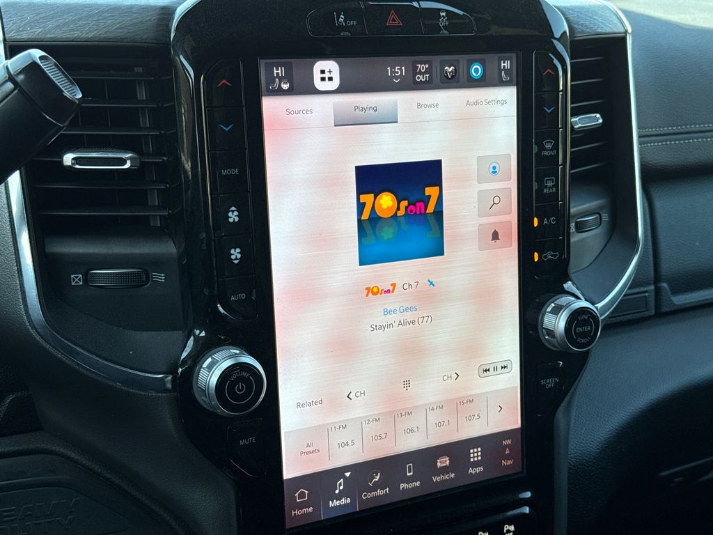 CARFAX One-Owner. 2025 Ram 3500 Laramie 4D Mega Cab Diamond Black Crystal Pearlcoat 6.7L I6 8-Speed Automatic 4WD This vehicle comes well equipped with Laramie Level 1 Plus Equipment Group (#1 Seat Foam Cushion, 115V Auxiliary Rear Power Outlet, 2 Way Rear Headrest Seat, 4 Way Front Headrests, Active Lane Management System, Adaptive Steering System, Auto Adjust In Reverse Exterior Mirrors, Auto Dim Exterior Mirror, Auto High Beam Headlamp Control, Auto Power-Folding Mirrors, Auto-Dimming Exterior Passenger Mirror, Bucket Seats, Center Stop Lamp w/Cargo View Camera, Drowsy Driver Detection, Dual Wireless Charging Pad, Exterior Mirrors Courtesy Lamps, Exterior Mirrors w/Heating Element, Exterior Mirrors w/Memory, Exterior Mirrors w/Supplemental Signals, Foam Bottle Insert (Door Trim Panel), Forward & Reverse Utility Lights, Front Seat Back Map Pockets, Full Length Upgraded Floor Console, Heated Front Seats, Heated Steering Wheel, High Back Seats, Leather Trimmed Bucket Seats, LED Bed Lighting, Mirror Running Lights, MOPAR Deployable Bed Step, MOPAR Spray In Bedliner, Power 2-Way Driver Lumbar Adjust, Power 2-Way Passenger Lumbar Adjust, Power Adjust 8-Way Driver Seat, Power Adjust 8-Way Front Passenger Seat, Power Adjust Mirrors, Power Adjustable Pedals w/Memory, Power Heated Folding Telescopic Mirrors w/Memory, Power Telescoping Mirrors, Power-Adjustable Convex Aux Mirrors, Rain Sensitive Windshield Wipers, Rear 60/40 Folding Seat, Remote Tailgate Release, and Traffic Sign Recognition), Max Tow Package (5th Wheel/Gooseneck Towing Prep Group and Auto Level Rear Air Suspension), Night Edition (Black Exterior Truck Badging, Black Wheel Center Hub, Body Color Grille Surround, Gloss Black Grille Billets/Accents, and Sport Performance Hood), Quick Order Package 24H Laramie, 3500 Laramie, 4D Mega Cab, 6.7L I6, 4WD, Diamond Black Crystal Pearlcoat, Black Leather, Apple CarPlay, Apple CarPlay/Android Auto, Clearance Lamps, Fully automatic headlights, GPS Navigation, Heated front seats, Navigation System, ParkView Rear Back-Up Camera, Power driver seat, and Power passenger seat Laramie Level 1 Plus Equipment Group (#1 Seat Foam Cushion, 115V Auxiliary Rear Power Outlet, 2 Way Rear Headrest Seat, 4 Way Front Headrests, Active Lane Management System, Adaptive Steering System, Auto Adjust In Reverse Exterior Mirrors, Auto Dim Exterior Mirror, Auto High Beam Headlamp Control, Auto Power-Folding Mirrors, Auto-Dimming Exterior Passenger Mirror, Bucket Seats, Center Stop Lamp w/Cargo View Camera, Drowsy Driver Detection, Dual Wireless Charging Pad, Exterior Mirrors Courtesy Lamps, Exterior Mirrors w/Heating Element, Exterior Mirrors w/Memory, Exterior Mirrors w/Supplemental Signals, Foam Bottle Insert (Door Trim Panel), Forward & Reverse Utility Lights, Front Seat Back Map Pockets, Full Length Upgraded Floor Console, Heated Front Seats, Heated Steering Wheel, High Back Seats, Leather Trimmed Bucket Seats, LED Bed Lighting, Mirror Running Lights, MOPAR Deployable Bed Step, MOPAR Spray In Bedliner, Power 2-Way Driver Lumbar Adjust, Power 2-Way Passenger Lumbar Adjust, Power Adjust 8-Way Driver Seat, Power Adjust 8-Way Front Passenger Seat, Power Adjust Mirrors, Power Adjustable Pedals w/Memory, Power Heated Folding Telescopic Mirrors w/Memory, Power Telescoping Mirrors, Power-Adjustable Convex Aux Mirrors, Rain Sensitive Windshield Wipers, Rear 60/40 Folding Seat, Remote Tailgate Release, and Traffic Sign Recognition), Max Tow Package (5th Wheel/Gooseneck Towing Prep Group and Auto Level Rear Air Suspension), Night Edition (Black Exterior Truck Badging, Black Wheel Center Hub, Body Color Grille Surround, Gloss Black Grille Billets/Accents, and Sport Performance Hood), Quick Order Package 24H Laramie, 3500 Laramie, 4D Mega Cab, 6.7L I6, 4WD, Diamond Black Crystal Pearlcoat, Black Leather, Apple CarPlay, Apple CarPlay/Android Auto, Clearance Lamps, Fully automatic headlights, GPS Navigation, Heated front seats, Navigation System, ParkView Rear Back