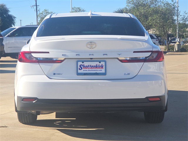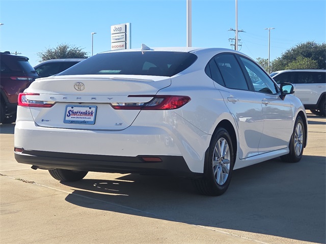 Clean CARFAX. CARFAX One-Owner. 2025 Toyota Camry LE 4D Sedan White 2.5L 4-Cylinder 16V DOHC eCVT FWD This vehicle comes well equipped with Camry LE, 4D Sedan, 2.5L 4-Cylinder 16V DOHC, eCVT, FWD, White, Black w/Fabric Seat Trim, ABS brakes, Active Cruise Control, Alloy wheels, Electronic Stability Control, Front dual zone A/C, Heated door mirrors, Illuminated entry, Low tire pressure warning, Remote keyless entry, and Traction control Camry LE, 4D Sedan, 2.5L 4-Cylinder 16V DOHC, eCVT, FWD, White, Black w/Fabric Seat Trim, ABS brakes, Active Cruise Control, Alloy wheels, Electronic Stability Control, Front dual zone A/C, Heated door mirrors, Illuminated entry, Low tire pressure warning, Remote keyless entry, Traction control, 4-Wheel Disc Brakes, 6 Speakers, Air Conditioning, AM/FM radio: SiriusXM, Apple CarPlay/Android Auto, Auto High-beam Headlights, Automatic temperature control, Brake assist, Bumpers: body-color, Delay-off headlights, Driver door bin, Driver vanity mirror, Dual front impact airbags, Dual front side impact airbags, Emergency communication system: Safety Connect (up to 10-year trial subscription), Exterior Parking Camera Rear, Fabric Seat Trim, Four wheel independent suspension, Front anti-roll bar, Front Bucket Seats, Front Center Armrest, Front reading lights, Fully automatic headlights, Knee airbag, Occupant sensing airbag, Outside temperature display, Overhead airbag, Overhead console, Panic alarm, Passenger door bin, Passenger vanity mirror, Power door mirrors, Power steering, Power windows, Radio data system, Radio: Toyota Audio Multimedia w/8" Touchscreen, Rear anti-roll bar, Rear seat center armrest, Rear side impact airbag, Rear window defroster, Security system, Speed control, Speed-sensing steering, Split folding rear seat, Steering wheel mounted audio controls, Telescoping steering wheel, Tilt steering wheel, Trip computer, Turn signal indicator mirrors, Variably intermittent wipers, and Wheels: 16" Silver-Finished Alloy. For more information contact one of our Internet Managers at 682-498-8390 to set up your VIP Test Drive.. At SHOTTENKIRK CDJR Granbury located in Granbury, TX all of our Pre-Owned vehicles go through a 100 point plus inspection. The oil and filter are changed, complete brake inspection, tire rotation, safety inspection and all fluid levels are topped off. If we find anything that needs attention we address the issue and fix it. So buy with confidence that you are getting a quality vehicle. We can do a complete walk around for you over the phone. Trade ins are always welcomed. We offer financing from over 25 finance and credit unions locally and nationally. SHOTTENKIRK CDJR 4970 E HWY 377 GRANBURY TEXAS 76049.