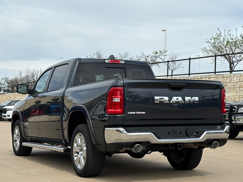 CARFAX One-Owner. 2026 Ram 1500 Big Horn/Lone Star 4D Crew Cab Forged Blue Metallic 3.0L I6 8-Speed Automatic RWD This vehicle comes well equipped with Big Horn Level 1 Equipment Group (115V Auxiliary Power Outlet, 2nd Row in Floor Storage Bins, 3 Rear Seat Head Restraints, 4 Way Front Headrests, 400W Inverter, Auto Power-Folding Mirrors, Auto-Dimming Exterior Driver Mirror, Auto-Dimming Rear-View Mirror, Black Exterior Mirrors, Black Premium Power Mirrors, Body Color Fender Flares, Bucket Seats, Center Console Parts Module, Convex Wide-Angle Exterior Mirror Insert, Deluxe Cloth Bucket Seats, Exterior Mirrors Courtesy Lamps, Exterior Mirrors with Heating Element, Exterior Mirrors with Supplemental Signals, Front Seat Back Map Pockets, Full Length Floor Console, Glove Box Lamp, Heated Front Seats, Heated Steering Wheel, Leather Wrapped Steering Wheel, Manual Adjust 4-Way Front Passenger Seat, Power 2-Way Driver Lumbar Adjust, Power Adjust 8-Way Driver Seat, Power Adjustable Pedals, Rear 60/40 Folding Seat, Rear Center Armrest, Rear Dome with on/Off Switch Lamp, Rear Power Sliding Window, Rear Window Defroster, SiriusXM Radio Service, SiriusXM Satellite Radio, Steering Wheel Mounted Audio Controls, Sun Visors with Illuminated Vanity Mirrors, and Universal Garage Door Opener), Quick Order Package 21R Lone Star (Lone Star Badge), 1500 Big Horn/Lone Star, 4D Crew Cab, 3.0L I6, RWD, Forged Blue Metallic, and Black Cloth Big Horn Level 1 Equipment Group (115V Auxiliary Power Outlet, 2nd Row in Floor Storage Bins, 3 Rear Seat Head Restraints, 4 Way Front Headrests, 400W Inverter, Auto Power-Folding Mirrors, Auto-Dimming Exterior Driver Mirror, Auto-Dimming Rear-View Mirror, Black Exterior Mirrors, Black Premium Power Mirrors, Body Color Fender Flares, Bucket Seats, Center Console Parts Module, Convex Wide-Angle Exterior Mirror Insert, Deluxe Cloth Bucket Seats, Exterior Mirrors Courtesy Lamps, Exterior Mirrors with Heating Element, Exterior Mirrors with Supplemental Signals, Front Seat Back Map Pockets, Full Length Floor Console, Glove Box Lamp, Heated Front Seats, Heated Steering Wheel, Leather Wrapped Steering Wheel, Manual Adjust 4-Way Front Passenger Seat, Power 2-Way Driver Lumbar Adjust, Power Adjust 8-Way Driver Seat, Power Adjustable Pedals, Rear 60/40 Folding Seat, Rear Center Armrest, Rear Dome with on/Off Switch Lamp, Rear Power Sliding Window, Rear Window Defroster, SiriusXM Radio Service, SiriusXM Satellite Radio, Steering Wheel Mounted Audio Controls, Sun Visors with Illuminated Vanity Mirrors, and Universal Garage Door Opener), Quick Order Package 21R Lone Star (Lone Star Badge), 1500 Big Horn/Lone Star, 4D Crew Cab, 3.0L I6, RWD, Forged Blue Metallic, Black Cloth, 3.21 Rear Axle Ratio, 33 Gallon Fuel Tank, 4-Wheel Disc Brakes, 48V Belt Starter Generator, 4G LTE Wi-Fi Hot Spot, 6 Speakers, ABS brakes, Air Conditioning, Alloy wheels, AM/FM radio, Apple CarPlay, Apple CarPlay/Android Auto, Auto High-beam Headlights, Brake assist, Bumpers: chrome, Cloth Bucket Seats, Compass, Connectivity - US/Canada, Delay-off headlights, Driver door bin, Dual front impact airbags, Dual front side impact airbags, Electronic Stability Control, Exterior Parking Camera Rear, Front anti-roll bar, Front Bucket Seats, Front Center Armrest w/Storage, Front fog lights, Front License Plate Bracket, Front reading lights, Front wheel independent suspension, Fully automatic headlights, Global Telematics Box Module, Google Android Auto, GPS Antenna Input, Heated door mirrors, Illuminated entry, Integrated Center Stack Radio, Integrated Voice Command with Bluetooth, Low tire pressure warning, Manual Adjust 4-Way Driver Seat, Manual Folding Exterior Mirrors, Manufacturer's Statement of Origin, MOPAR Front and Rear Rubber Floor Mats, Occupant sensing airbag, Outside temperature display, Overhead airbag, Overhead console, Panic alarm, Passenger door bin, Passenger vanity mirror, Power door mirrors, Power steering, Power windows, Radio data system, Radio: